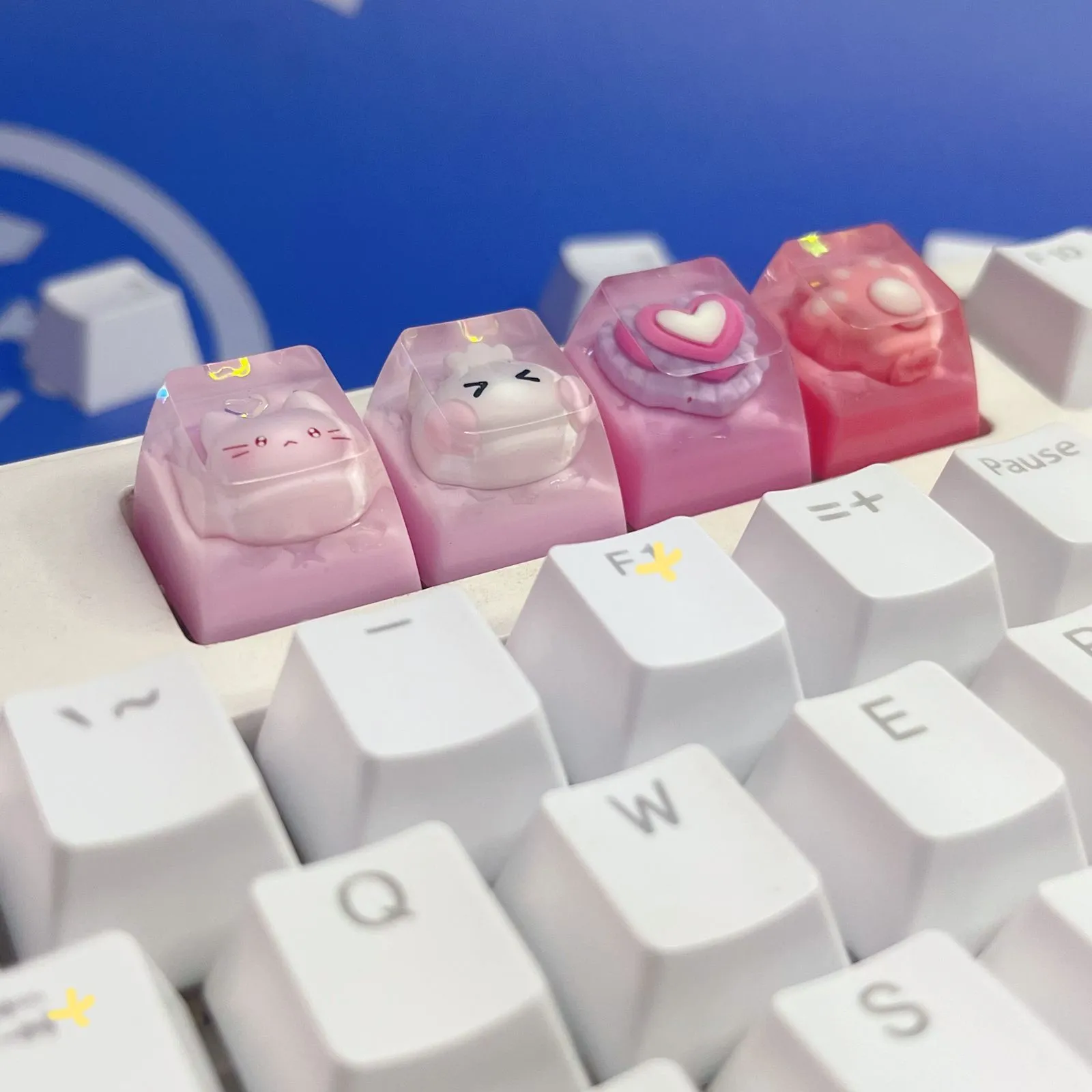 Makeover your keyboard with the Adorable Sequins Series Transparent Keycaps, blending creativity and charm. Choose from four delightful options: Heart Shaped, Steamed Bun, Cat Paw, or Cat. Each keycap features a pink base that enhances its appeal. Adorned with quirky icons, they showcase playful designs while maintaining a smooth, flat contour. Made from premium resin, these durable keycaps are built to last. Upgrade your typing experience with this charming collection that adds fun and personality to your setup!