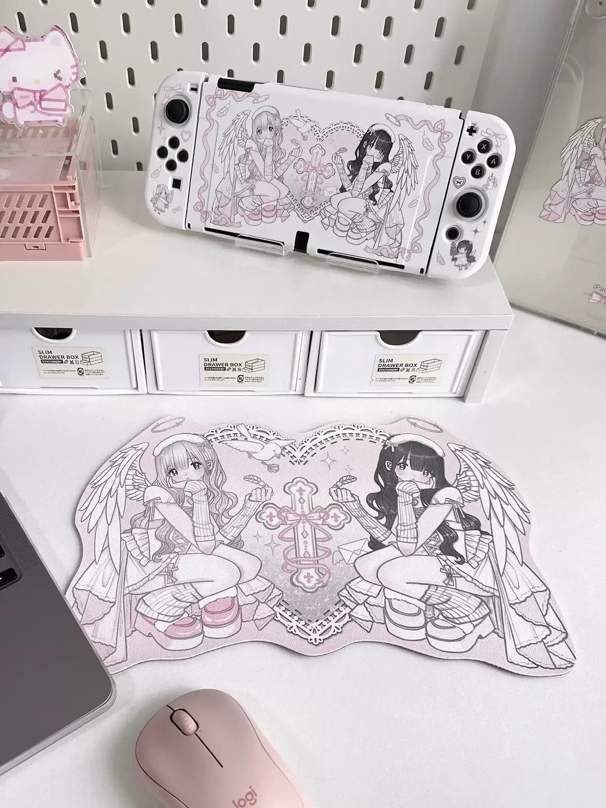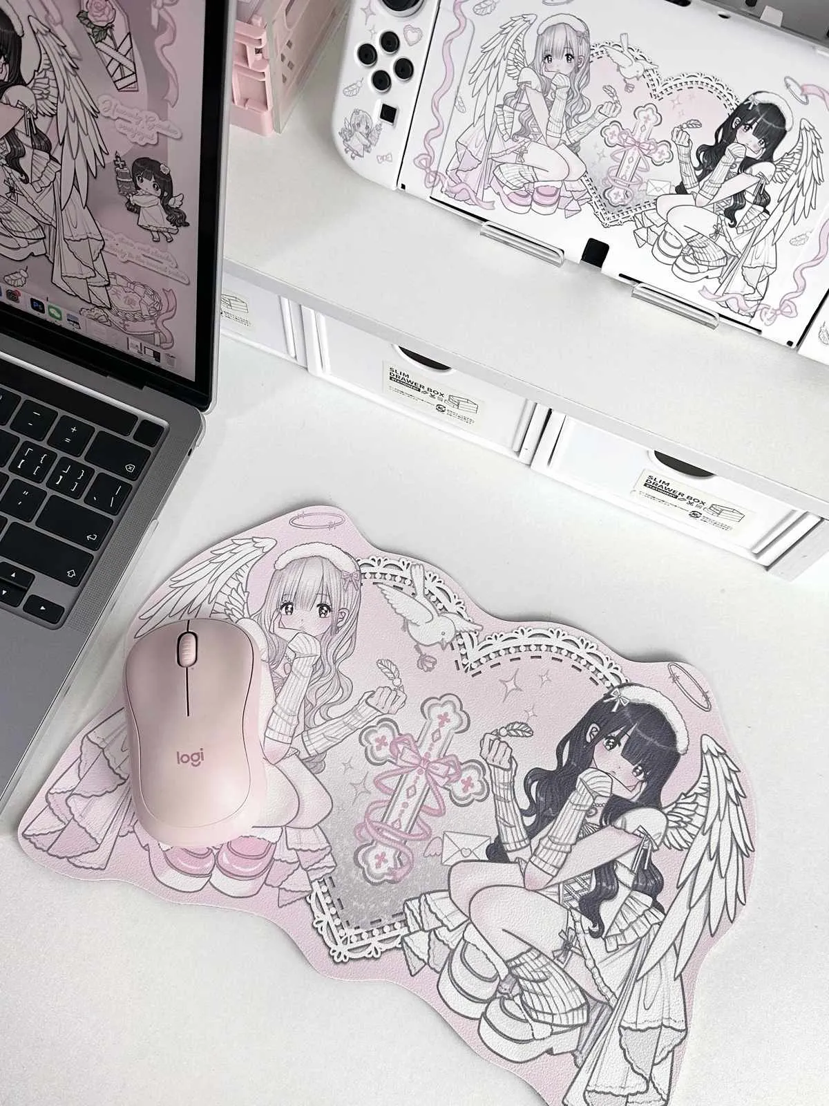Upgrade your workstation with the Angel Girl Mouse Pad! This charming pad features two enchanting angels—one with beautiful black hair and the other with pink and white hair. Their stunning wings add to the magical ambiance, while bird and feather icons and a sophisticated envelope icon enhance the design. Made from premium PU leather, it’s both stylish and durable. The non-slip bottom keeps it securely in place. Transform your desk into a whimsical retreat that inspires your creativity!