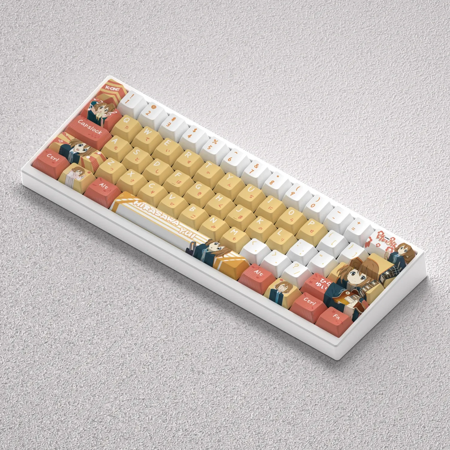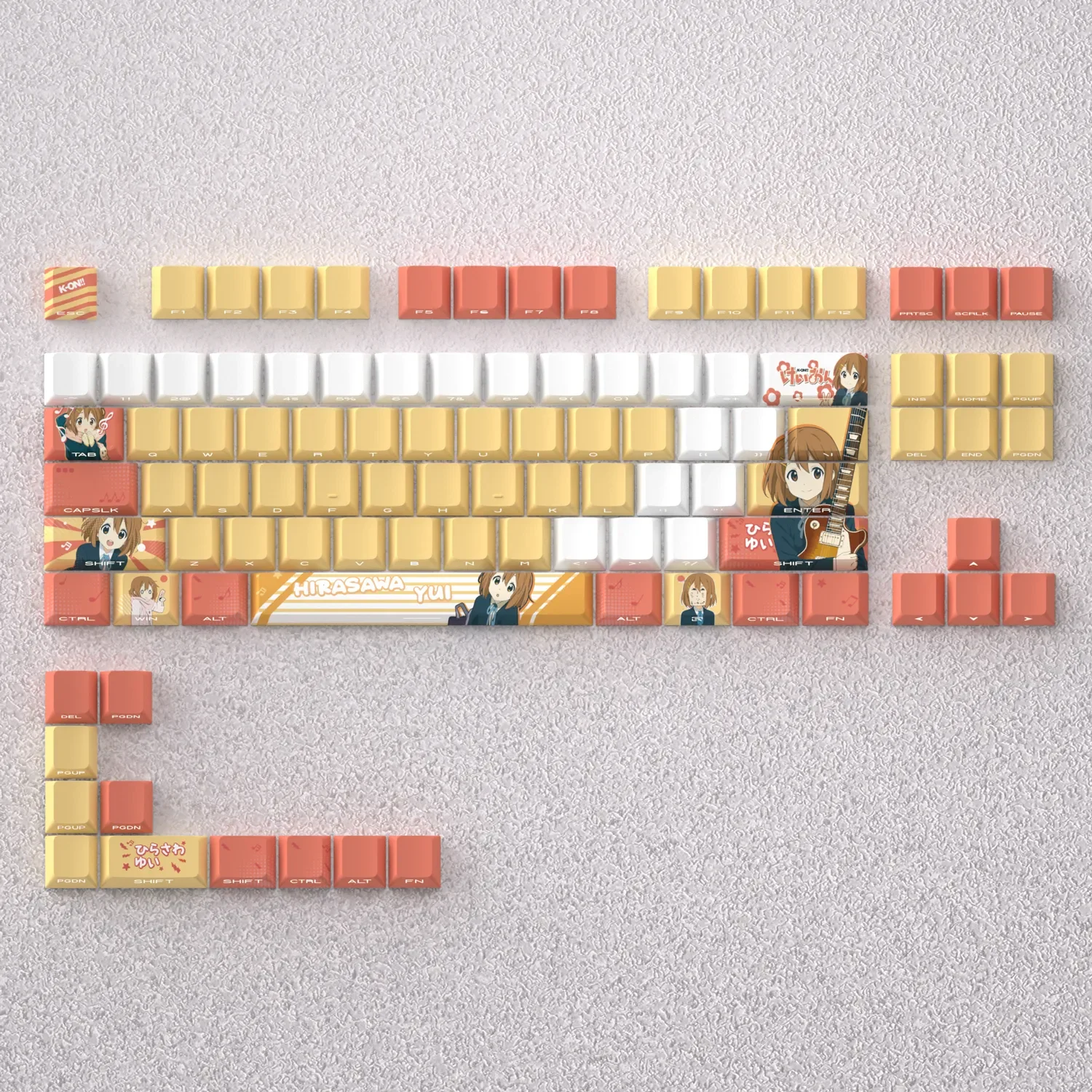 Vibrant Hirasawa Yui K-On! PBT anime keycap set for custom mechanical keyboards, showcasing cute pastel character art with a playful aesthetic.