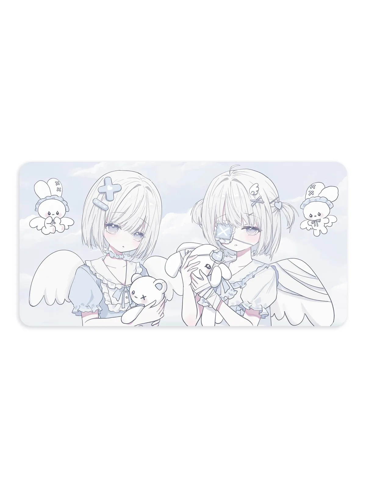 Alter your workstation with the Aqua Dreamland Desk Mat! This mat gives your setup a whimsical touch with its two cute. Which both with short haired cartoon girls. A fluffy bunny and a cuddly bear are the toys that each girl is tenderly holding. Which their delicate wings add to the charming pattern. The vivid hues produce a surreal ambiance that is ideal for inspiring creativity. Crafted from premium PU leather that this desk mat is both fashionable and long lasting. During use, the diamond non-slip bottom guarantees that it remains firmly in place. With this charming desk mat that you may enhance the beauty of your workplace. Might lose yourself in a charming and imaginative world!