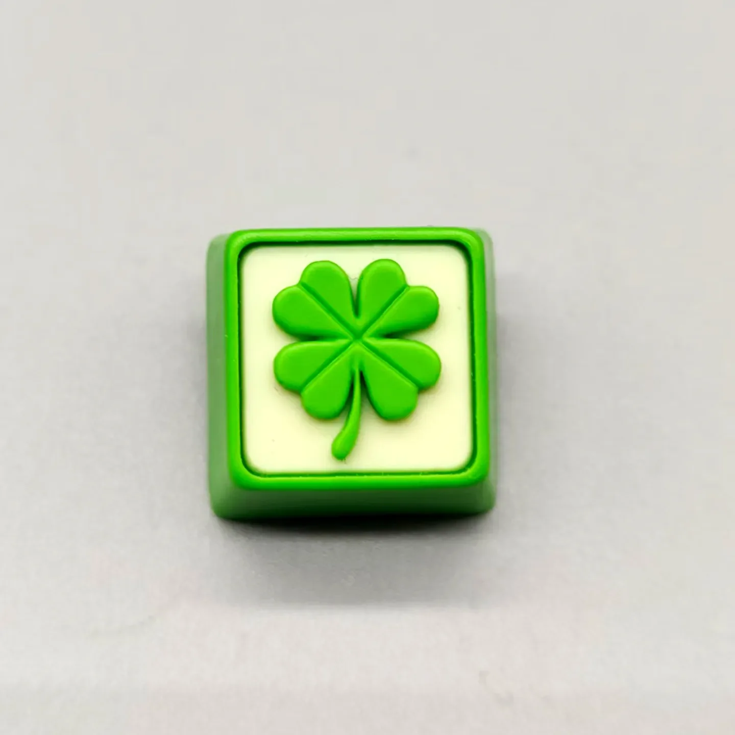 Handcrafted resin leaf artisan keycap featuring delicate green leaves for mechanical keyboards, evoking serene nature. Four-Leaf Clover