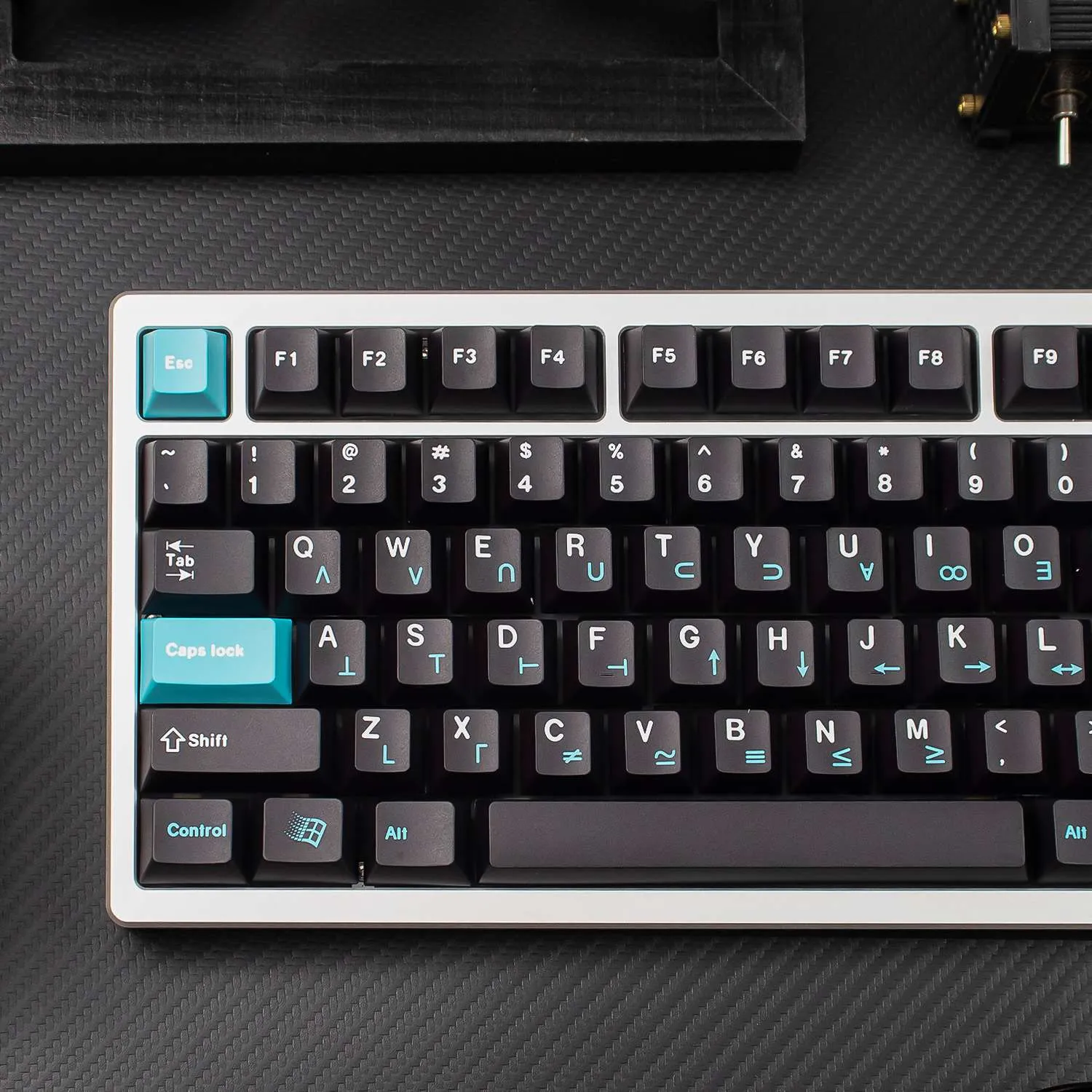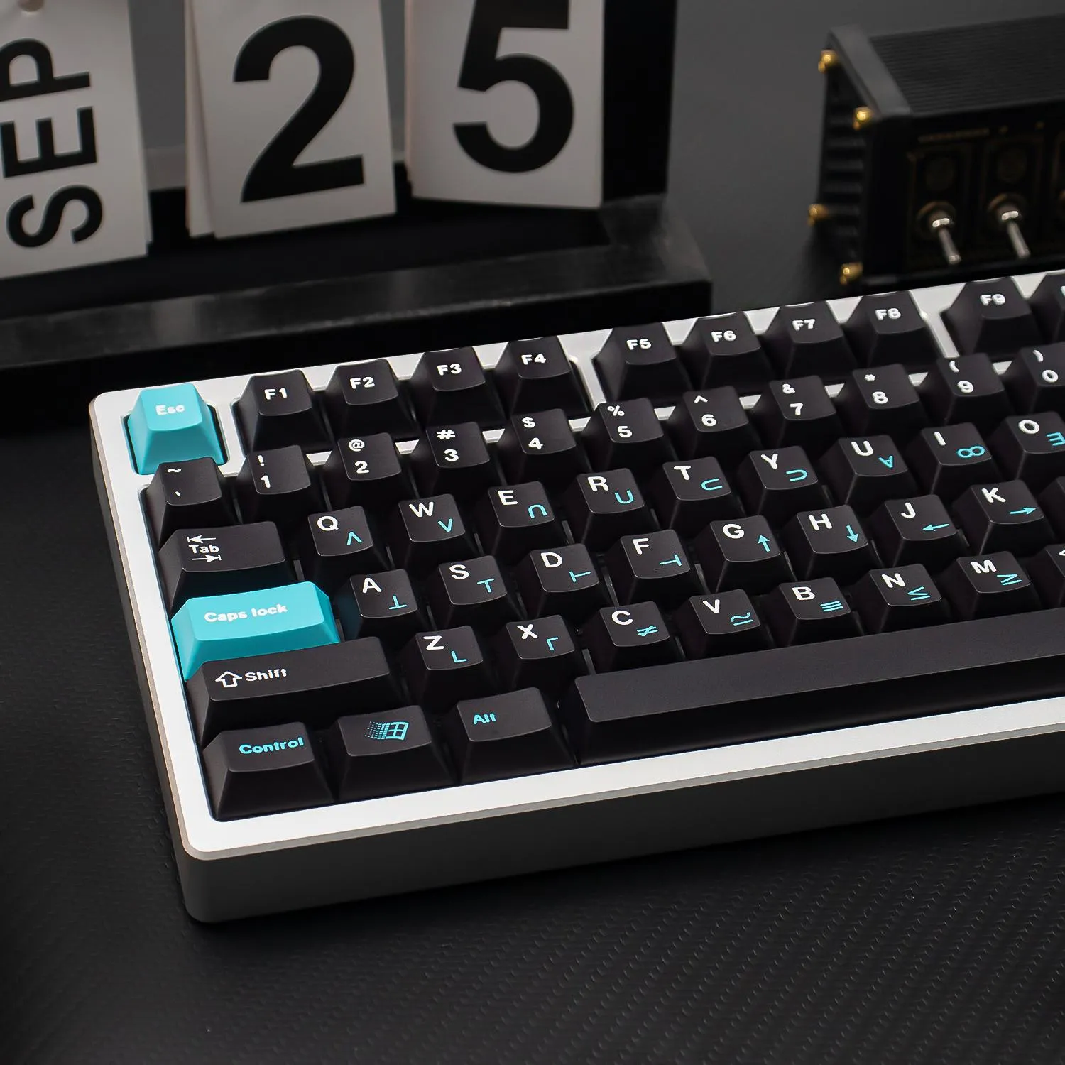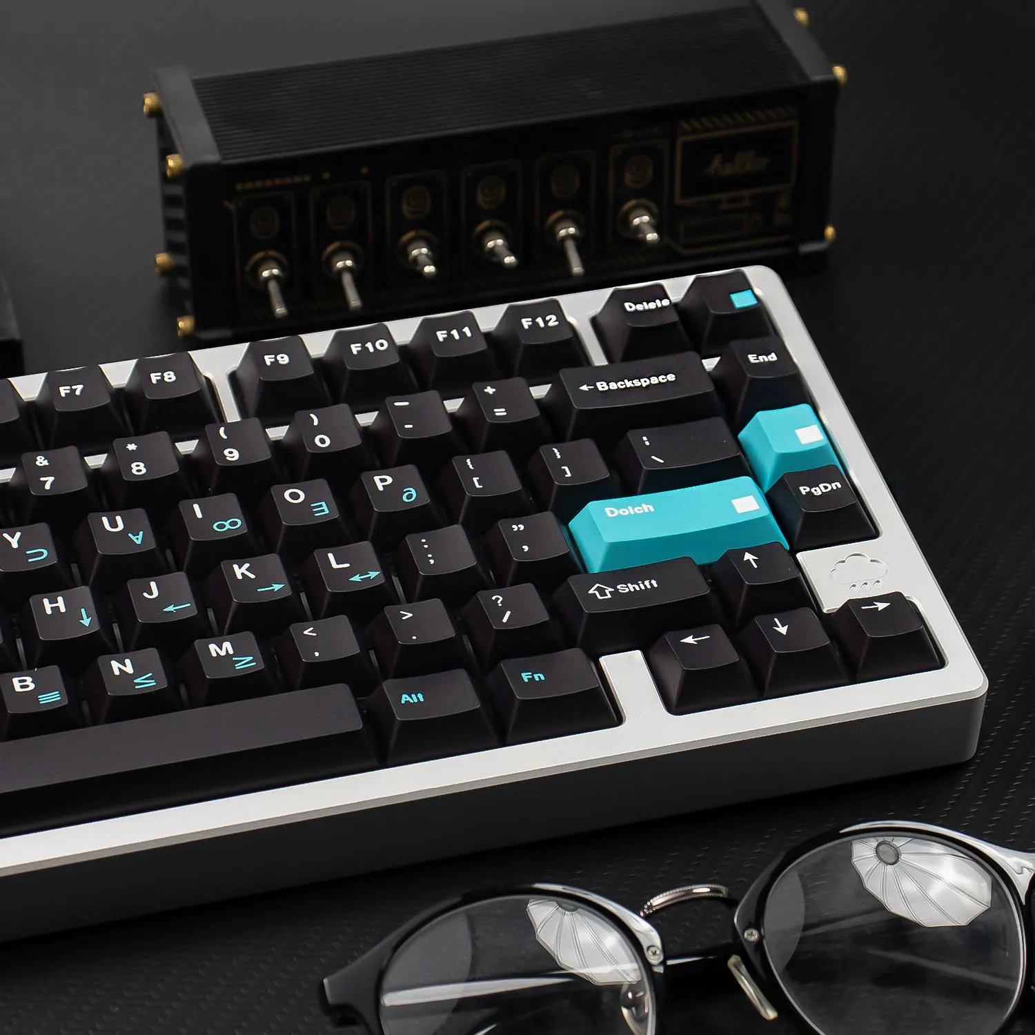 Check out with the Black Dolch Cherry Keycap Set that will enhance your keyboard! This eye-catching collection has a bold appearance with bright blue and red keycaps set against a polished black base. The clear white lettering on each keycap improves visibility and style. Interestingly, the Enter Key proudly displays the word “Dolch.” That giving your arrangement a distinctive touch. Many keycaps have an artistic flair because to the square-shaped pattern in the right corner. These keycaps are long-lasting and comfortable to wear because they are made of sturdy PBT material. This keycap set which has a comfortable Cherry profile. Which is ideal for people who value both keyboard functionality and appearance!
