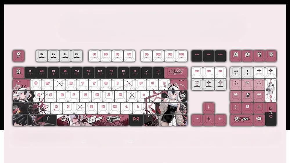 Elevate your typing experience with the Blue Archive: Onikata Kayoko Cherry Keycap Set & Mechanical Keyboard! Front-Lit, Side-Lit and Opaque keycaps are among the 15 variations available in this outstanding collection. Keycap Set with 122 keys, keyboard with 87 keys, keyboard with 108 keys or tri-mode keyboard with 108 keys are among the five options. Light maroon and black lettering in a distinctive font style is highlighted by the striking white base. Which contrasts exquisitely with black and maroon keycaps. The keycaps are decorated with character symbols such as the space key with “Kayoko.” This Cherry Profile set that made of sturdy PBT which is ideal for fans!