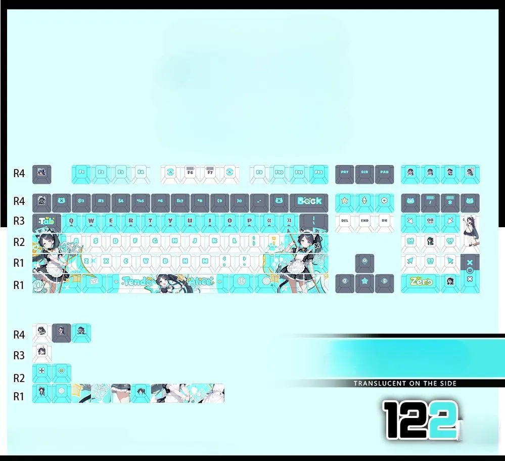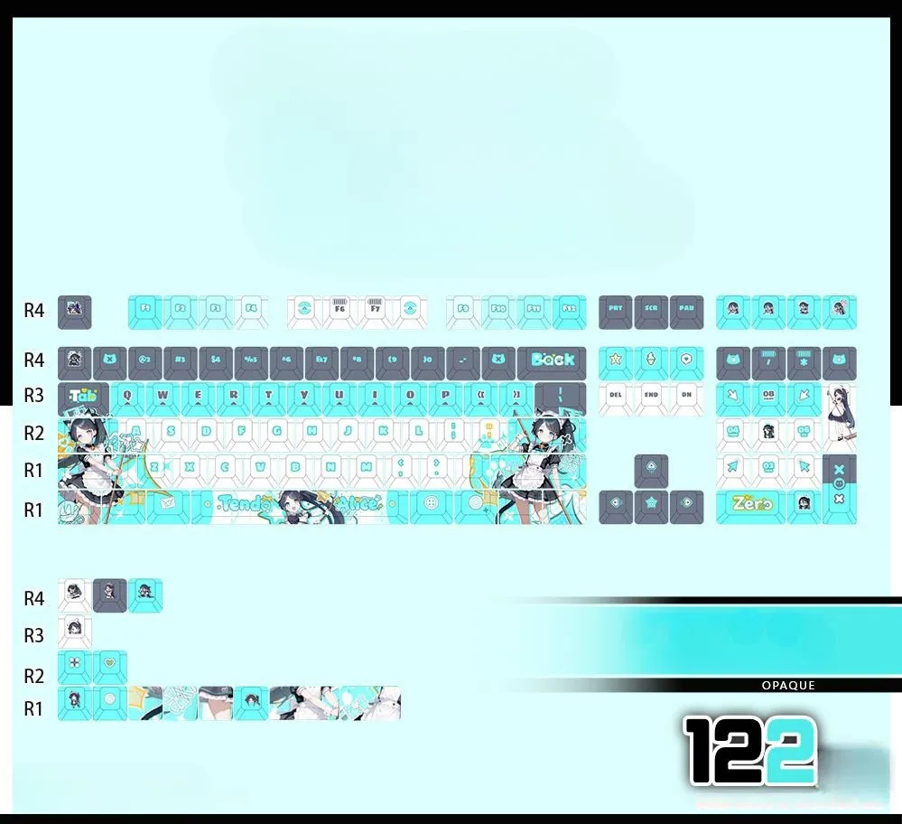 Elevate your gaming setup with the stunning Blue Archive: Tendou Alice Cherry Keycap Set & Mechanical Keyboard! With the three keycap styles in this exclusive collection—Front-Lit, Side-Lit, and Opaque—you can personalize your experience. 122-key set, 87-key keyboard, tri-mode 87-key, 108-key keyboard or tri-mode 108-key choice are among the five combinations available. While some keycaps feature elaborate character icon designs on the ESC key. That including Tendou Alice in a cute maid attire. With the elegant white base perfectly matches the Tiffany blue and grey keycaps. Made from sturdy PBT in a Cherry profile. Which this set features unique font style lettering in shades of grey, white and Tiffany blue. Today, show off your affection for Blue Archive by upgrading your keyboard!