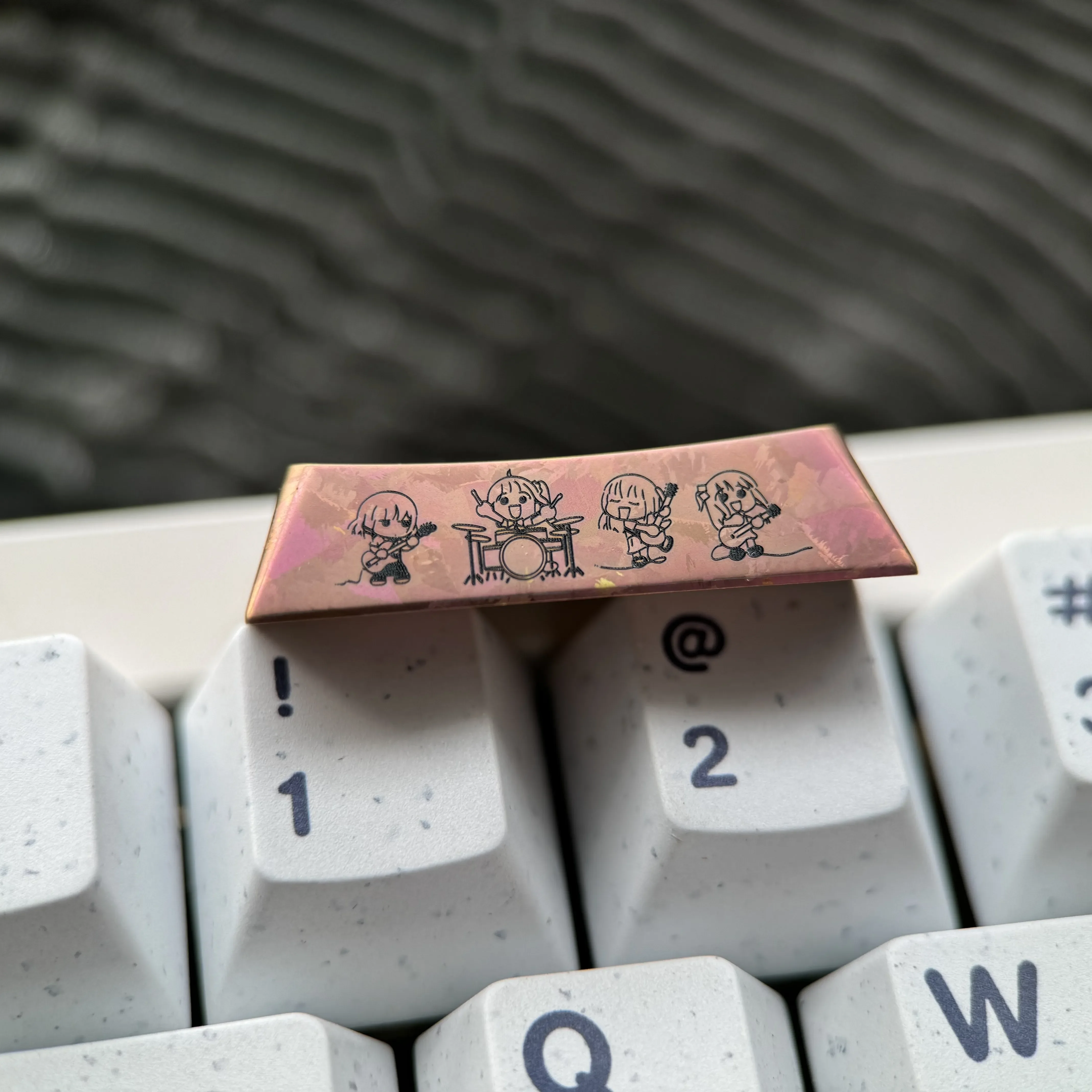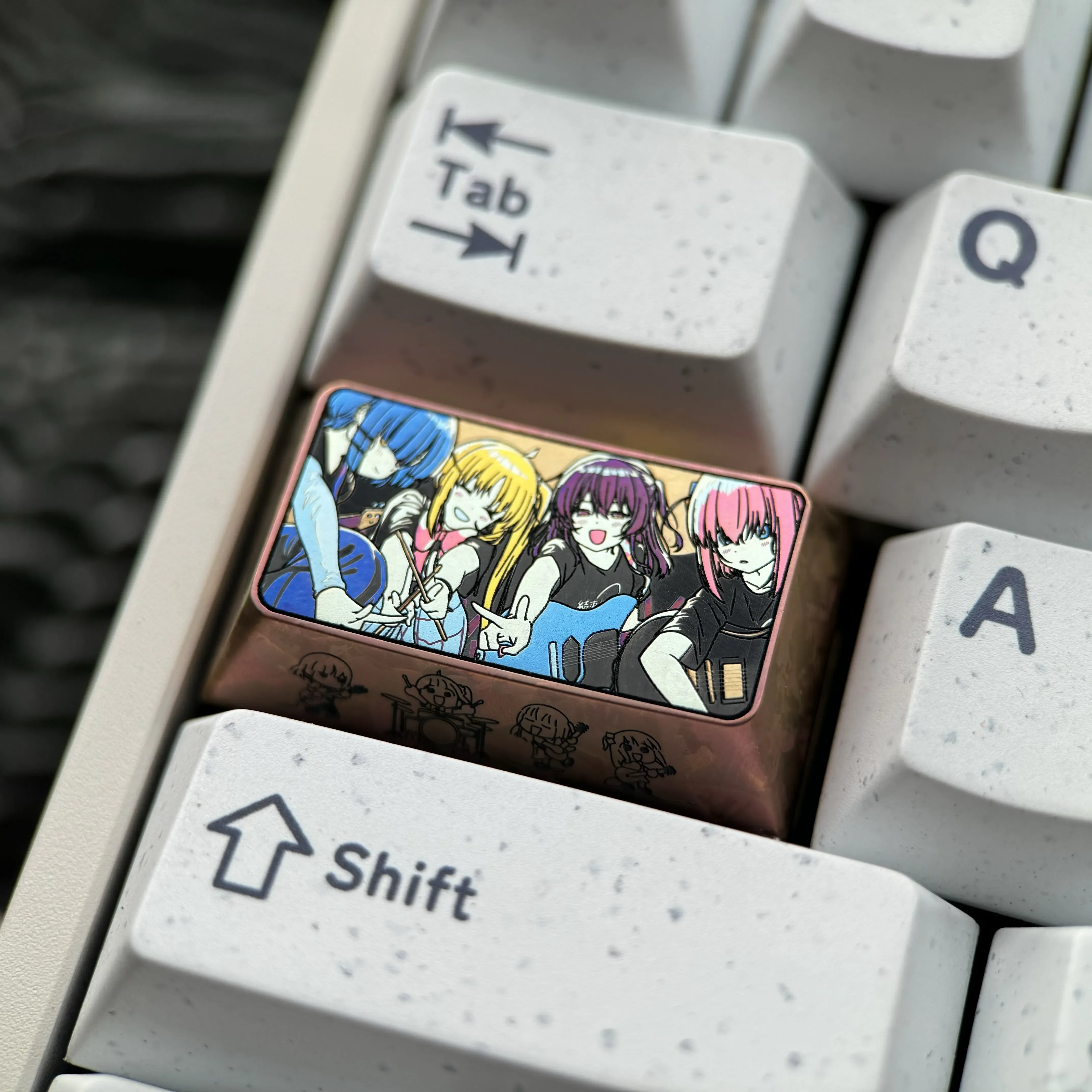 Prepare to elevate your keyboard experience and express your true fandom with this exclusive Bocchi the Rock!: Characters Caps Key Keycap. Immerse yourself in the vibrant world of anime as you transform your mechanical keyboard into a personalized masterpiece that truly reflects your unique style and passion. Each premium Bocchi Keycap is meticulously crafted from high-grade, polished titanium, showcasing stunning, intricate anime character art that perfectly captures the essence of your favorite series. Designed as a versatile 1.75U metal keycap, it promises superior durability, a distinctive tactile feel, and effortless integration into any Bocchi the Rock! keyboard. This isnt just a custom mechanical keycap. That its a statement piece, a titanium anime keycap that empowers fans to proudly display their individuality and deep appreciation for quality. It is the ultimate collectible, blending playful energy with premium craftsmanship, perfect for enthusiasts looking to infuse their setup with unparalleled style and excitement.