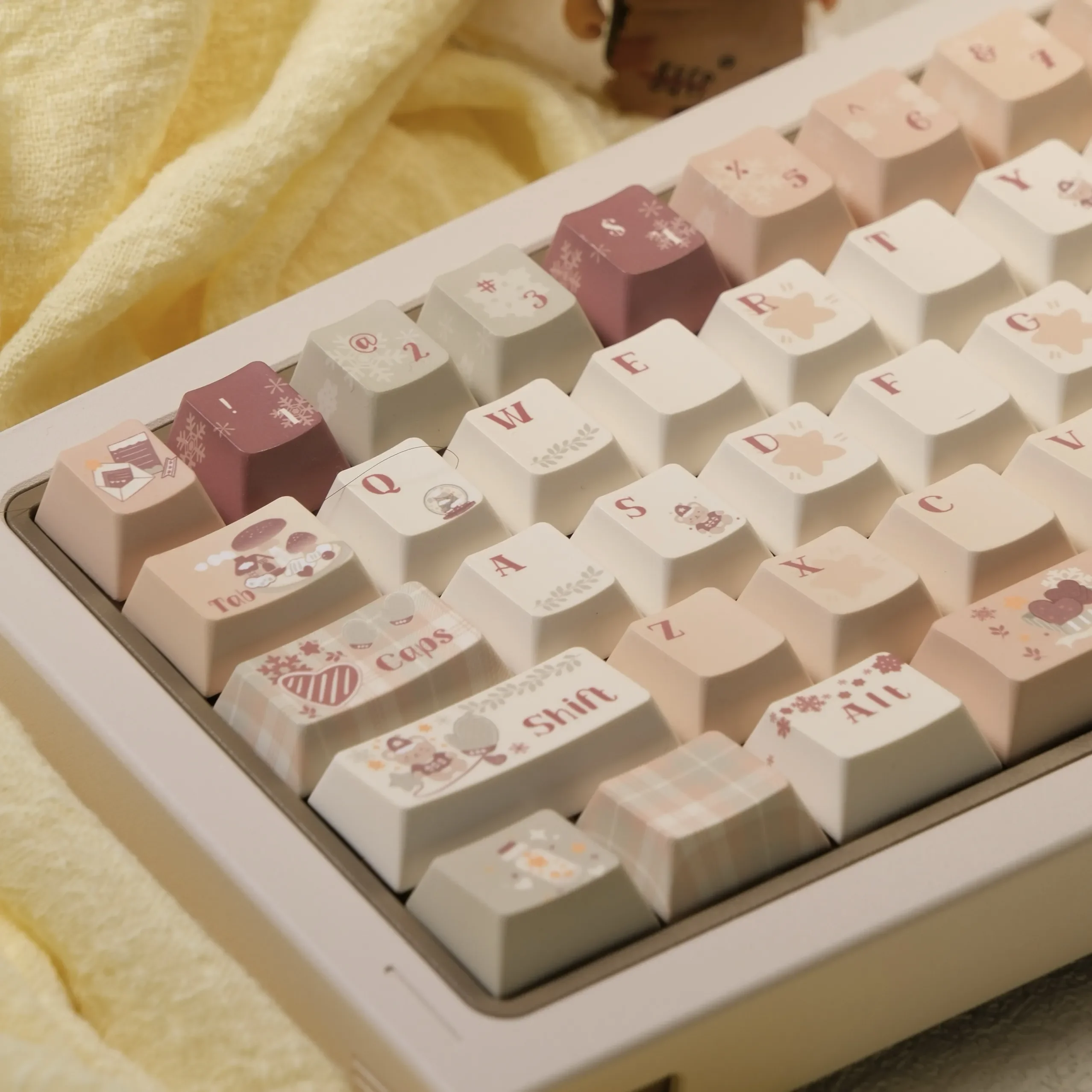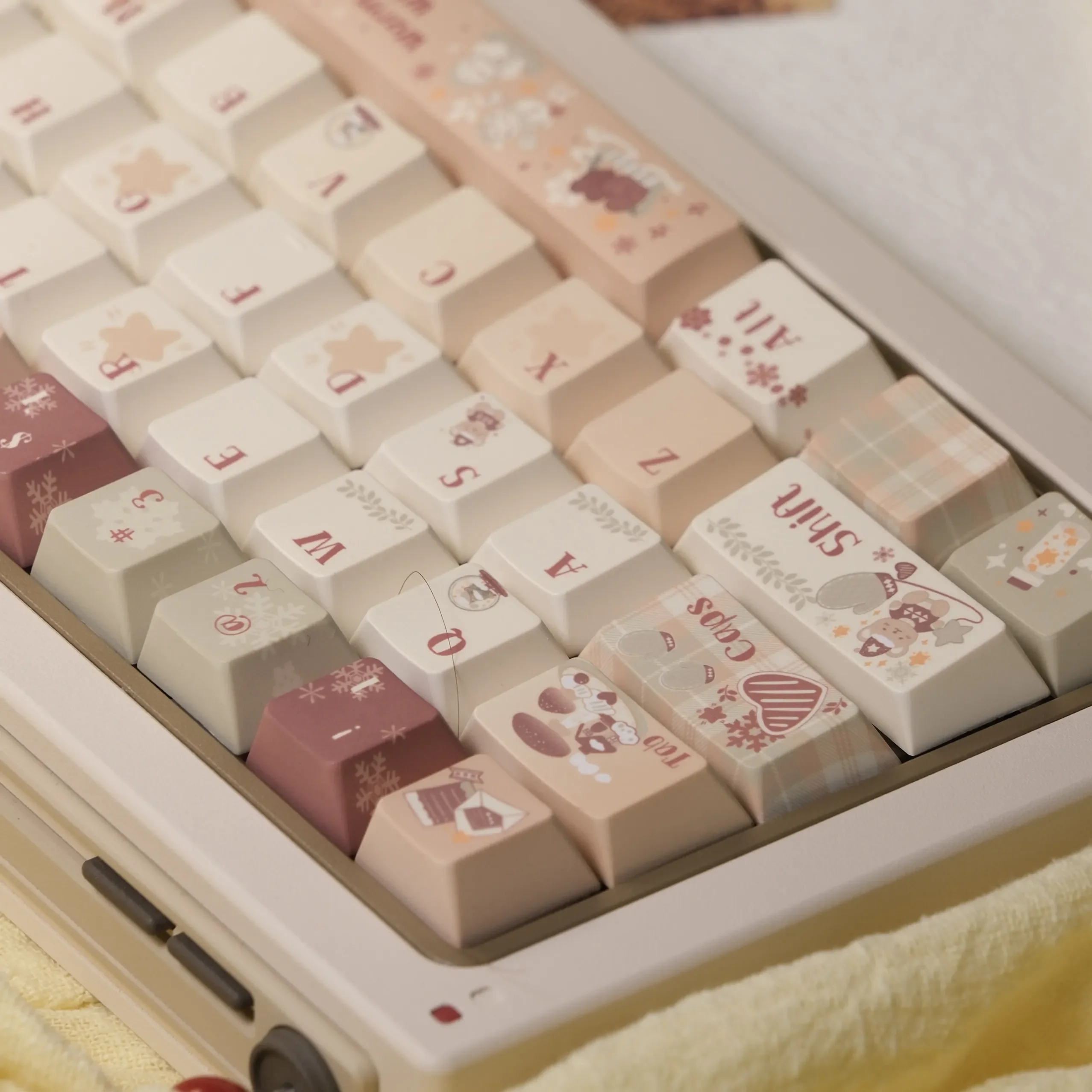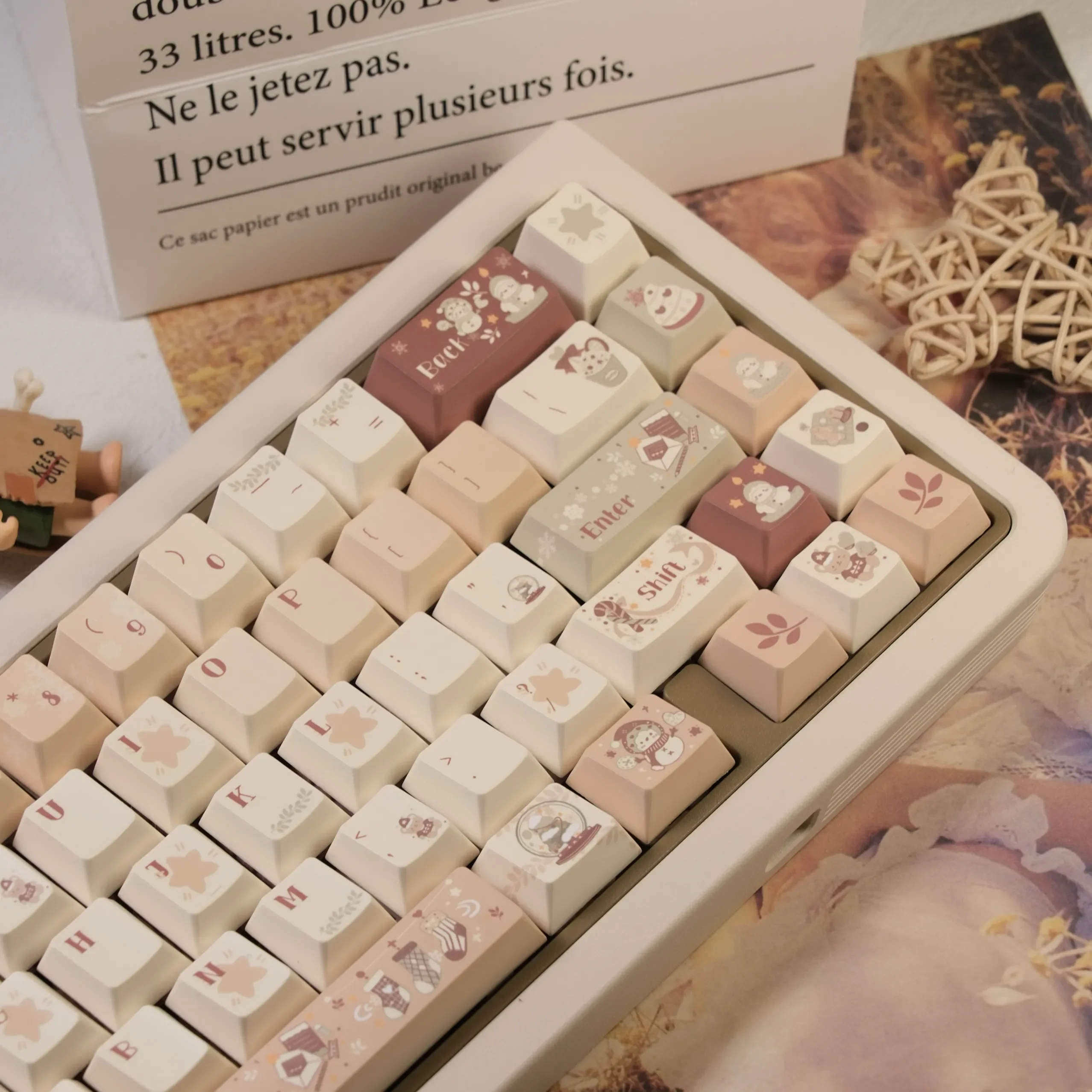 Evoke a comforting sense of warmth and sweet nostalgia with our exquisite Caramel Winter Cherry Keycap Set. Designed to transform your desk into a snug winter haven, this premium PBT Keycap Set offers an unparalleled tactile and visual experience for your custom mechanical keyboard. Immerse yourself in a cozy aesthetic with the rich, inviting palette of caramel, cream, and soft browns, meticulously crafted to deliver a truly luxurious feel. These Cherry Profile Keycaps are not only stunning but also engineered for superior durability and a comfortable typing experience, making them perfect for your cozy workspace. Upgrade your Warm Tone Keyboard and create an inviting atmosphere that enhances productivity and relaxation alike. Embrace the exceptional quality and unique charm of our Caramel Keycaps and make every keystroke a delight.