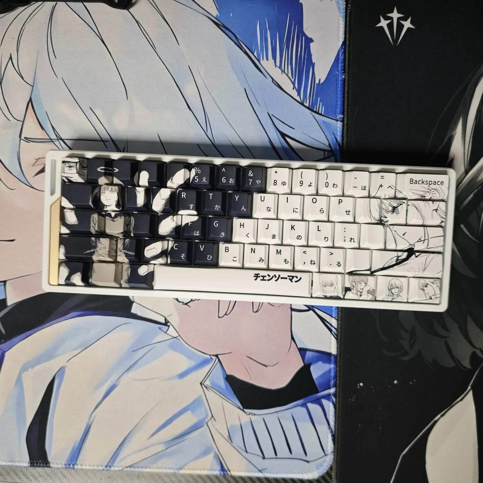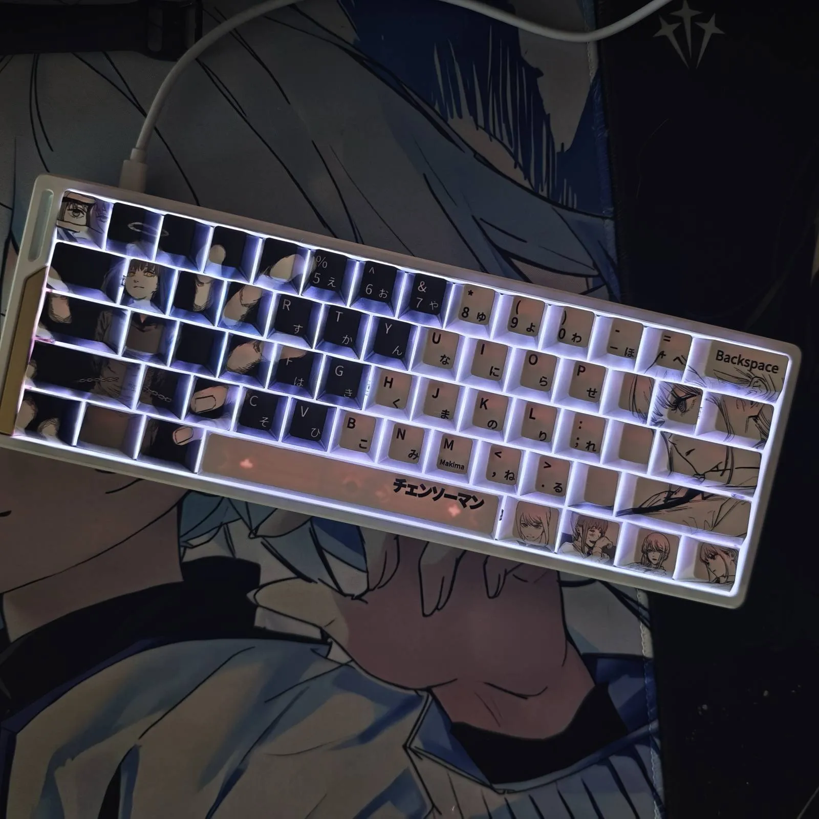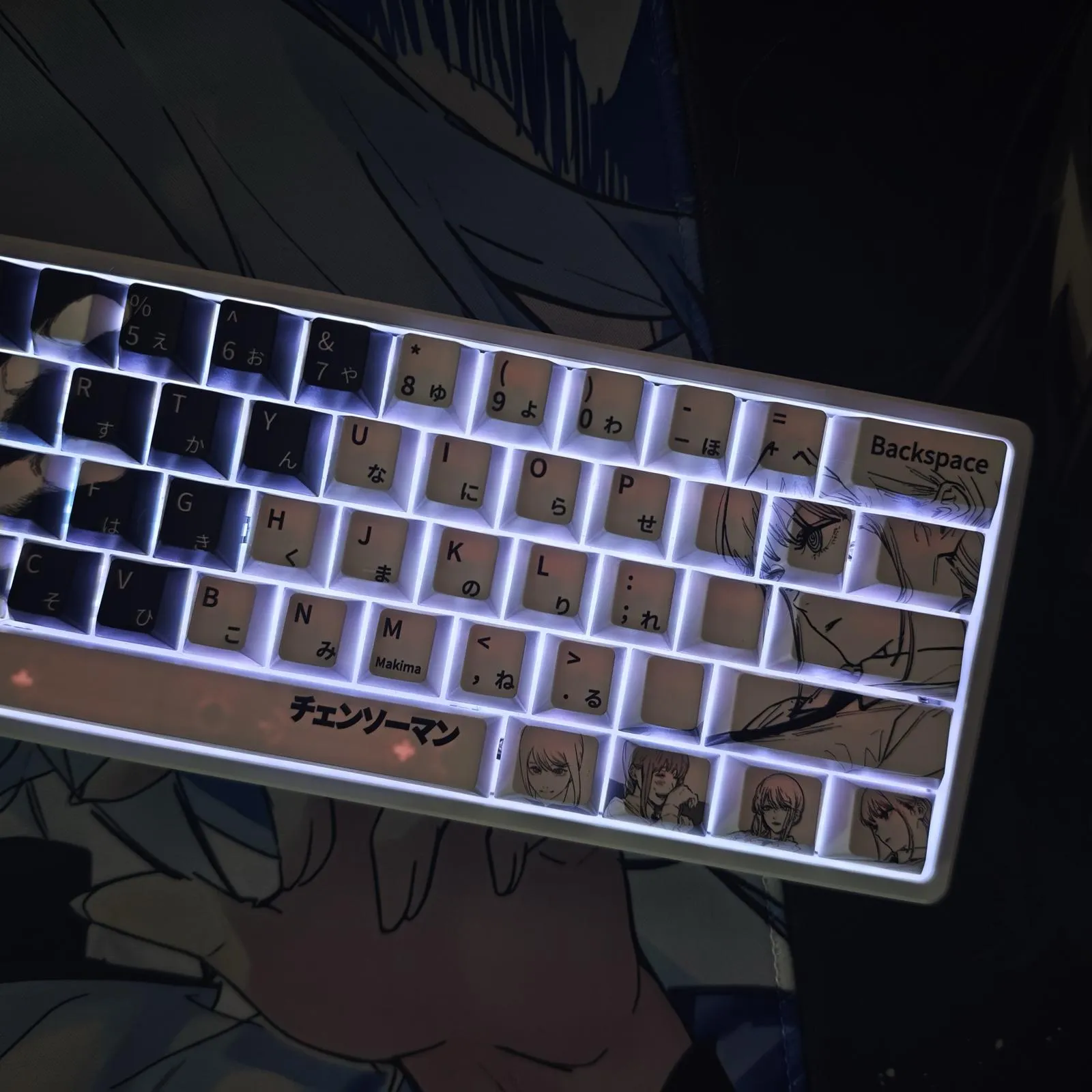 Elevate your keyboard with the Chainsaw Man: Black White Makima Cherry Keycap Set! The elegant black and white keycap combination in this eye catching set makes a strong visual statement. Black and white lettering adorns each keycap that guaranteeing flair and clarity. The Alphabet “M” Key which honors the adored character by proudly displaying the name “MAKIMA.” That is one of the notable designs. These keycaps long-lasting quality and resilience are ensured by their construction from sturdy PBT material. This keycap set which features a cozy Cherry profile. That shows off your love for Chainsaw Man while improving your typing experience. Any fan wishing to customize their setup would love this update!