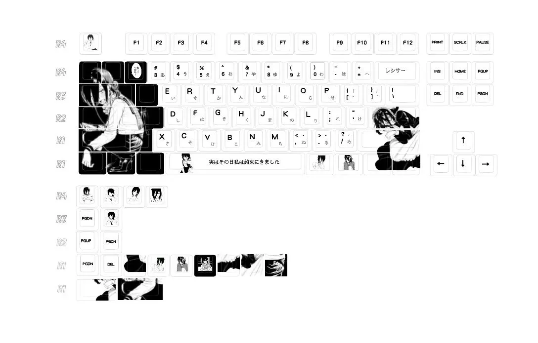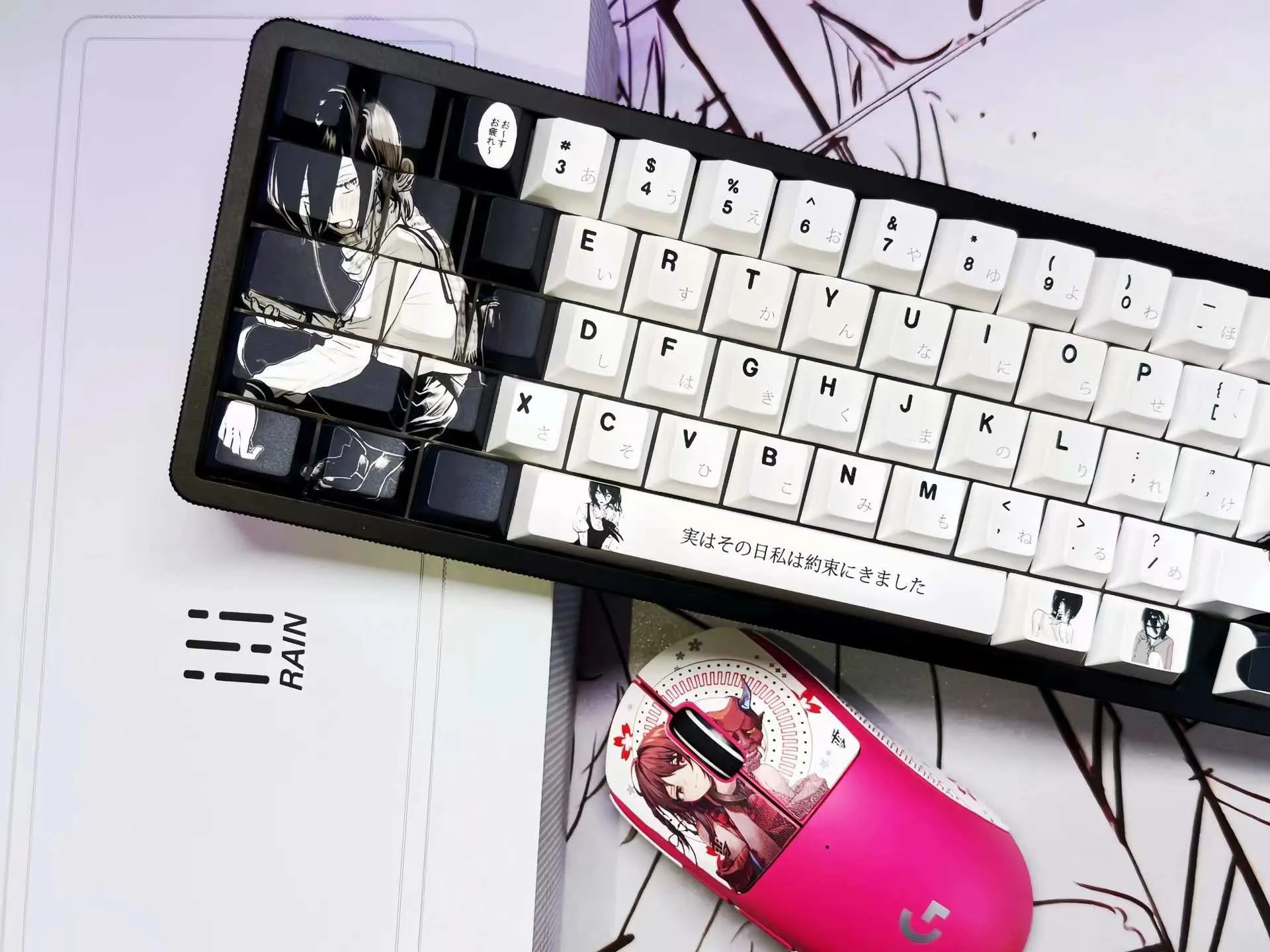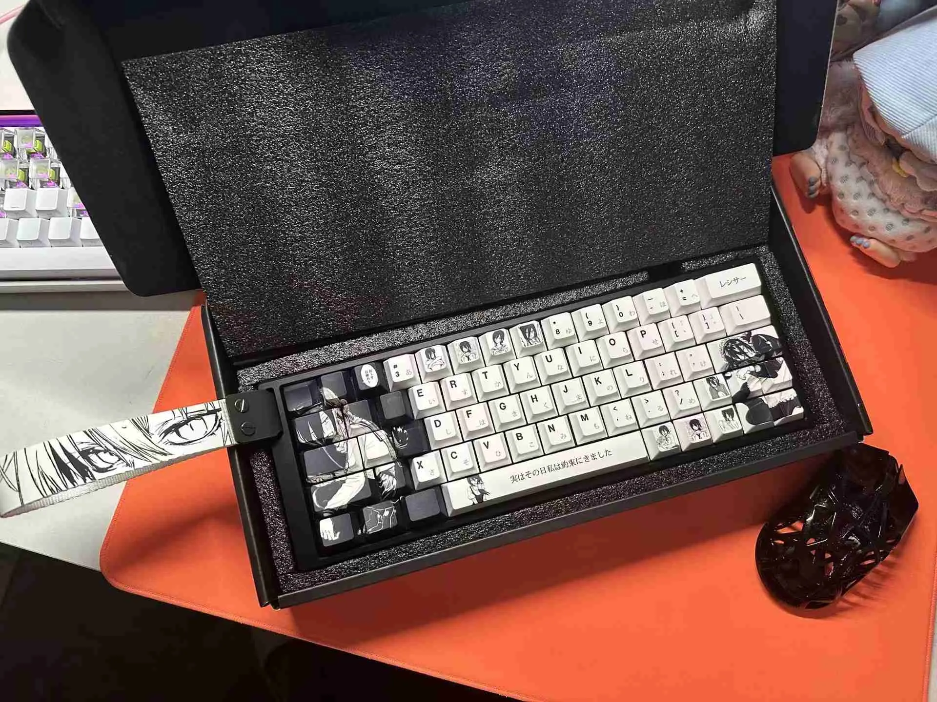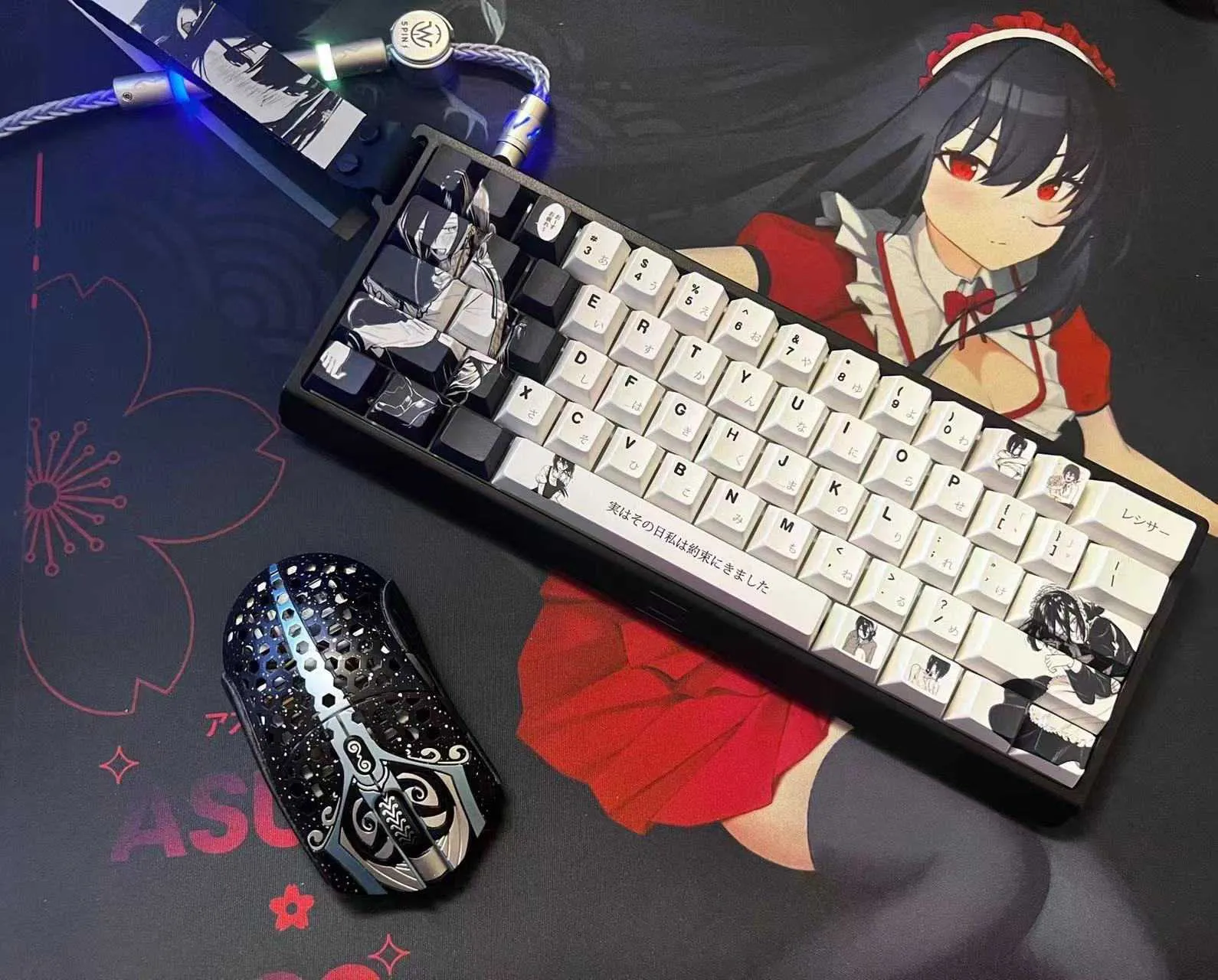 Transform your keyboard with the Chainsaw Man: Black White Reze Cherry Keycap Set! Black keycaps stand out against a sleek white base in this eye-catching set. A prominent Space Key that adds individuality is one of the distinctive character icon designs used in some keycaps. The whole beauty is improved by the exquisite portrayal of one character in a maid costume. These keycaps are made of sturdy PBT which guarantees lifetime without sacrificing their vivid look. Each keycap offers clarity and flair with its clean black lettering. For every enthusiast, the Cherry profile provides a comfortable typing experience. That making this keycap set the ideal combination of style and use!