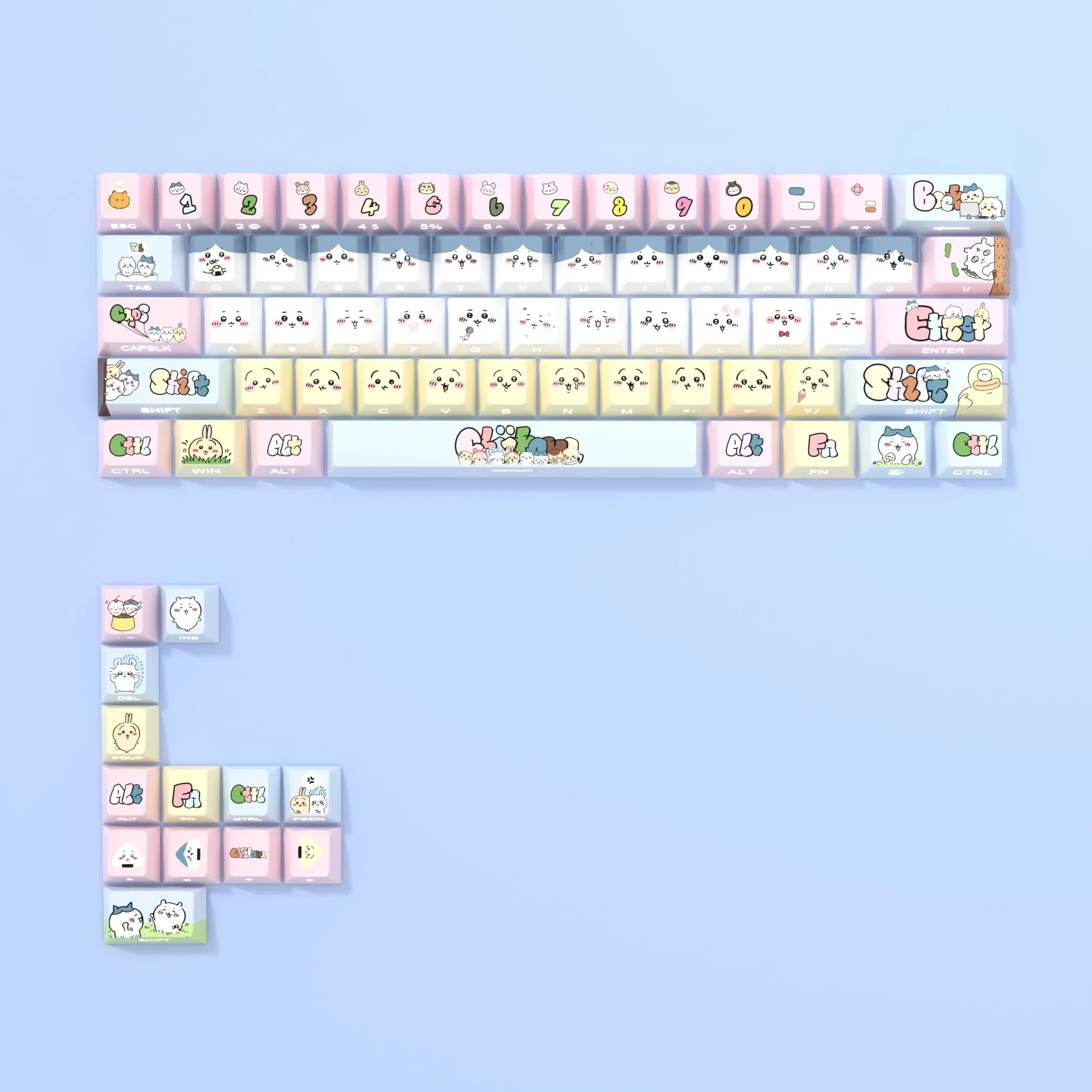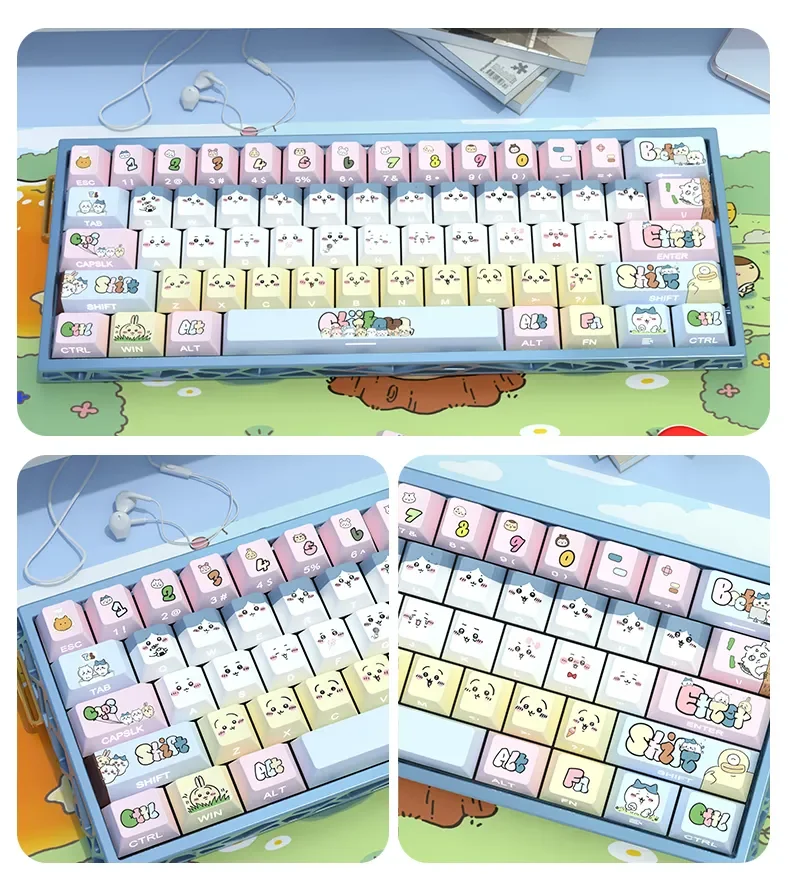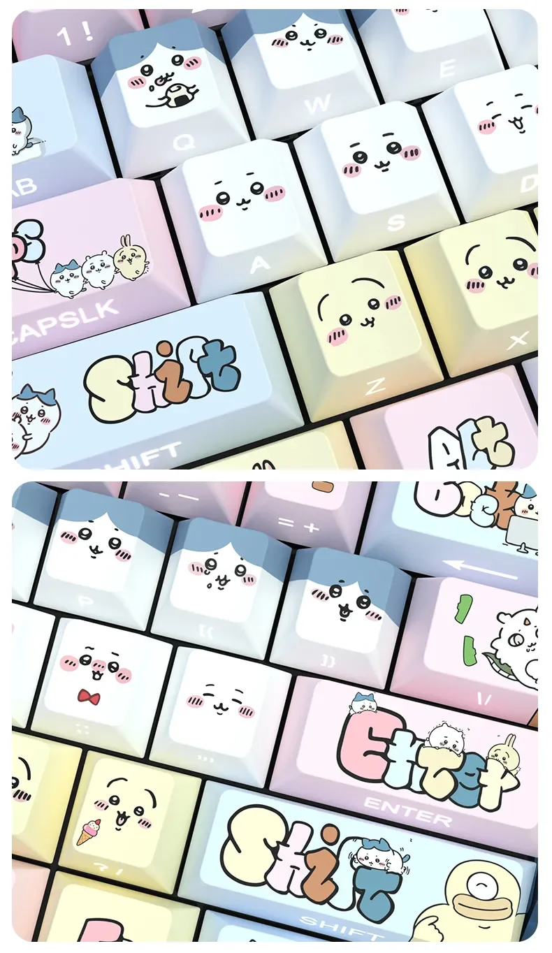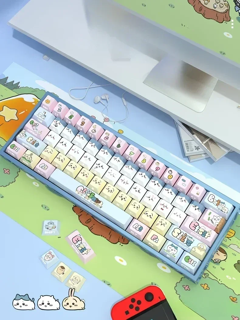 Transform your mechanical keyboard into a whimsical wonderland with our adorable Chiikawa: Cute Chiikawa Cherry Keycap Set! Designed to bring a smile to your face, these delightful Chiikawa keycaps feature charming side-printed characters and vibrant pastel hues. Crafted from high-quality PBT, they offer exceptional durability and a satisfying tactile feel, ensuring your typing experience is as joyful as it is reliable. The unique side-printed legends ensure a clean, minimalist top while allowing the enchanting Chiikawa illustrations to shine through with brilliant backlighting. Perfect for personalizing your gaming setup, enhancing your daily workflow, or adding a unique piece to your collection, these backlit keycaps elevate any Chiikawa keyboard. Get ready to infuse every keystroke with a touch of pure delight and enduring charm. This Chiikawa keycap set is your ticket to a truly personalized and enchanting typing adventure.