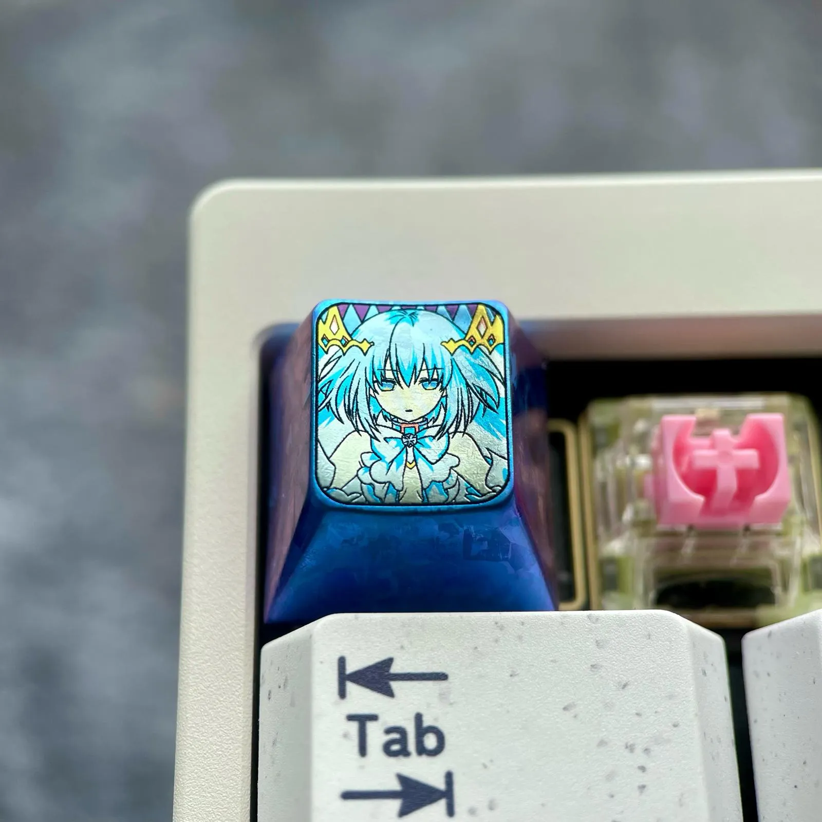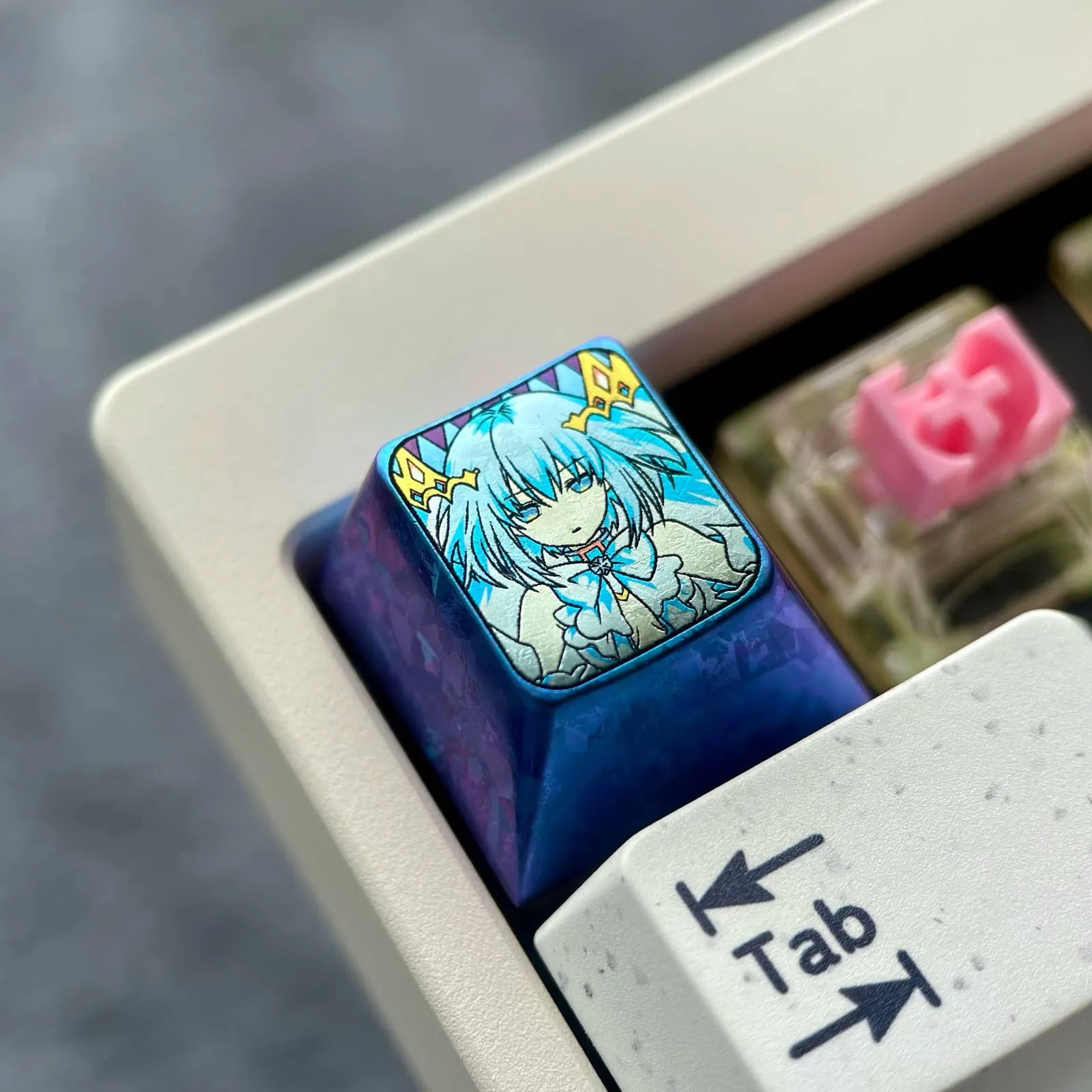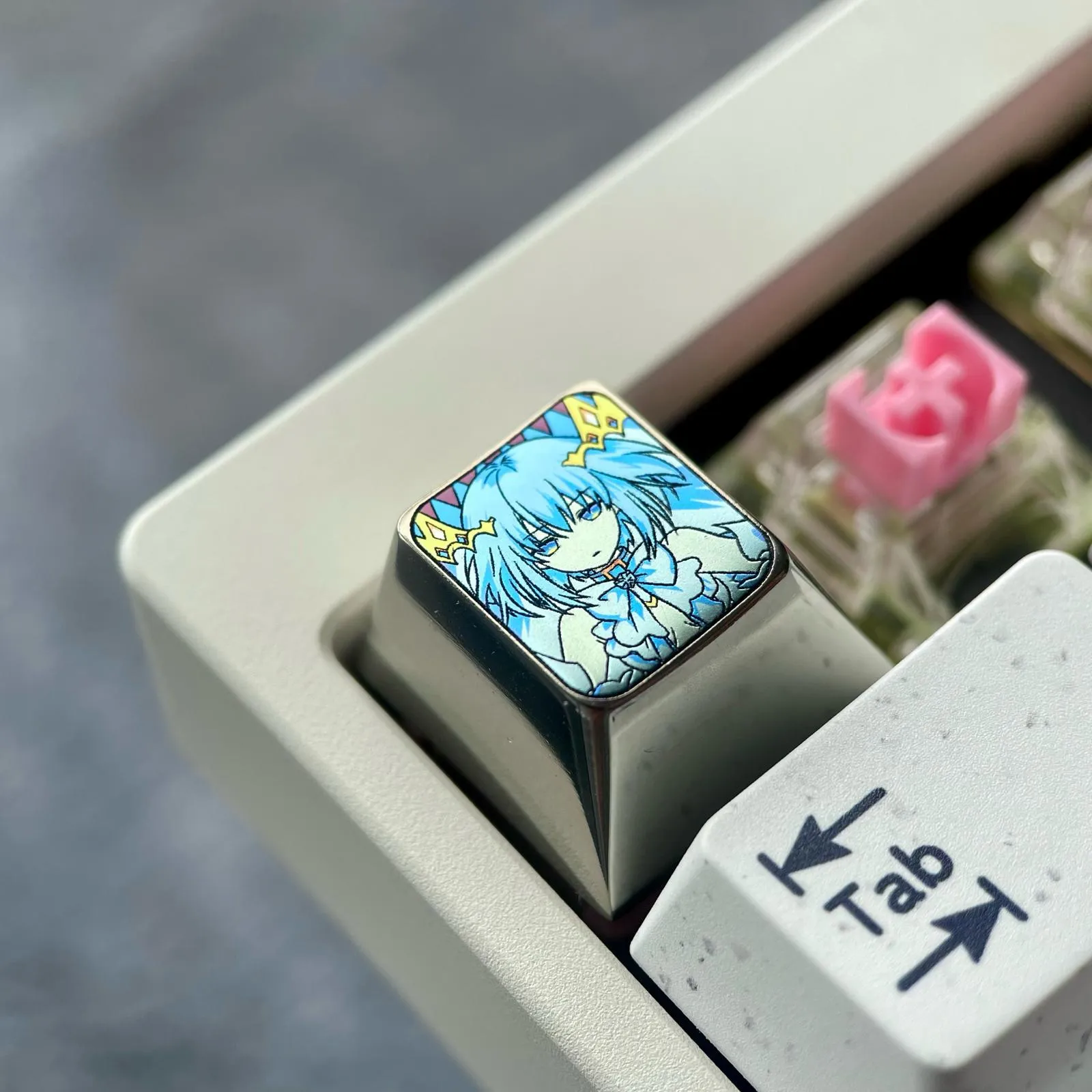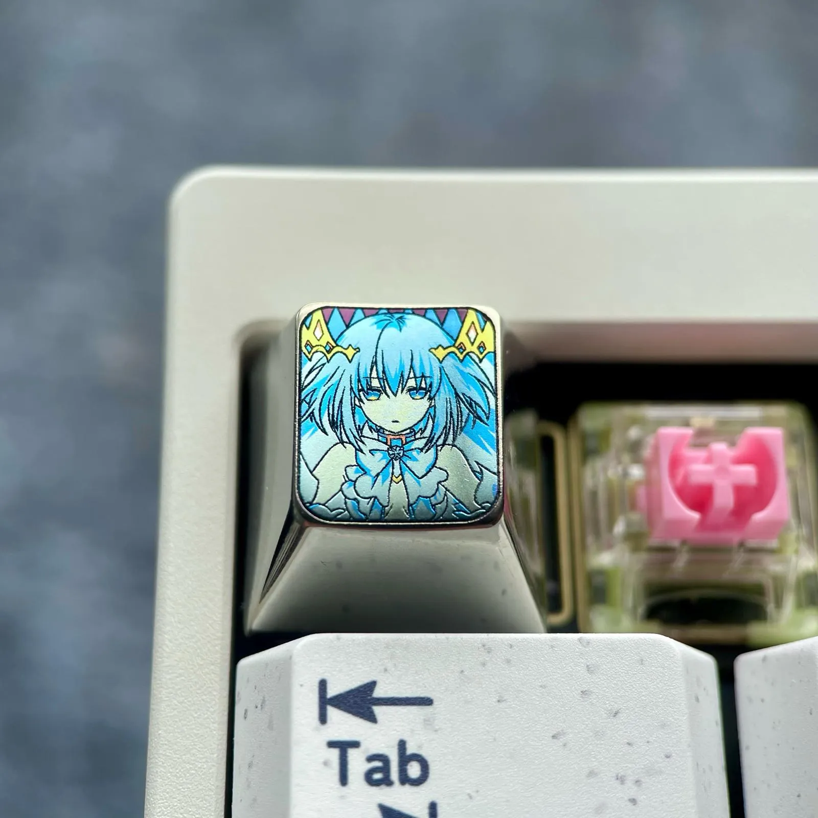 Enhance your keyboard with the Date A Live: Origami Tobiichi Keycaps! Durability, anime artistry and elegant design are all combined in this gorgeous collection. Origami’s recognizable short hair, bright blue eyes and exquisite ribbon detail. Which are captured in the 3D-crafted titanium metal keycaps. The Version comes in two eye-catching variations which is Blue and Grey. That accentuates her lively attractiveness and displays her poised grace. Her individuality is brought to life by the character icon designs. Which give each keystroke a distinct personality. These keycaps are made of high-quality titanium alloy. Which guarantees durability, comfort and strength. For lovers of Date A Live who appreciate originality, attention to detail and collector flair. Which this is an essential update.