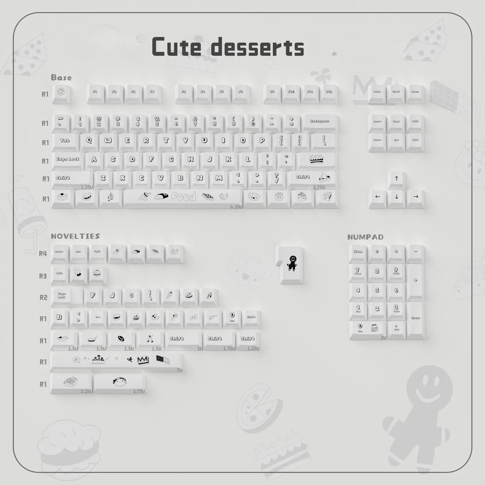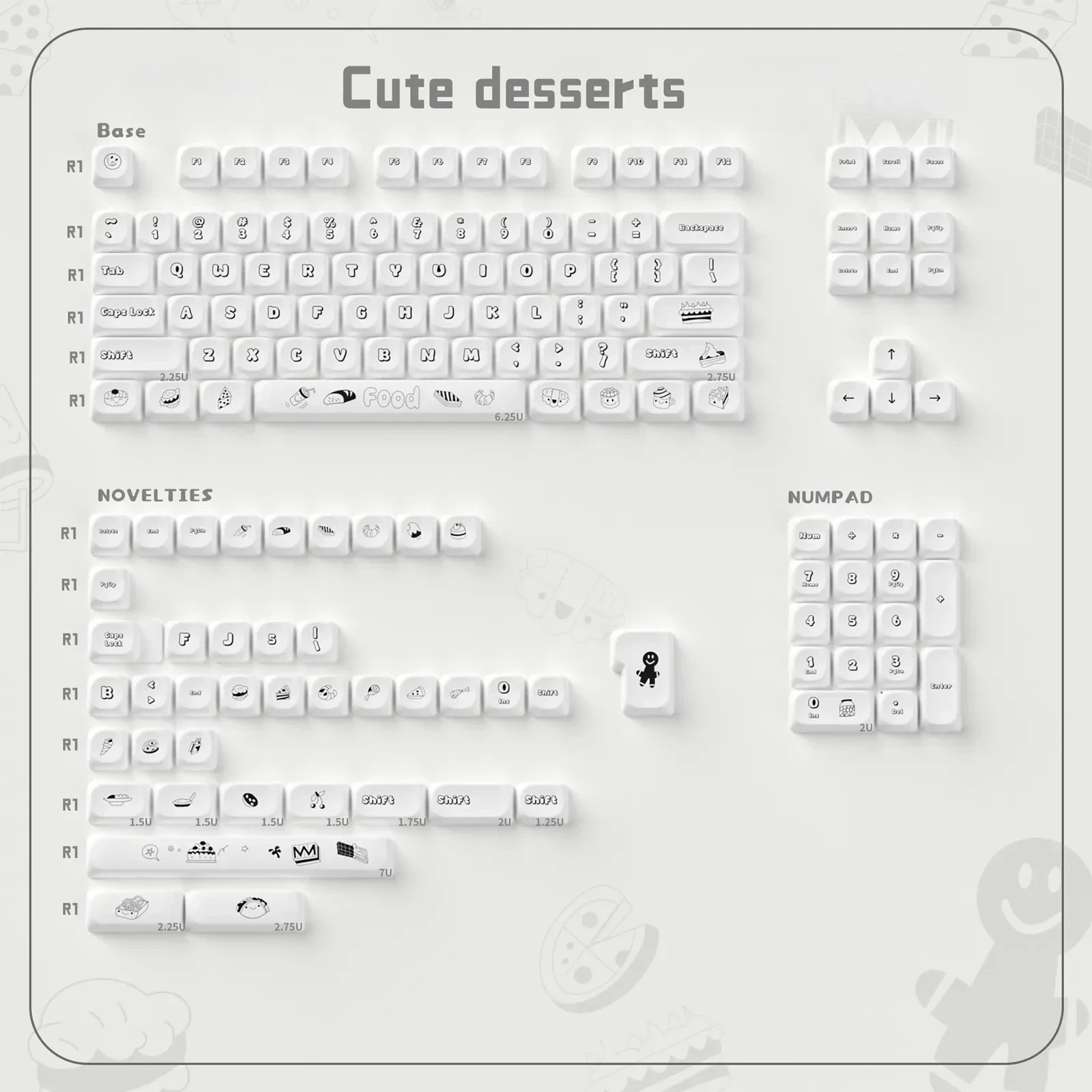 Step into a whimsical world where every keystroke is a taste of joy with our delightful Cute Dessert Series Keycap Set. This adorable PBT dye-sublimated set is designed to infuse your workspace with delightful sweetness and playful charm, celebrating the joy of cute, handcrafted aesthetics. Imagine a sweet dessert wonderland right at your fingertips, adorned with pastel-colored cakes, donuts, and candies that brighten your day. As a premium Kawaii keycap set, it offers more than just visual appeal; crafted from durable PBT material with advanced dye-sublimation, these custom mechanical keycaps promise vibrant, fade-resistant designs that will withstand countless hours of typing and gaming. Elevate your creative space and personalize your mechanical keyboard with these unique Dessert keycaps, ensuring both enduring quality and irresistible cuteness. Get ready to feel delight with every press!