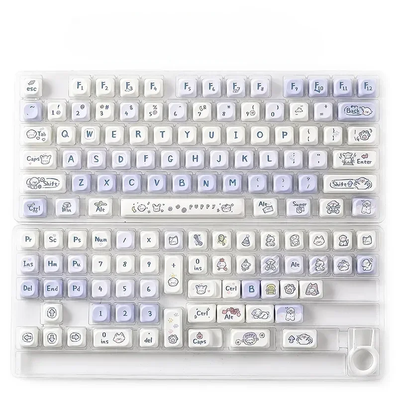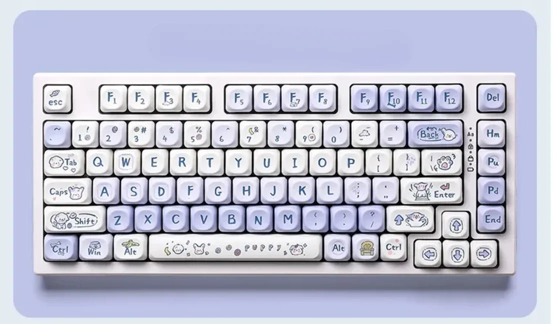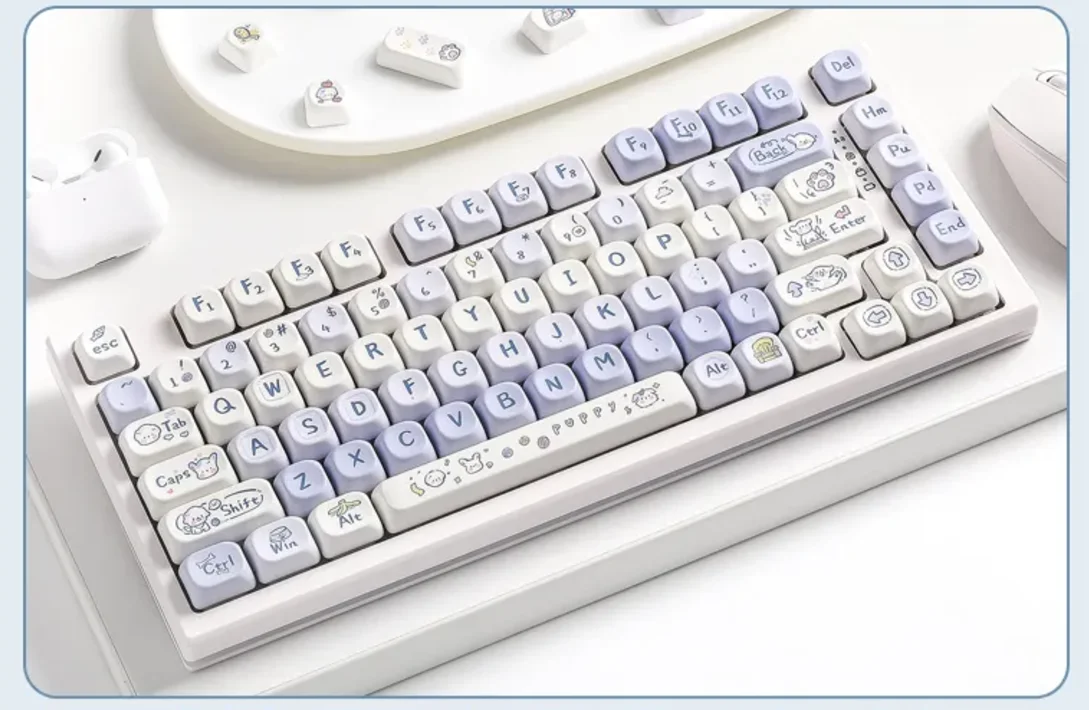 Bring a wagging tail of joy to your desktop with our delightful Endearing Dog MOA Keycap Set, designed to infuse your keyboard with playful charm and a unique, heartwarming personality. Experience the blissful comfort of our MOA Profile Keycaps, meticulously sculpted to cradle your fingertips during hours of typing or gaming. Each keycap in this set is crafted from durable PBT material, ensuring exceptional longevity and a satisfying tactile feel. Thanks to advanced PBT Dye-sub Keycaps technology, the whimsical cartoon dog characters and soft, comforting color palette are permanently fused into the plastic, guaranteeing legends that will never fade or wear. This ensures your keyboard maintains its vibrant, endearing aesthetic for years to come. Perfectly suited for daily use and a treasured addition to any collection, these Cute Custom Keycaps offer a truly joyful customization experience.