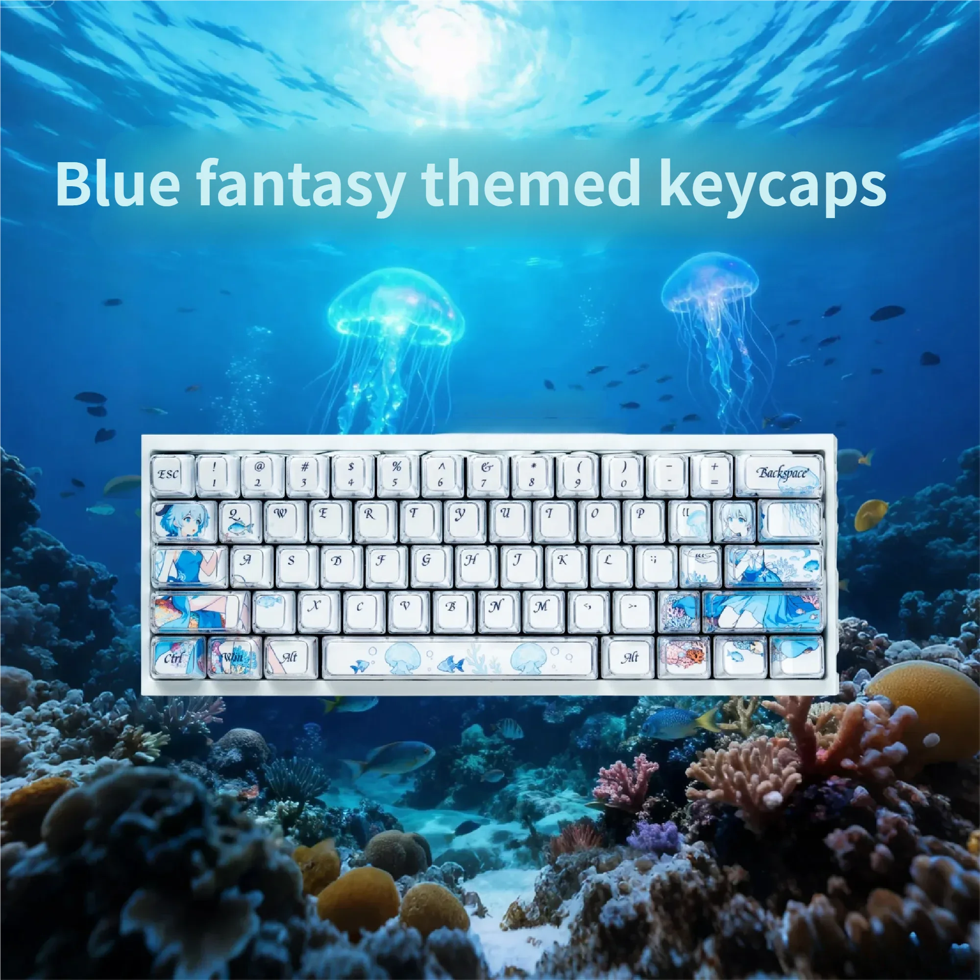 Immerse your workspace in a captivating, dreamy anime-inspired world with our Dreamy Blue Fantasy MDA Keycap Set. This stunning set transforms your keyboard into a portal of unparalleled creativity and personalized expression, featuring ethereal characters and celestial motifs in breathtaking blue hues. Each keycap boasts a vibrant anime fantasy design, meticulously applied using advanced dye-sublimation for enduring color and detail that resists fading. Constructed from high-quality, durable PBT, these Custom Mechanical Keycaps provide a satisfying typing experience with exceptional longevity. Perfect for gamers, creative professionals, or collectors, this set allows you to build a unique Blue Fantasy Keyboard Theme that reflects your artistic soul. Elevate your setup with these exquisite Dye-sublimation Keycaps and bring your desk to life.