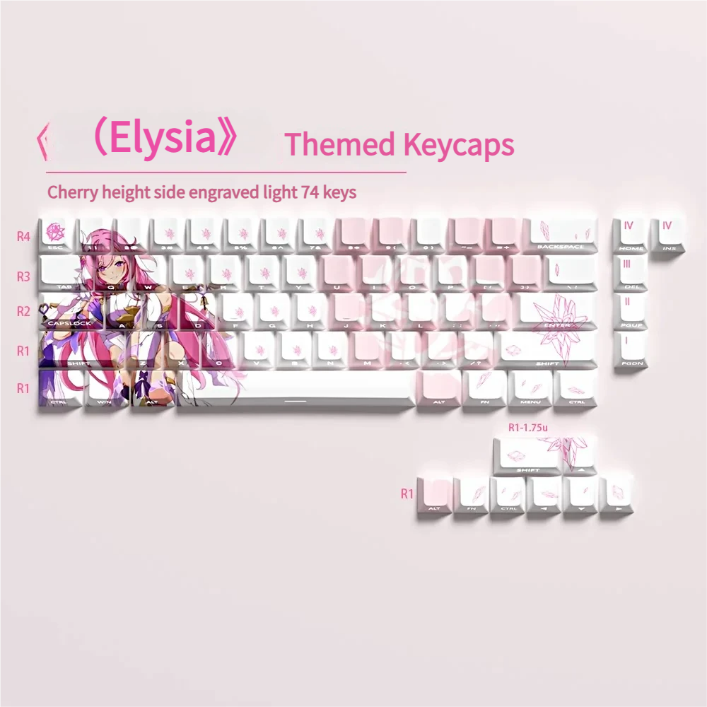 This listing includes a complete Elysia-themed keycap set designed to replace the keycaps across compatible keyboard layouts.