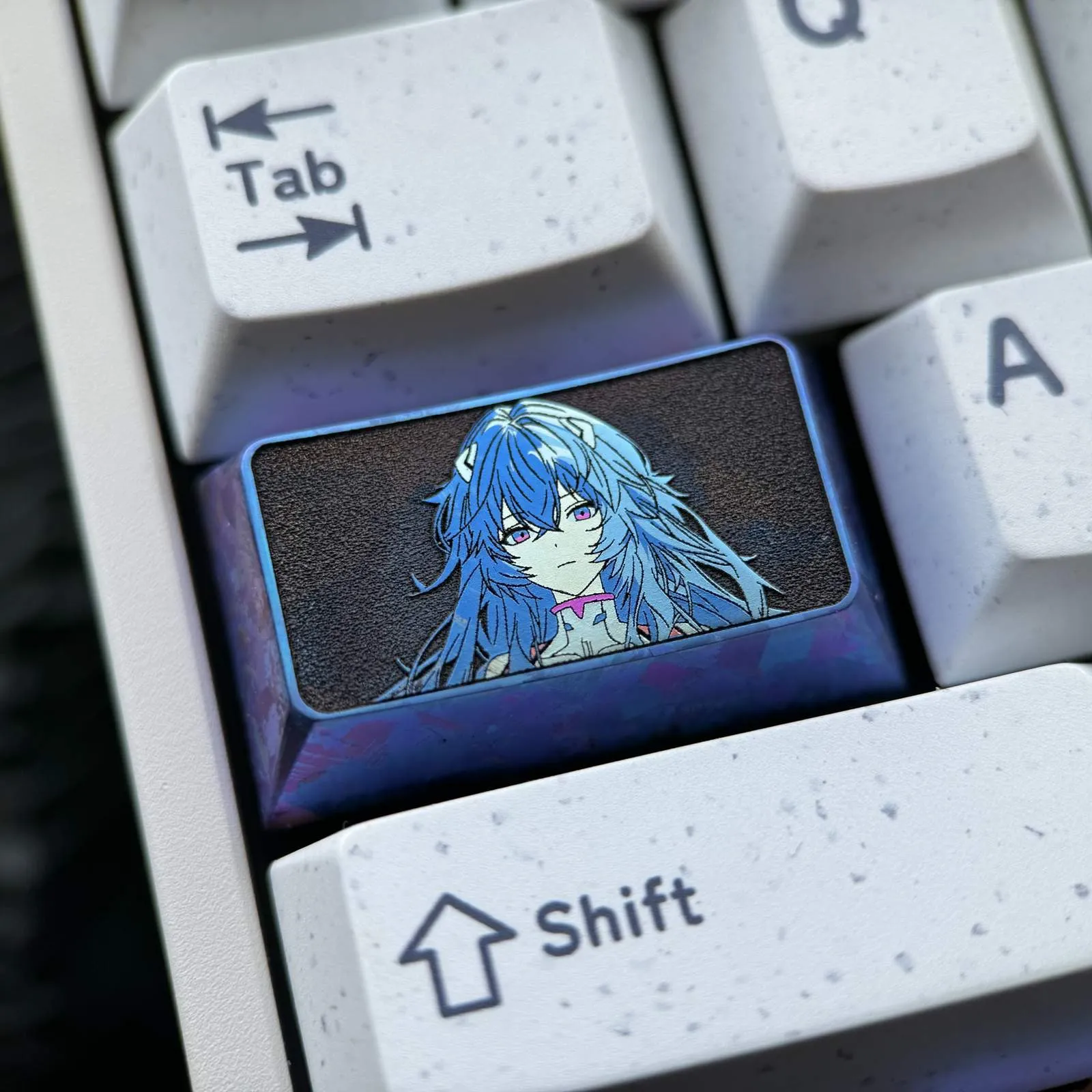 Illuminate your keyboard with the striking Neon Genesis Evangelion: Rei Ayanami Caps Key Keycap! The exquisitely drawn 3D character icon of character with her long blue hair and fascinating purple-blue eyes. That is featured on this engaging keycap. Her features show out brilliantly against a sleek black background which enhances the design. This keycap which is made of a sturdy titanium alloy that promises longevity and elegantly enhances your setup. It turns any keyboard into a piece of art that making it ideal for lovers of the renowned series. With this outstanding keycap which you can appreciate Rei’s distinct charm and improve your typing experience!