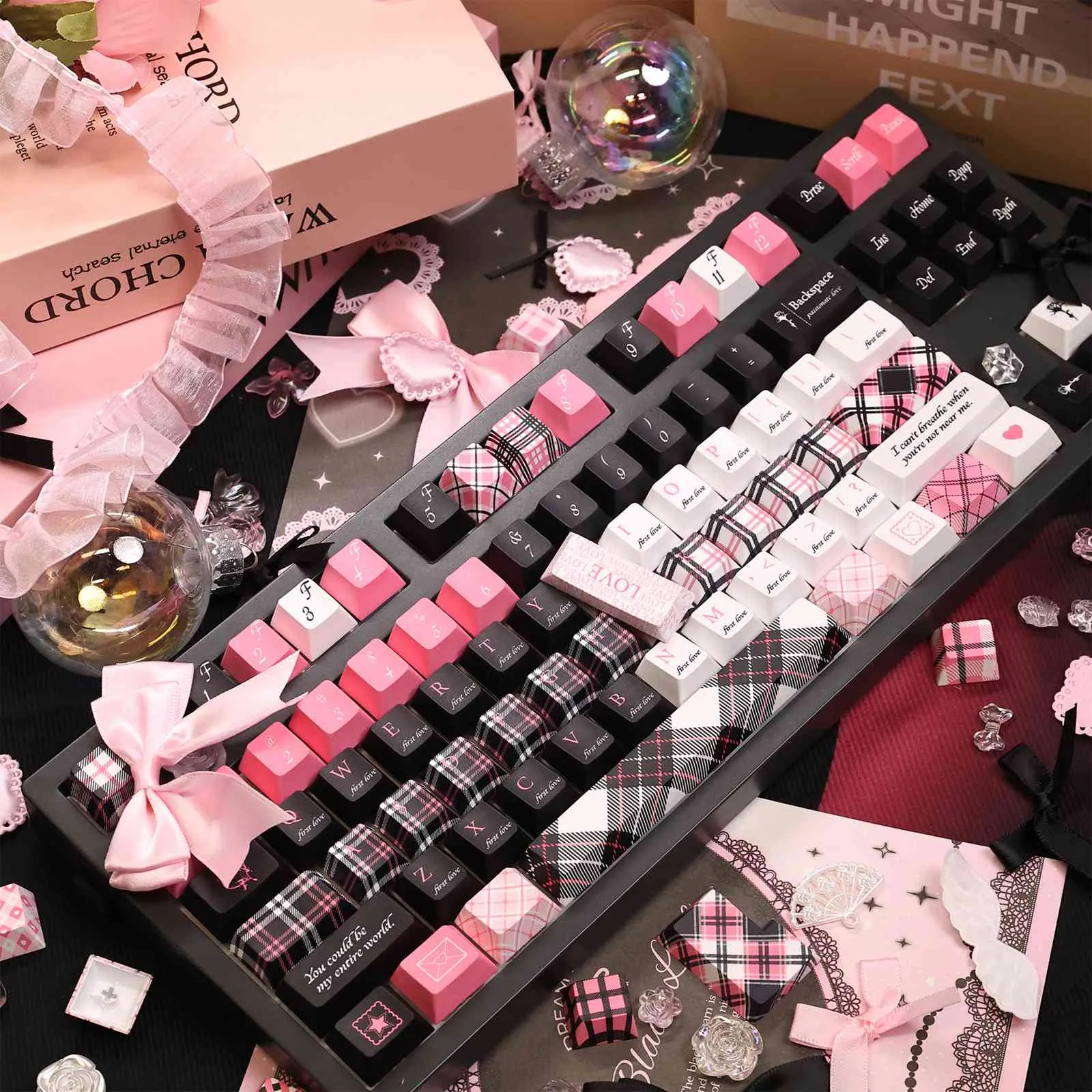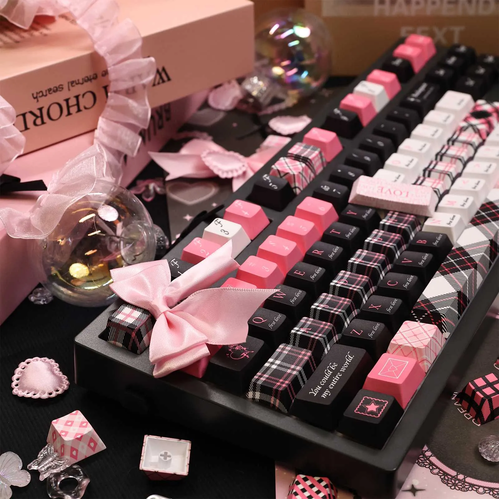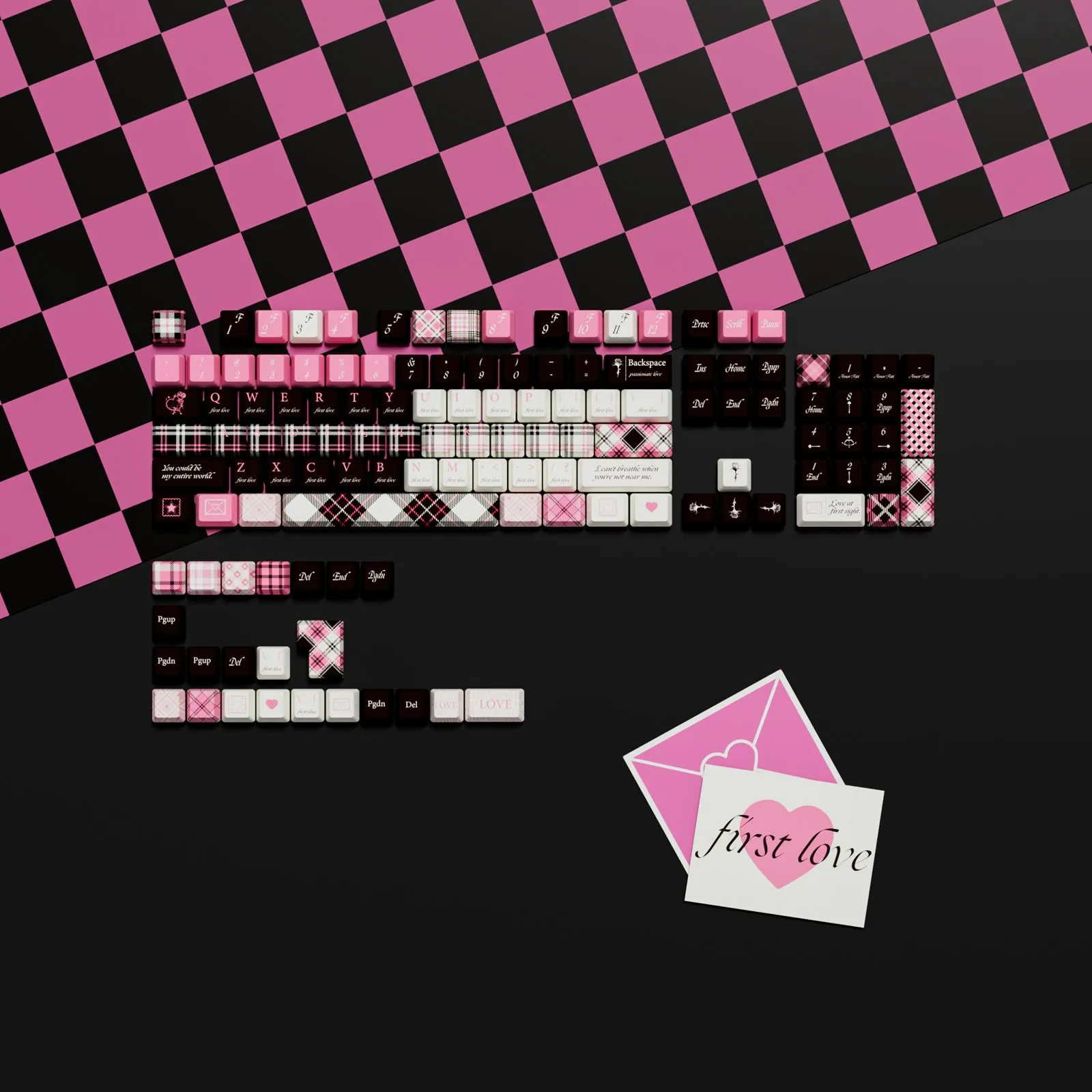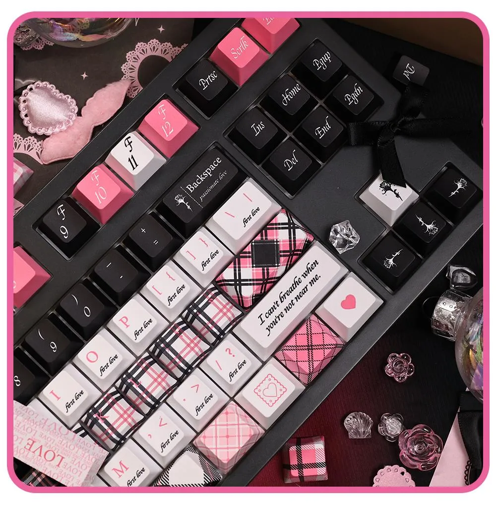 Discover the allure of romance with the OEM Keycap Set for First Love! The lovely combination of pink, white and black keycaps in this stunning assortment is ideal for giving your keyboard a refined touch. Your setup is very distinctive because of the elaborate lattice design, which improves the visual appeal. Adorable envelope and heart shaped symbol designs that perfectly capture the essence of love are included on each keycap. These keycaps long-lasting quality and resilience are guaranteed by their construction from sturdy PBT material. With the First Love keycap set that you can express your love. Which enhance your typing experience while turning your keyboard into a charming focal point!