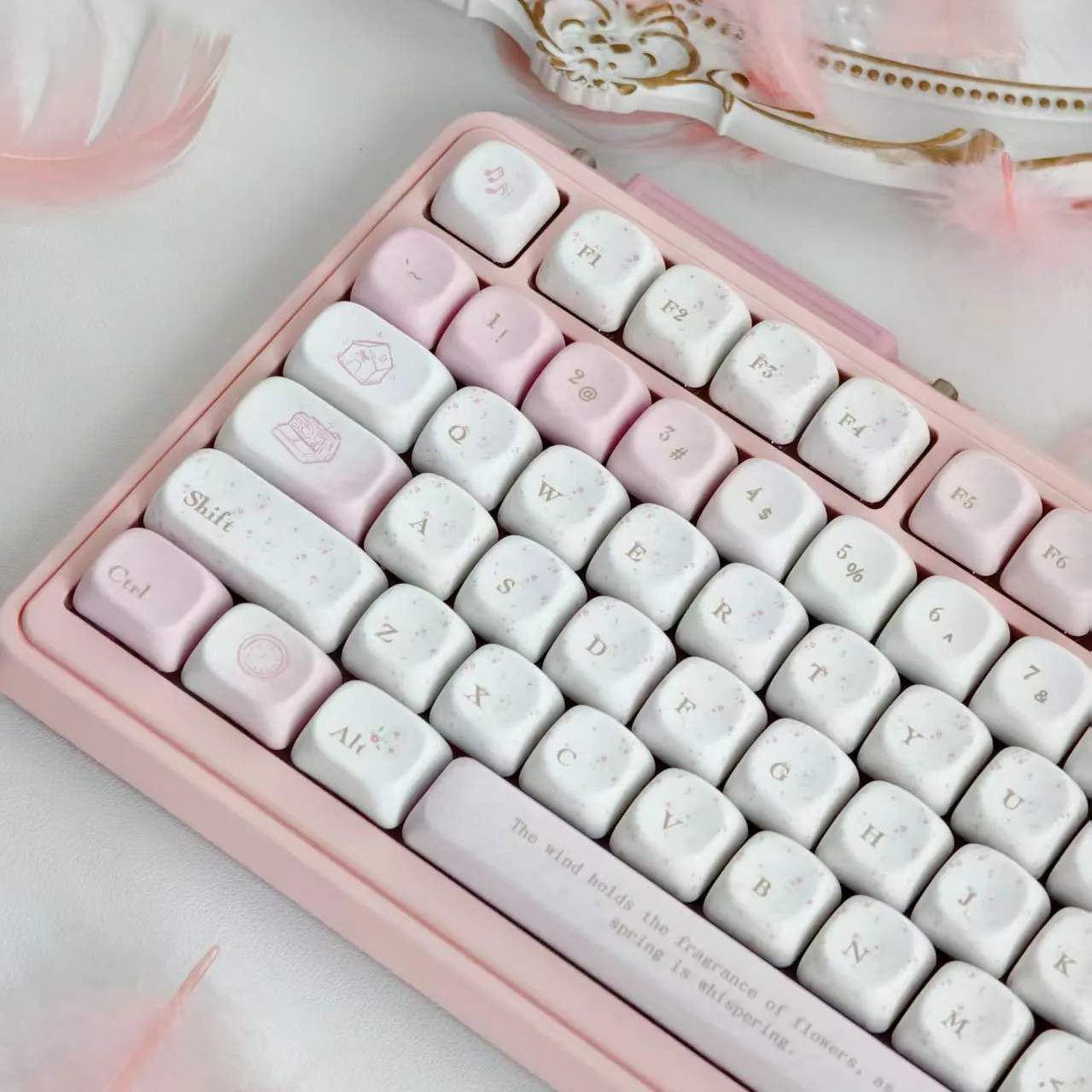 Announcing the Flower Beauty Series Keycap Set which combines style and utility! The Cherry Keycap Set, Cherry Keycap Set with Side Lettering, MOA Keycap Set and ADA Keycap Set are the four alternatives available. Soft pink keycaps decorate a white base that giving each keycap a beautiful appearance. A delicate touch is added by the unusual font style of the grey lettering. Which is smaller than usual products that make it unique. The majority of keycaps include adorable little flower symbol designs that add to their whimsical appeal. To provide a fun twist one keycap also has a clock icon design. These keycaps are made from sturdy PBT. Which are available in Cherry Profile, MOA and ADA variants that guaranteeing lifetime and flair!