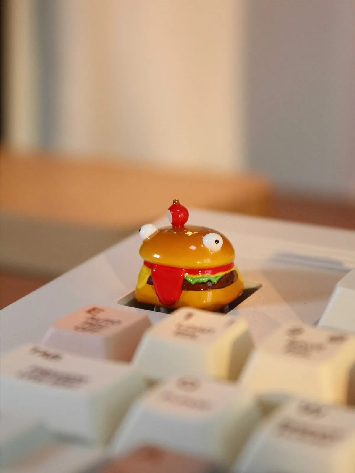 Featuring the Fortnite: Durrr Burger Keycap which is a fun and striking keyboard accessory! This humorous keycap features a unique burger design. Which designed in a cheeky tongue and adorable eyes that give charm. Two fluffy buns are sandwiched with layers of delicious burgers, cheese and fresh vegetables. That results in a delicious visual feast. The top has a striking crimson accent that completes it and heightens its whimsical appeal. The high quality resin used to make this 3D keycap. The character of the well known Durrr Burger from Fortnite is aptly captured by that. It is more than just an accessory. As these keycaps are a distinctive way to show off your passion for gaming. Use this entertaining keycap to make typing more enjoyable!
