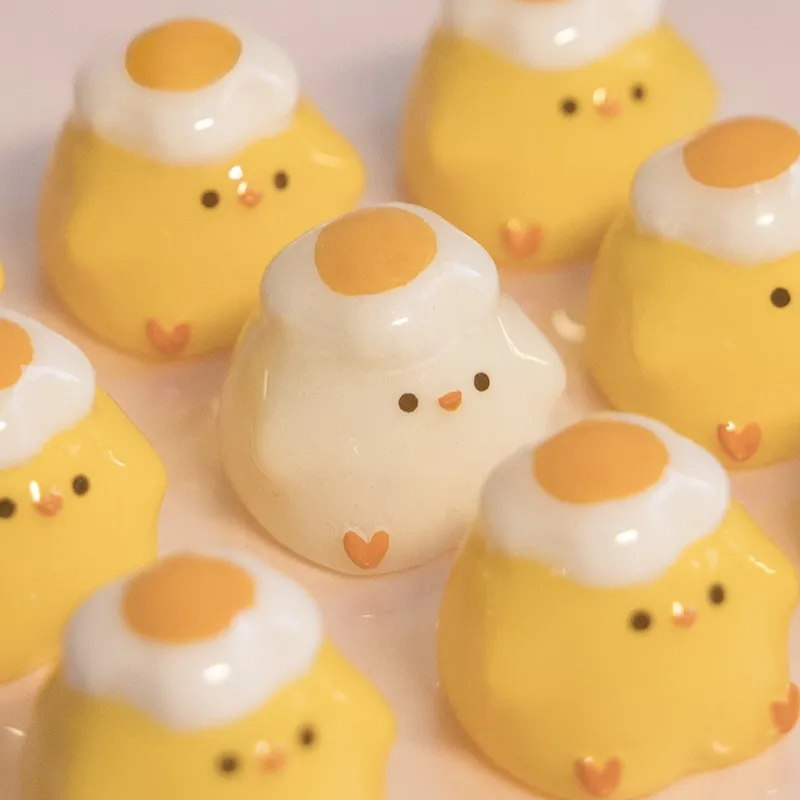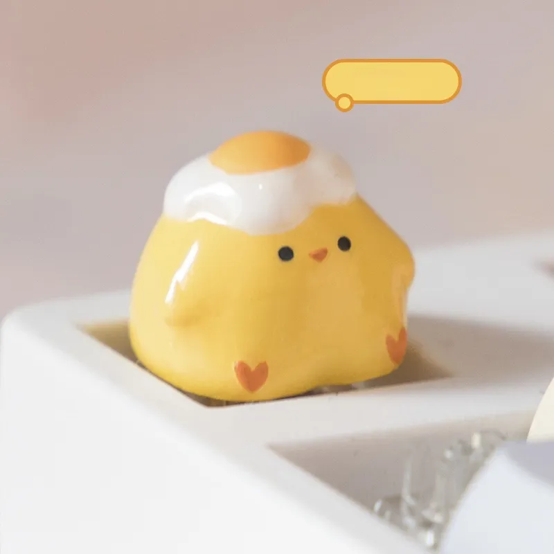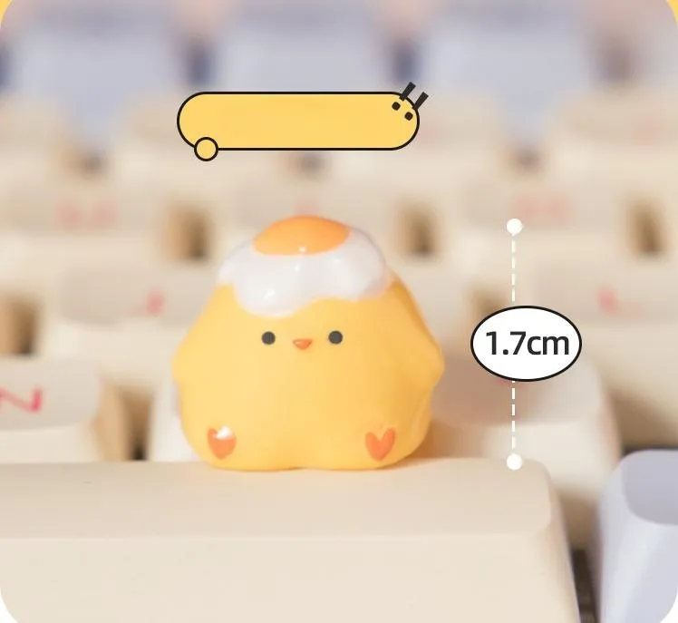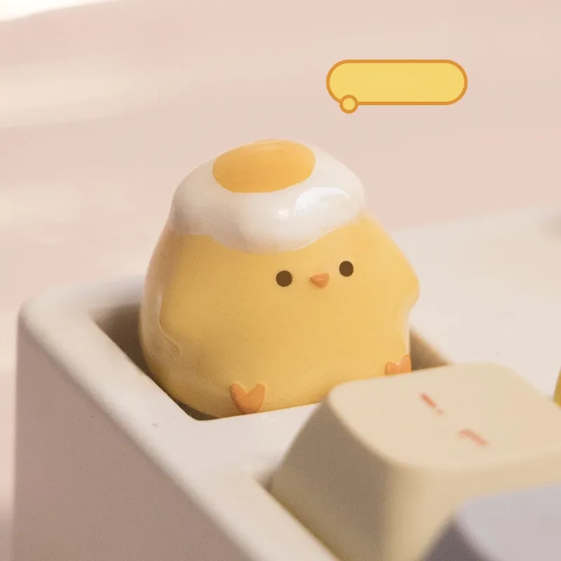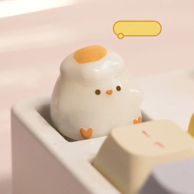 Brighten your keyboard with the delightful Fried Egg Chick Series Keycaps! Featuring a cute chick design sitting atop a cooked egg. Which these keycaps come in three gorgeous colors: Milk White, Milk Orange and Tender Yellow. Because each keycap depicts a sitting position that it gives your setup a whimsical touch. They are long-lasting and provide a distinctive touch to your workstation because they are made from premium 3D plastic. These keycaps will add delight to typing that making them ideal for both casual users and gamers. With this adorable set which you can turn your keyboard into a whimsical paradise! Take advantage of this wonderful design’s opportunity to be realized!