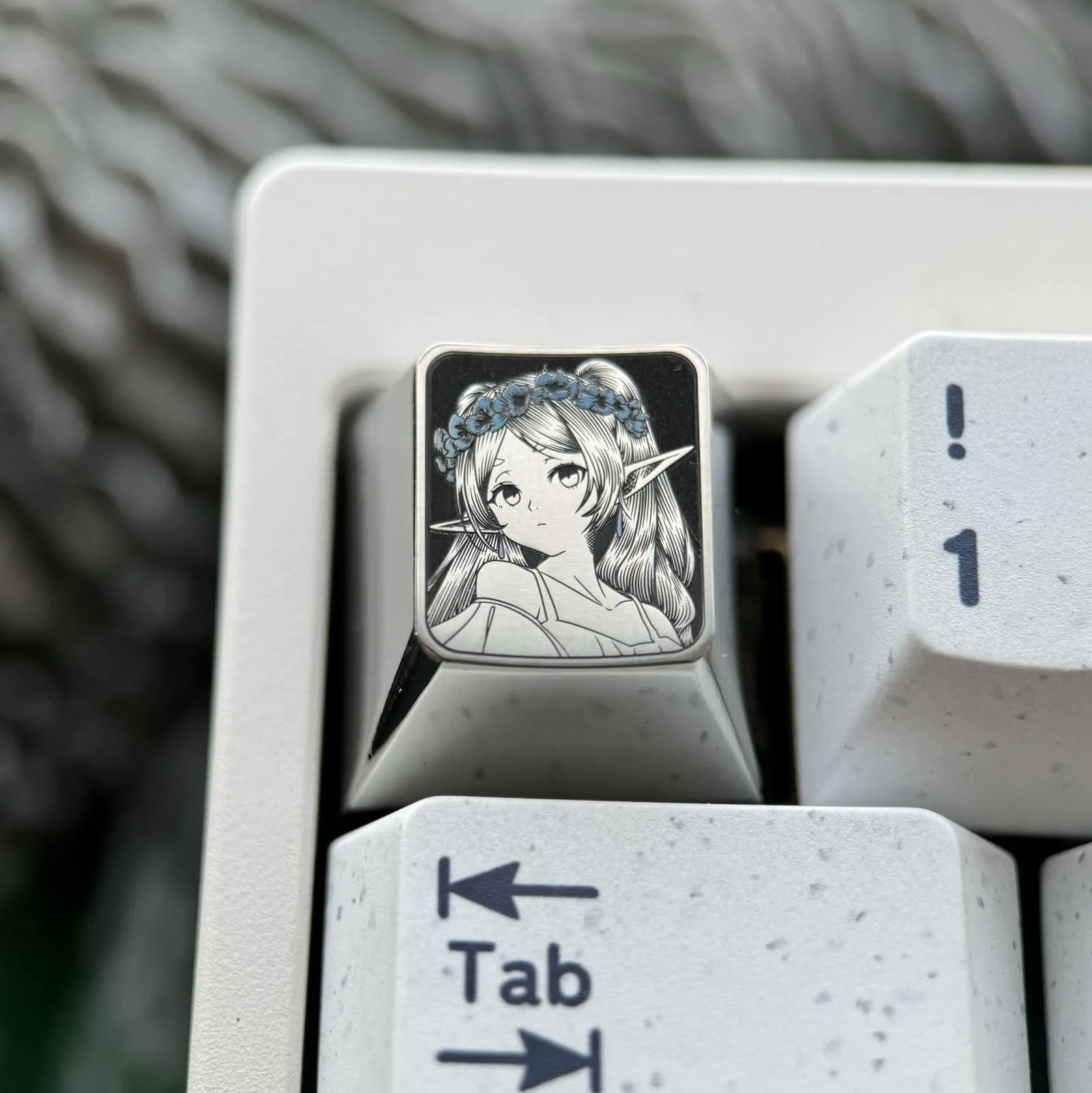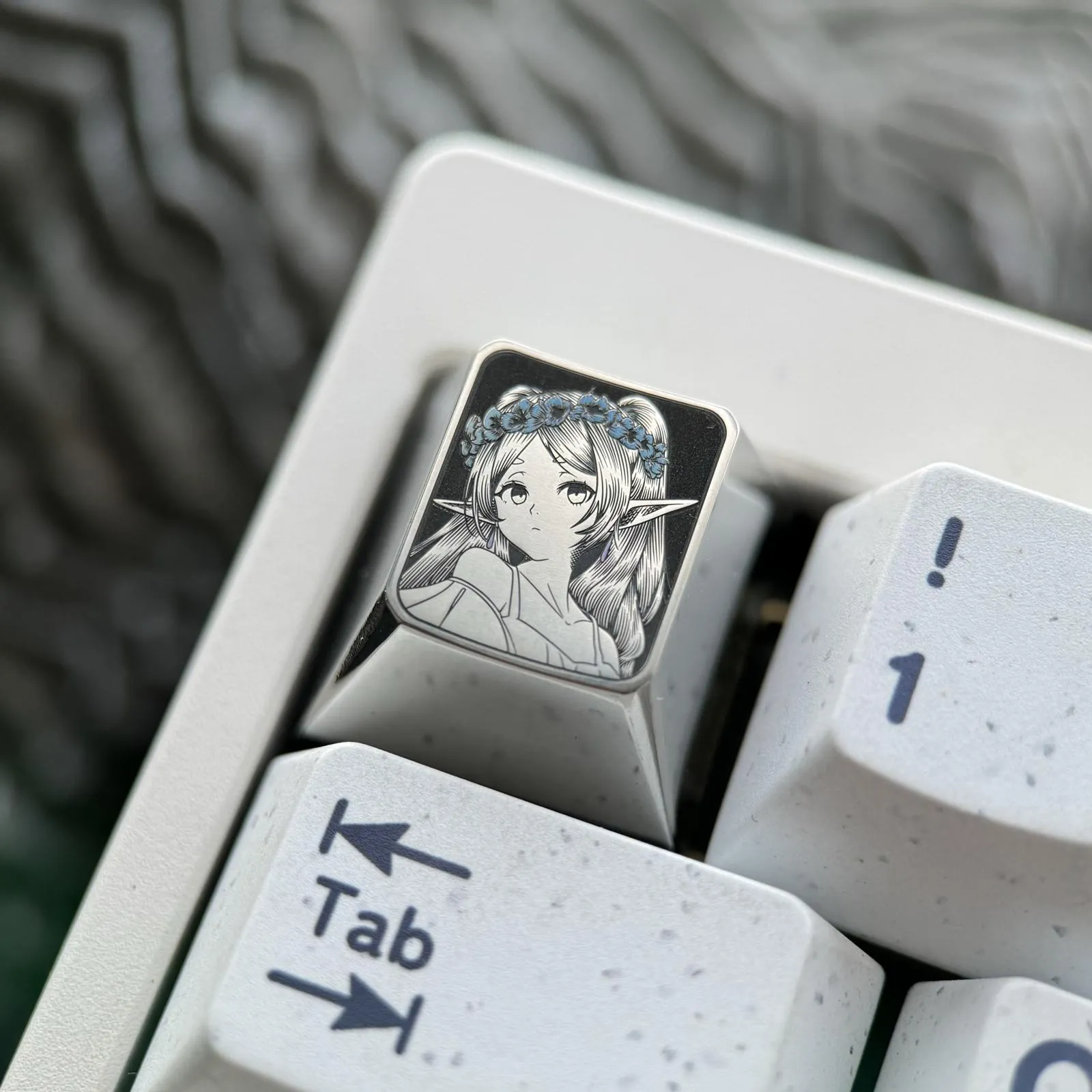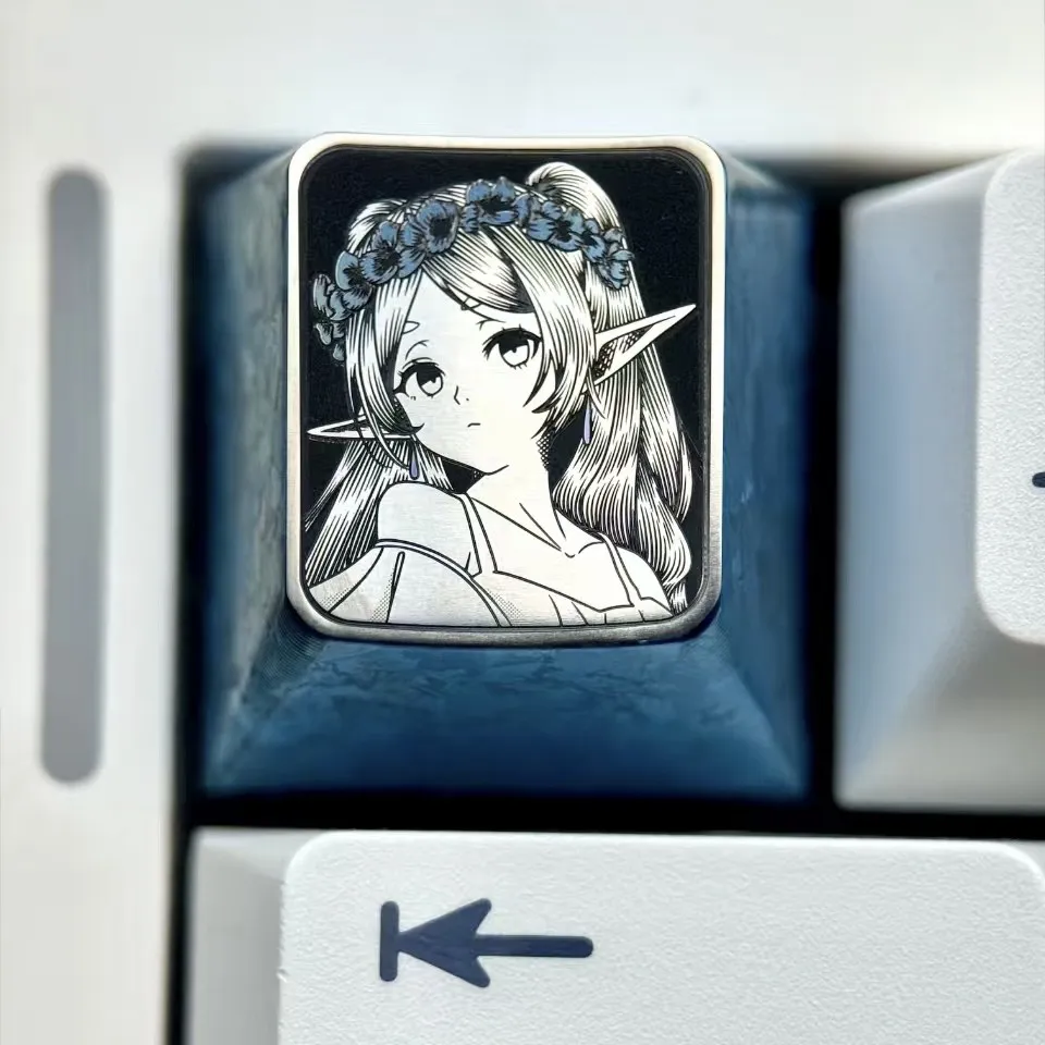 Revamp your keyboard with the gorgeous Frieren: Beyond Journey’s End: Frieren Side View Keycaps! Silver, Blue, Colorful and Meteor Ice Crystal are the four alluring options available in this stunning collection. With a pretty flower hair accessory that adds a touch of elegance. That each keycap has a lovely character icon design. The vivid hues are accentuated by the dramatic black background. Which makes each keycap genuinely unique. These keycaps long lasting quality and resilience are guaranteed by their sturdy titanium construction. Fans of Frieren will love the eye-catching impact created by the distinctive 3D design. You can show off your passion for the series and customize your setup with this keycap set!