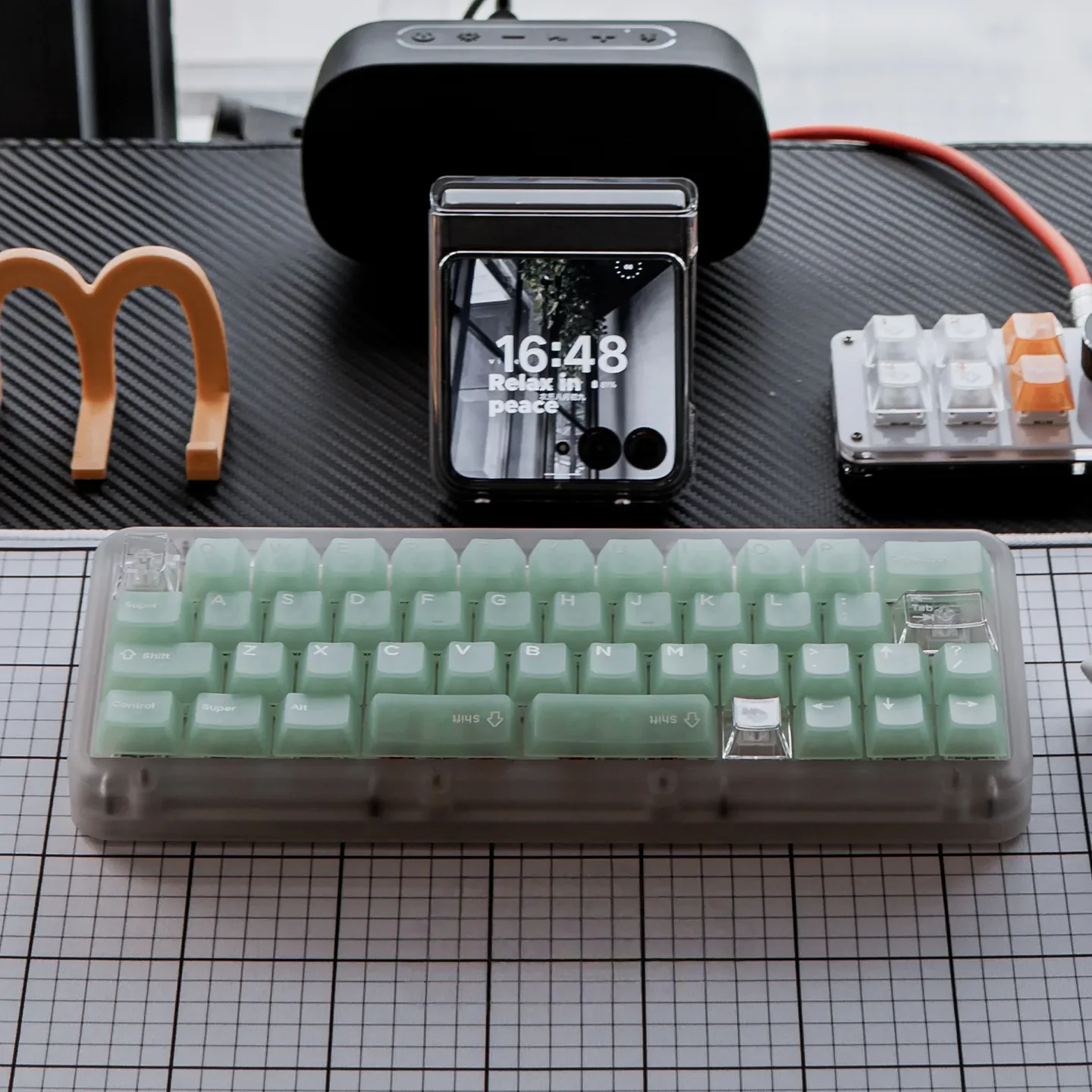 Elevate your workspace with these refreshing frosted emerald green PC keycaps set, designed to bring serene elegance and a natural glow to your custom keyboard.