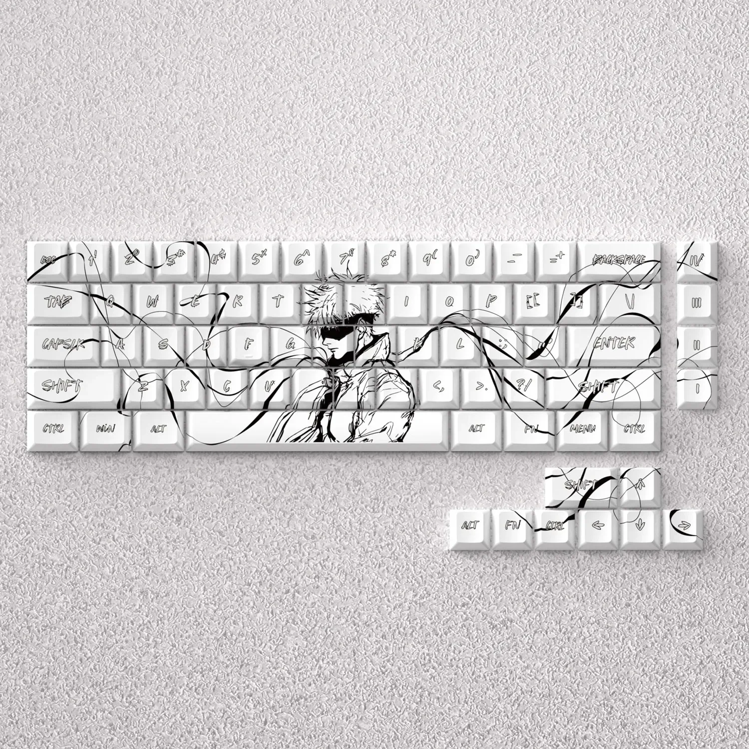 Unleash the limitless power and cool elegance of Gojo Satoru onto your desktop with this exclusive Jujutsu Kaisen: Satoru Gojo Anime Cherry Keycap Set. Designed for the ultimate anime fan, these Gojo Satoru Keycaps are more than just an upgrade. But they’re a statement of your passion and personalization. Each durable PBT Cherry keycap features crisp, vibrant legends inspired by the iconic Jujutsu Kaisen anime, offering a premium tactile experience that stands the test of time and countless keystrokes. This meticulously crafted Anime Keycaps Set transforms your standard board into a visually stunning masterpiece. Feel the fandom pride with every tap, whether youre dominating in games, coding, or simply expressing your unique style. Perfectly compatible with most 60 Percent, 65 Percent, and 68 Percent mechanical keyboard layouts, this set ensures a seamless fit and an immediate aesthetic boost. Elevate your setup, express your excitement, and bring Gojos power to your fingertips today!