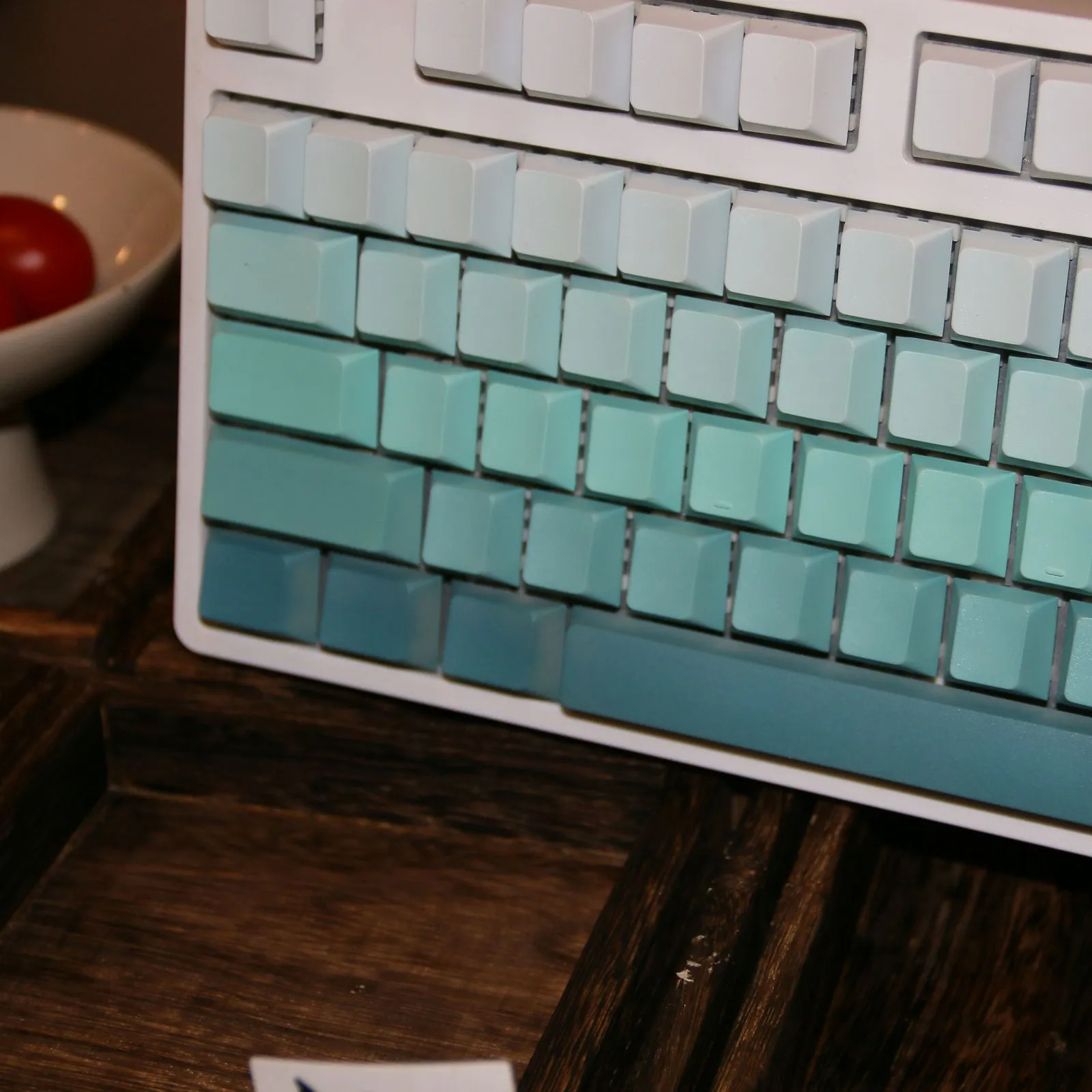 Transform your keyboard with the stunning Gradient Cyan OEM Keycap Set! Which is perfect for adding a splash of color. Keycap Set with Front Lettering or Keycap Set with Side Lettering are the two alternatives available. This collection creates a dramatic visual contrast with its bright cyan series and immaculate white keycaps. Your keyboard really stands out because to the gradient form design which also improves the aesthetic appeal. These keycaps’ superior feel and long-lasting quality. That are guaranteed by their construction from sturdy PBT material. Your typing experience is enhanced by the comfort and design of each key. Upgrade your setup right now with this striking keycap set!