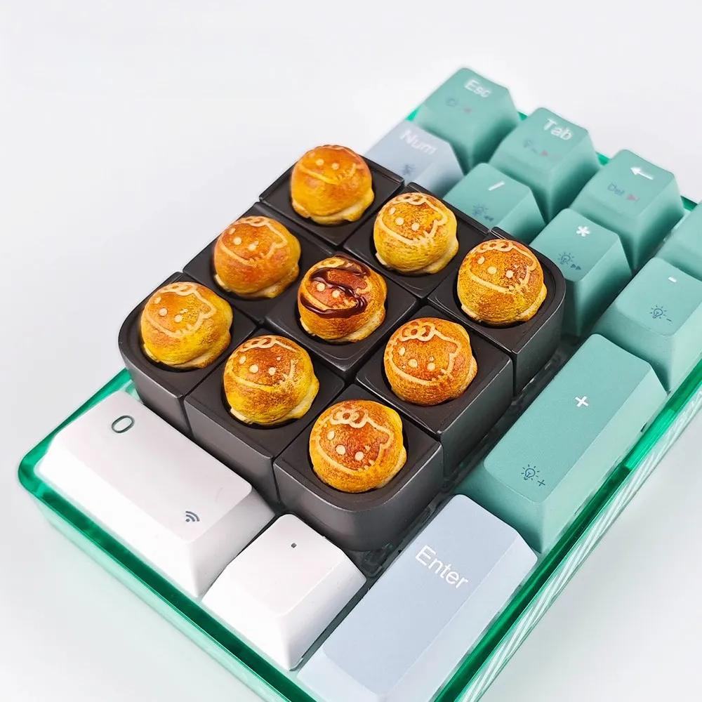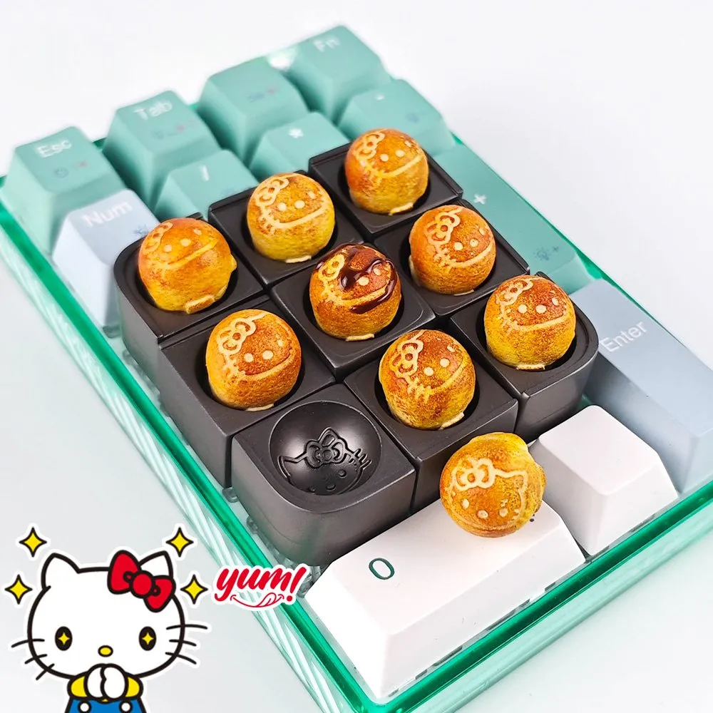 Acquire the Hello Kitty: Hello Kitty Takoyaki Keycaps to add a touch of sweetness to your setup! This cute collection uses a whimsical famous food concept to convey Hello Kitty’s charm. Atop a golden stuff with Hello Kitty is depicted on each 3D resin keycap. Which along with the adorable details of her trademark bow. The base adds a playful and realistic touch by looking like a frying dish. Carefully created from high-quality resin that each curve and texture adds to its durability and charm. This keycap set combines adorable aesthetics with ingenuity. That adding warmth, joy and enticing appeal to every keystroke. Which making it ideal for Hello Kitty fans and collectors with a culinary theme.