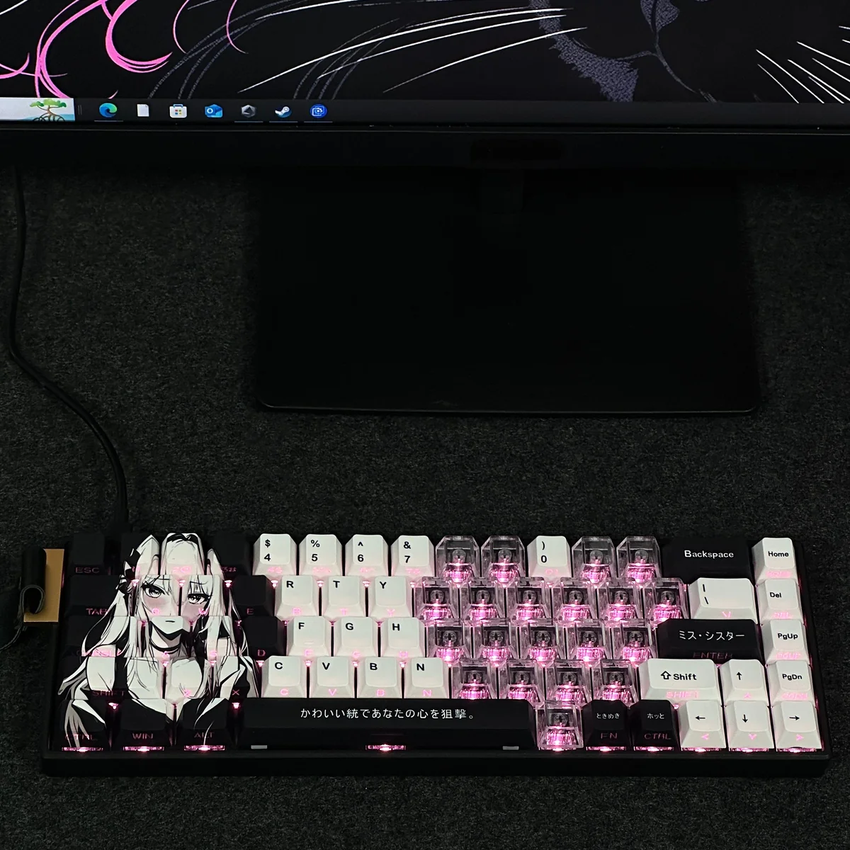 Dive into a world of playful nostalgia with our Hello Kitty: Premium Hello Kitty Cherry Keycap Set, designed to bring subtle charm and iconic style to your mechanical keyboard. Crafted from high-quality, durable PBT material, this Cute Keycap Set ensures a premium feel and exceptional longevity, resisting shine and wear even with extensive use. The intelligent side-lit design features crisp, side-printed legends that allow your RGB backlighting to shine through beautifully, creating a mesmerizing glow without cluttering the keycap tops. Perfect for Mechanical Keyboard Customization, these Side-Printed PBT Keycaps are compatible with 60 Percent Keycaps layouts and other popular sizes including 60, 63, 64, 65, and 68-key keyboards. Elevate your setup with a touch of beloved Hello Kitty magic and enjoy a unique typing experience that’s as charming as it is robust.