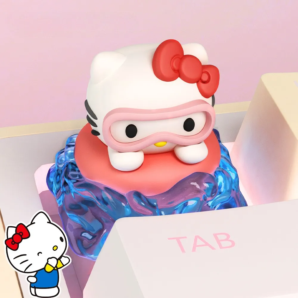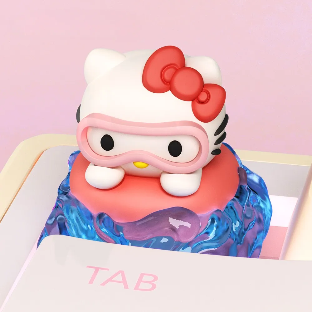 Make a splash of charm with the Hello Kitty: Swimming Hello Kitty Keycap! This charming souvenir depicts character designed with pink swimming ring and goggles. With her trademark red ribbon during a happy summer moment. The aquatic concept gains depth and vitality from the foundation design. Which exquisite resemblance to shimmering blue water. A beautiful blend of realism and cuteness is produced by painstakingly crafting. That each curve and feature in 3D from fine resin. This keycap is the ideal combination of fun, craftsmanship and durability. Whether you are a fan of Hello Kitty or just enjoy bright and lively graphics. With this keycap adds individuality and sunlight to every keystroke.