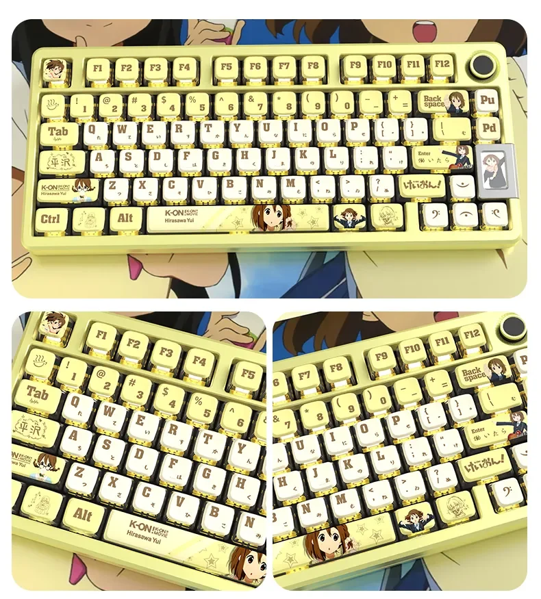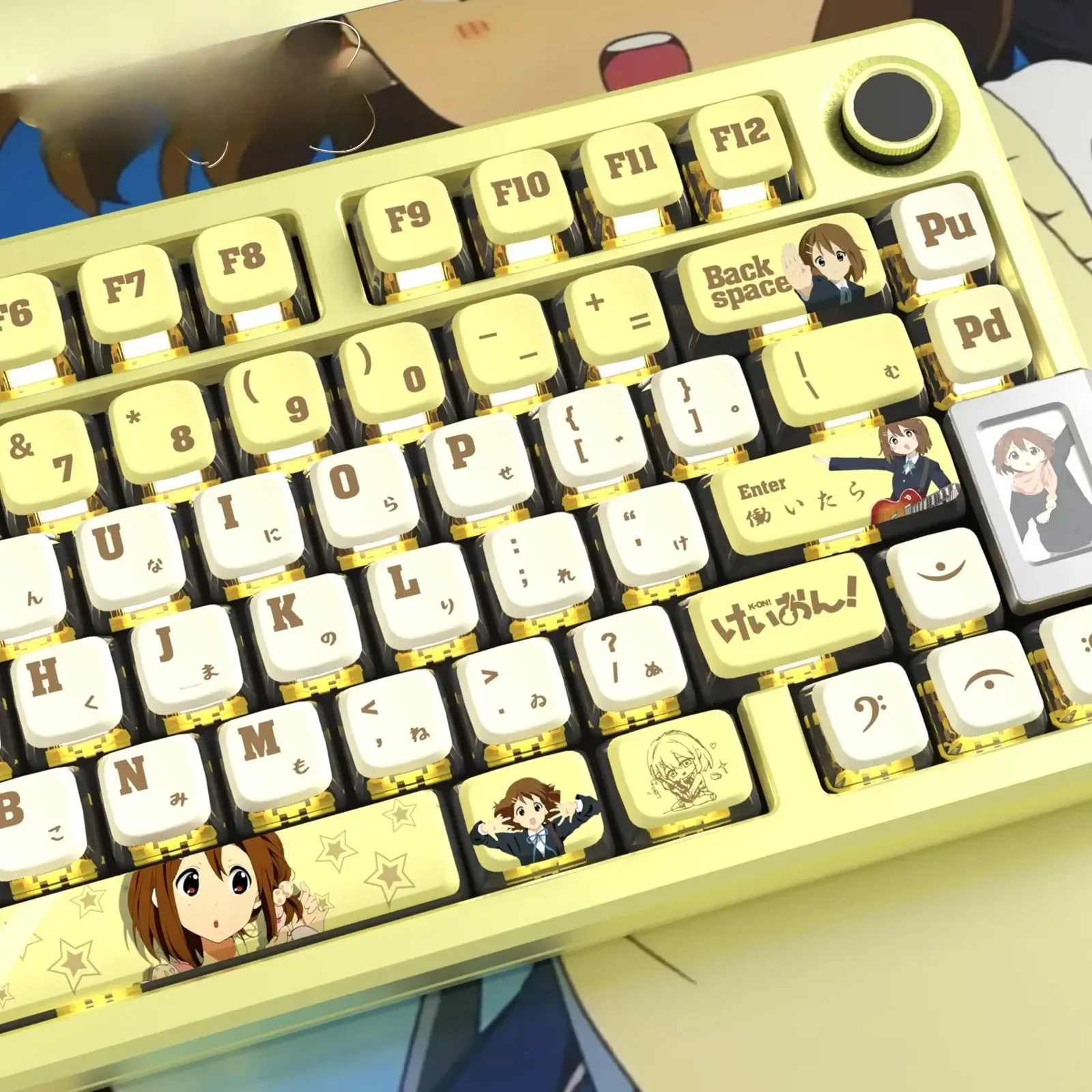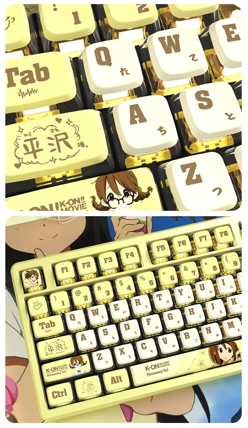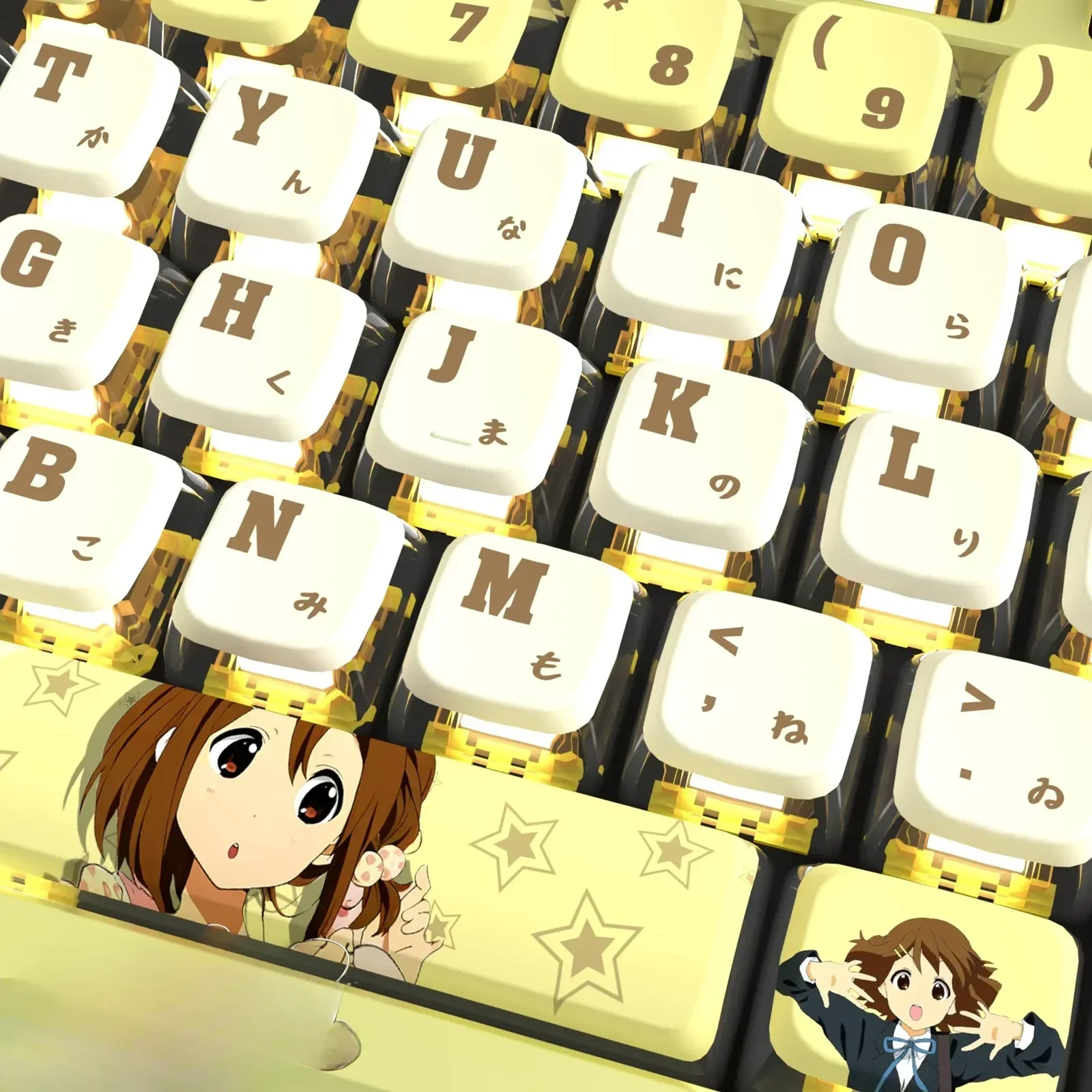 Unleash your inner music enthusiast and elevate your keyboard with the enchanting K-On!: Yui Hirasawa OEM Keycap Set! Celebrate your K-On! passion with this vibrant anime character art, transforming your mechanical keyboard into a stage for your favorite tunes. These iconic K-On! Keycaps boast a truly dazzling feature: four-sided RGB translucency. Watch your desk glow with dynamic lighting effects, making every keystroke an exciting visual experience perfect for gaming or personal expression. Crafted from durable PBT material using advanced dye-sublimation, these Anime Pudding Keycaps ensure legends never fade, maintaining their playful charm. The comfortable OEM profile enhances your typing and gaming sessions. Whether you’re a devoted collector, a gamer, or simply love unique accessories, these RGB Translucent Keycaps are an absolute must-have. Bring the spirit of K-On! to your mechanical keyboard and let Hirasawa Yui brighten your custom desk setup!
