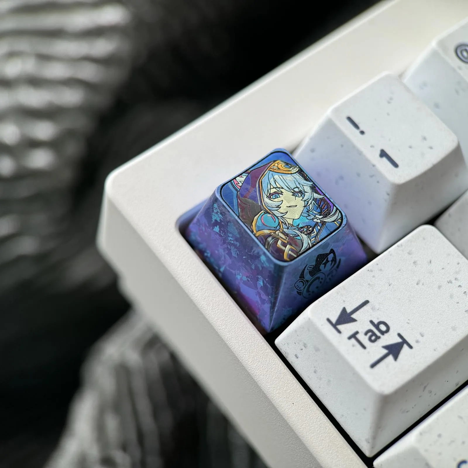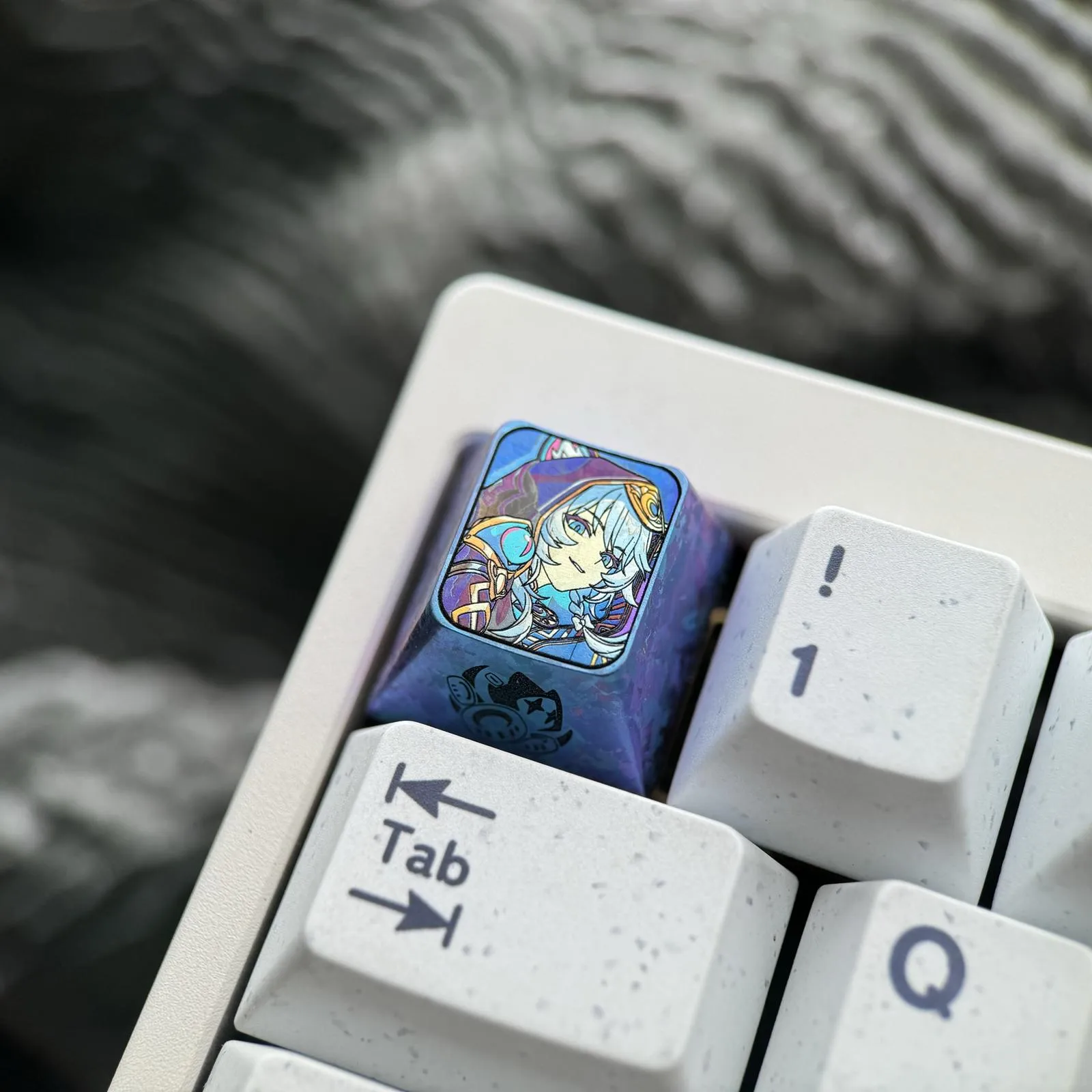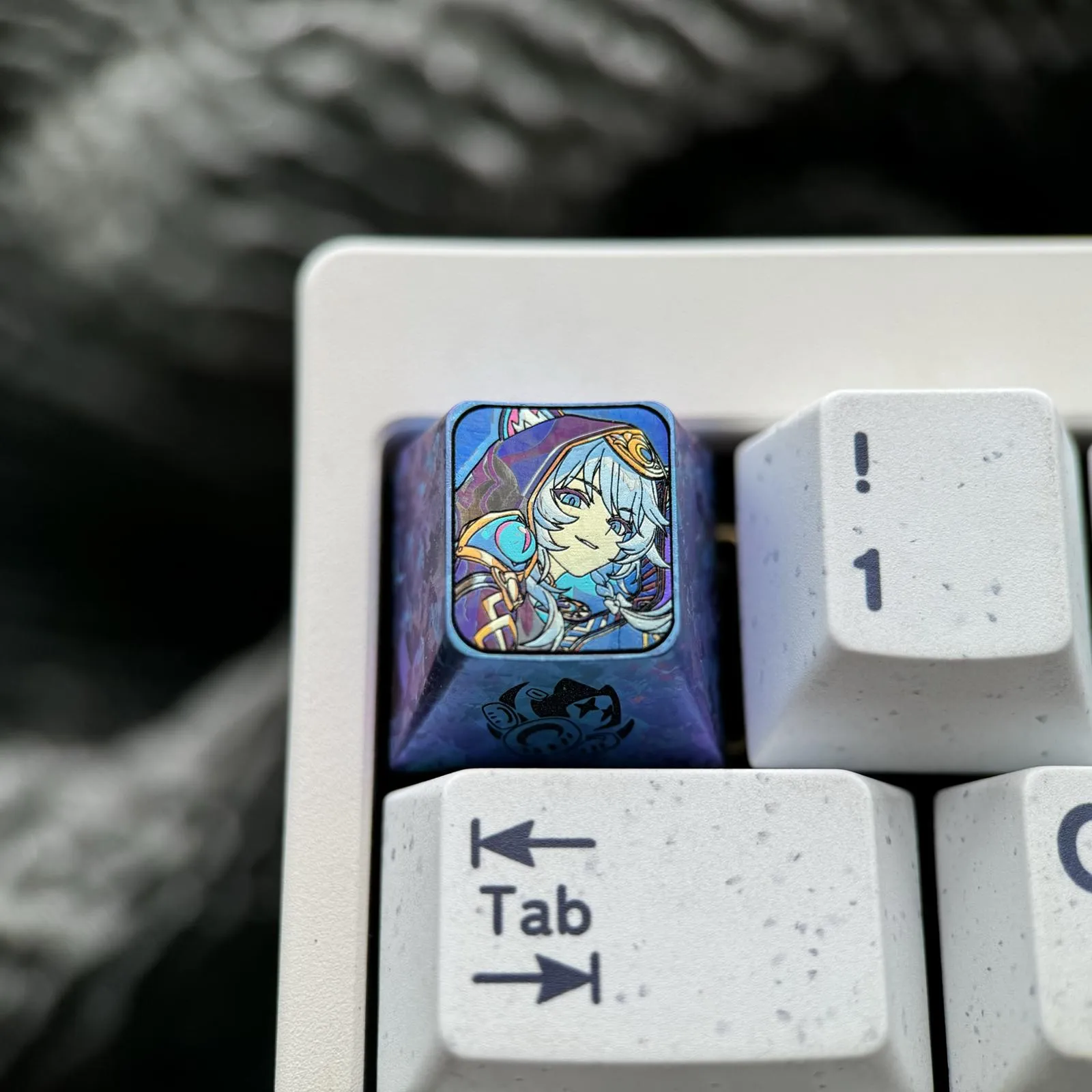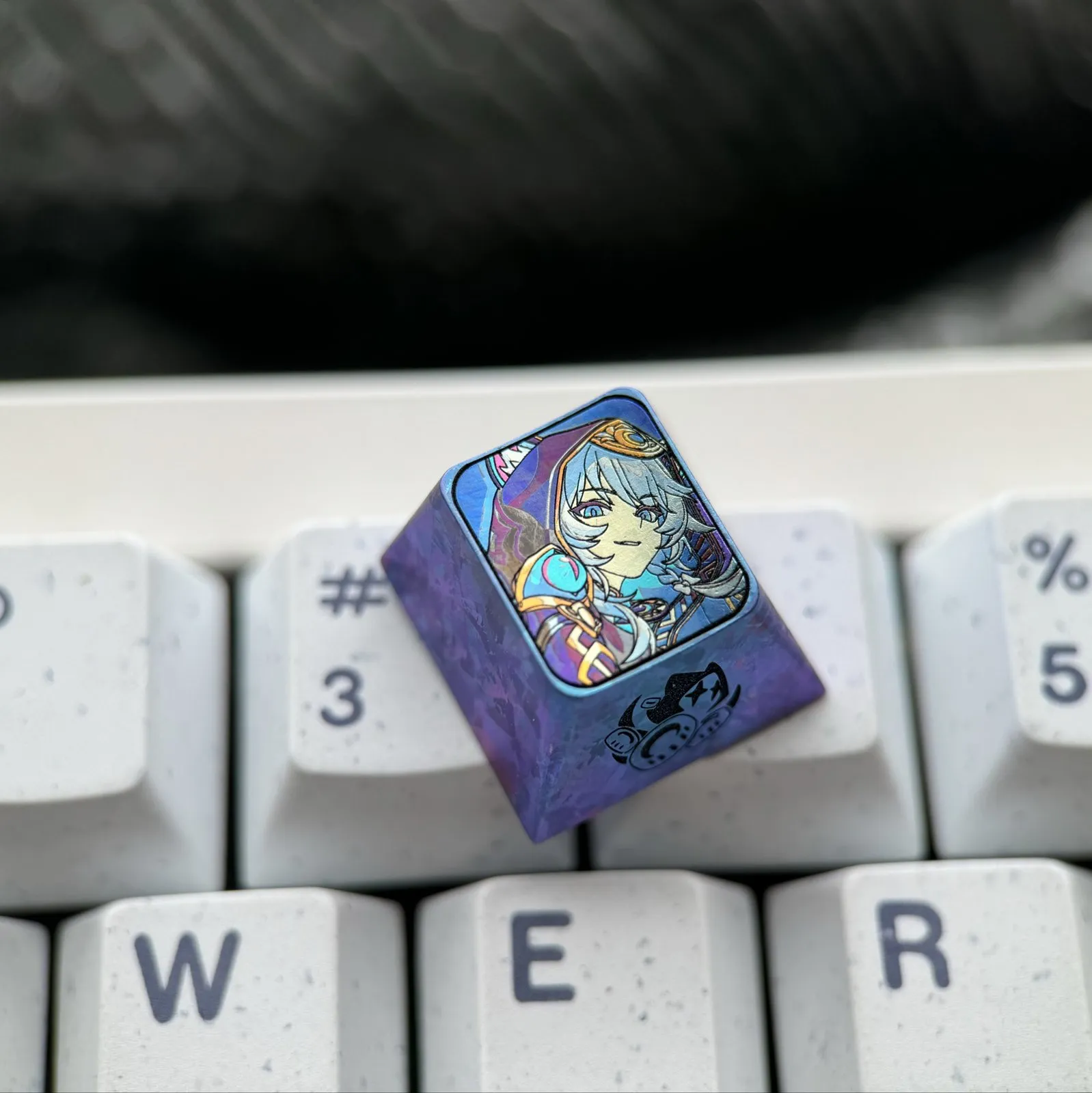 Utilize the fascinating Honkai: Star Rail: Cipher Keycap to transform your keyboard! This gorgeous keycap features an eye-catching character with blue hair and eyes in a unique design. The character’s cap, adorned with playful animal ears, adds to its allure. Its tactile and visual appeal is enhanced by the keycap base’s unique texture. Crafted in 3D from durable titanium alloy, the Cipher Keycap elevates any keyboard into a work of art, perfect for enthusiasts and collectors!