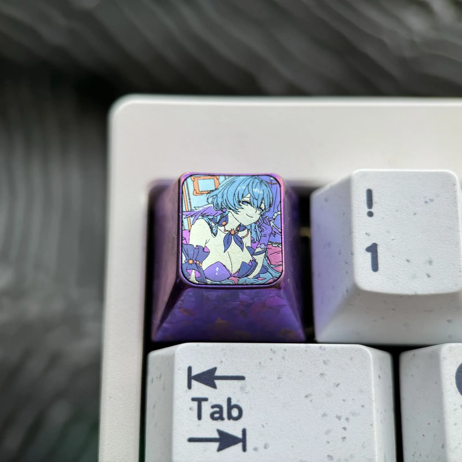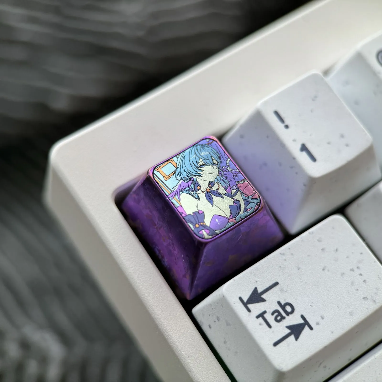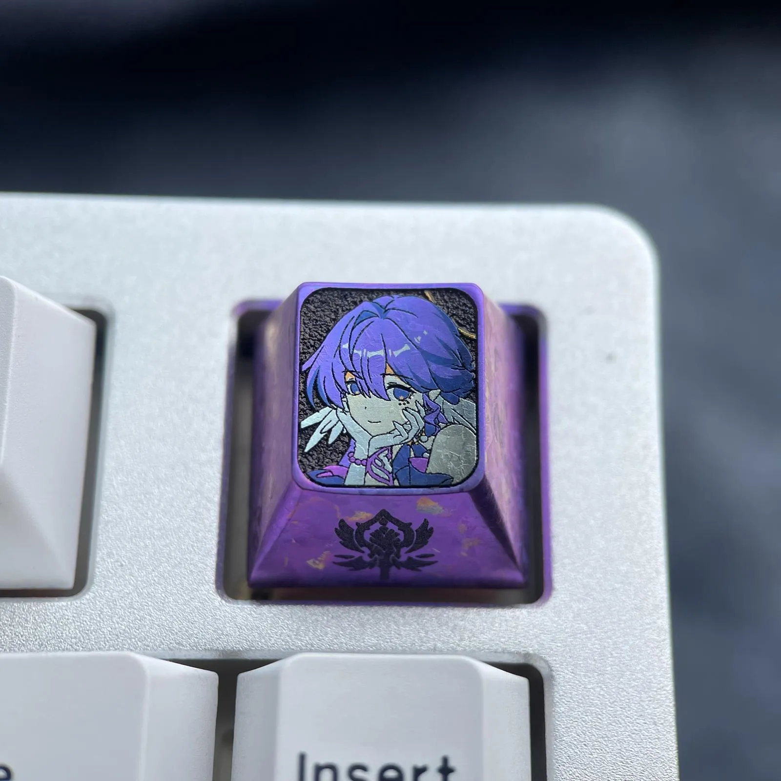 Modify your keyboard with the Robin Purple Keycaps from Honkai: Star Rail! Choose from three stunning variations: Version 1 shows Robin playfully with her jaw resting on her hands, while Version 2 captures her in a relaxing lying down position. Each keycap features a unique texture that enhances its vibrant purple design. The 3D design brings every detail to life, making each keycap a miniature work of art. Crafted from durable titanium alloy, these keycaps ensure longevity for daily use. Upgrade your keyboard today!