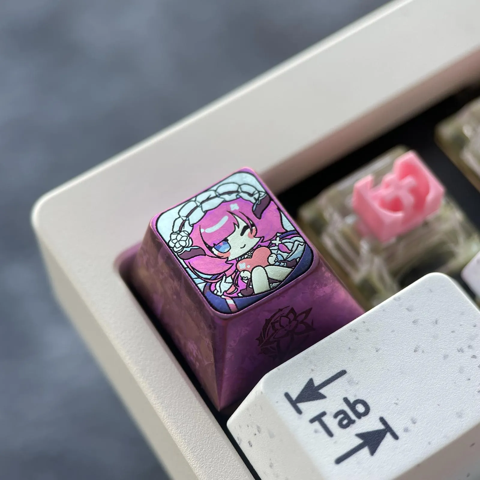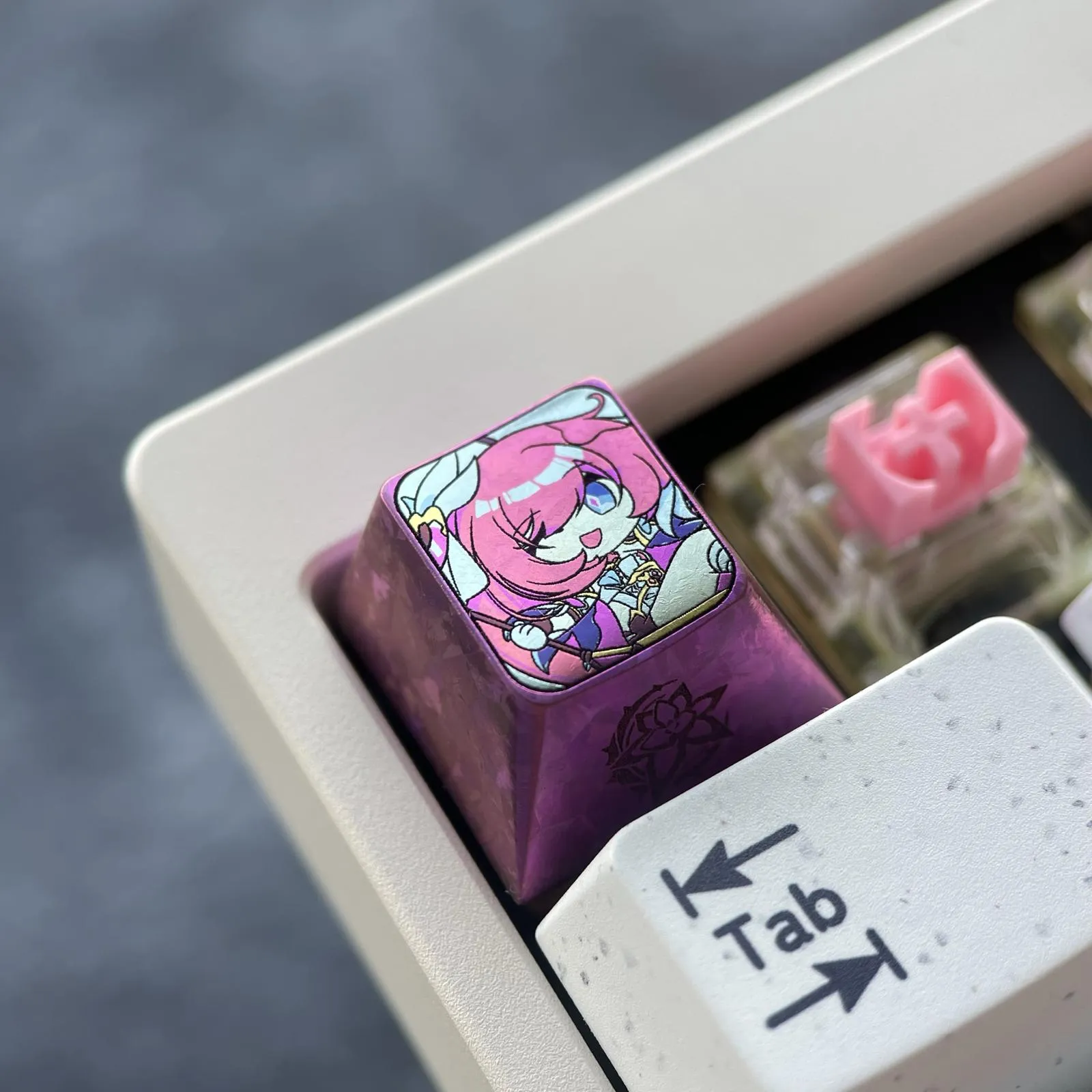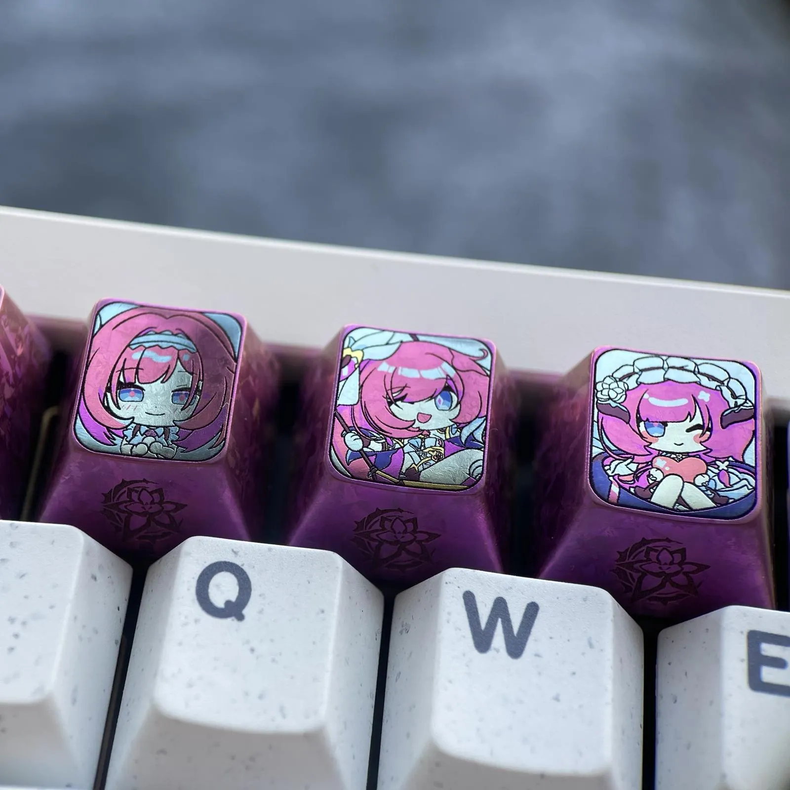 Immerse yourself in the gaming world with the adorable Honkai Impact 3rd: Elysia Cute Version Keycaps! These adorable keycaps which come in four themed variants. That have captivating character icon designs that really make character come to life. Every keycap features the adored heroine in miniature that complete with her trademark pink hair. Each keycap has a chic white hair accessory to add to its allure and make it even more alluring. These 3D keycaps are made of sturdy titanium alloy and are long-lasting in addition to looking great. They give a whimsical touch to any arrangement and are ideal for game aficionados. Upgrade your typing experience right now with these adorable Elysia keycaps!
