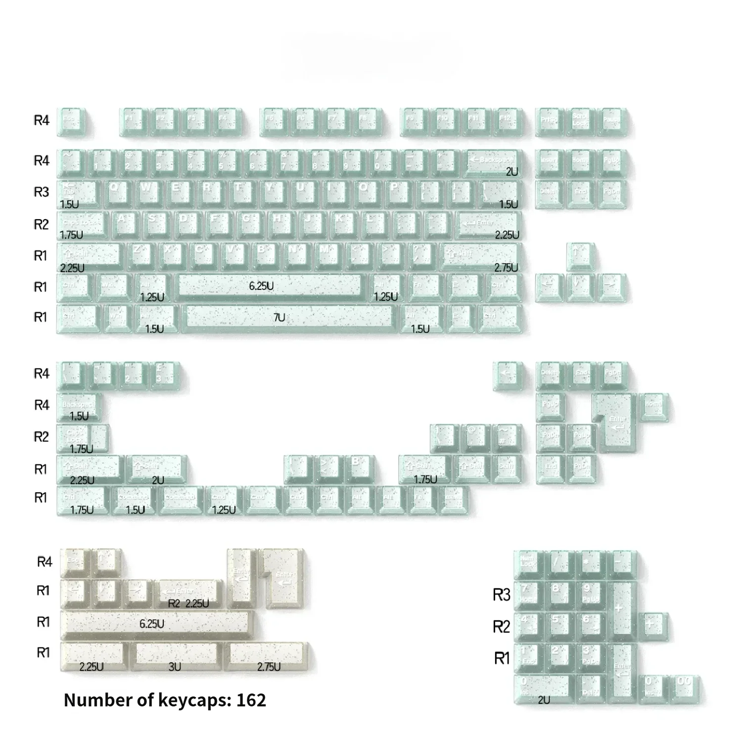 Premium PBT and PC blend, infused with shimmering glitter, reminiscent of delicate White Jade.