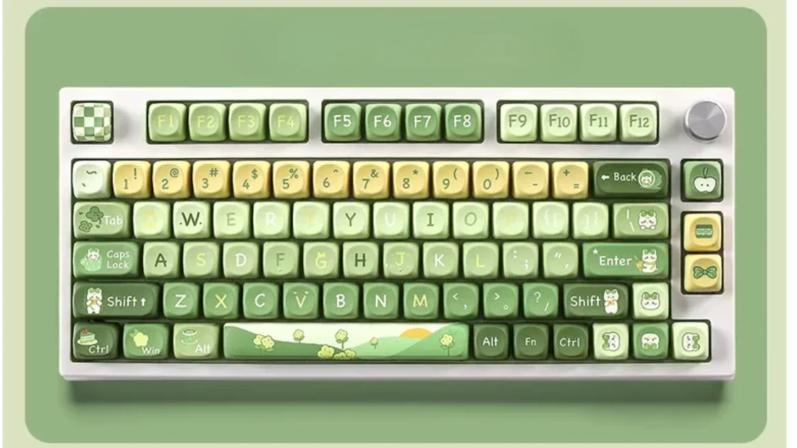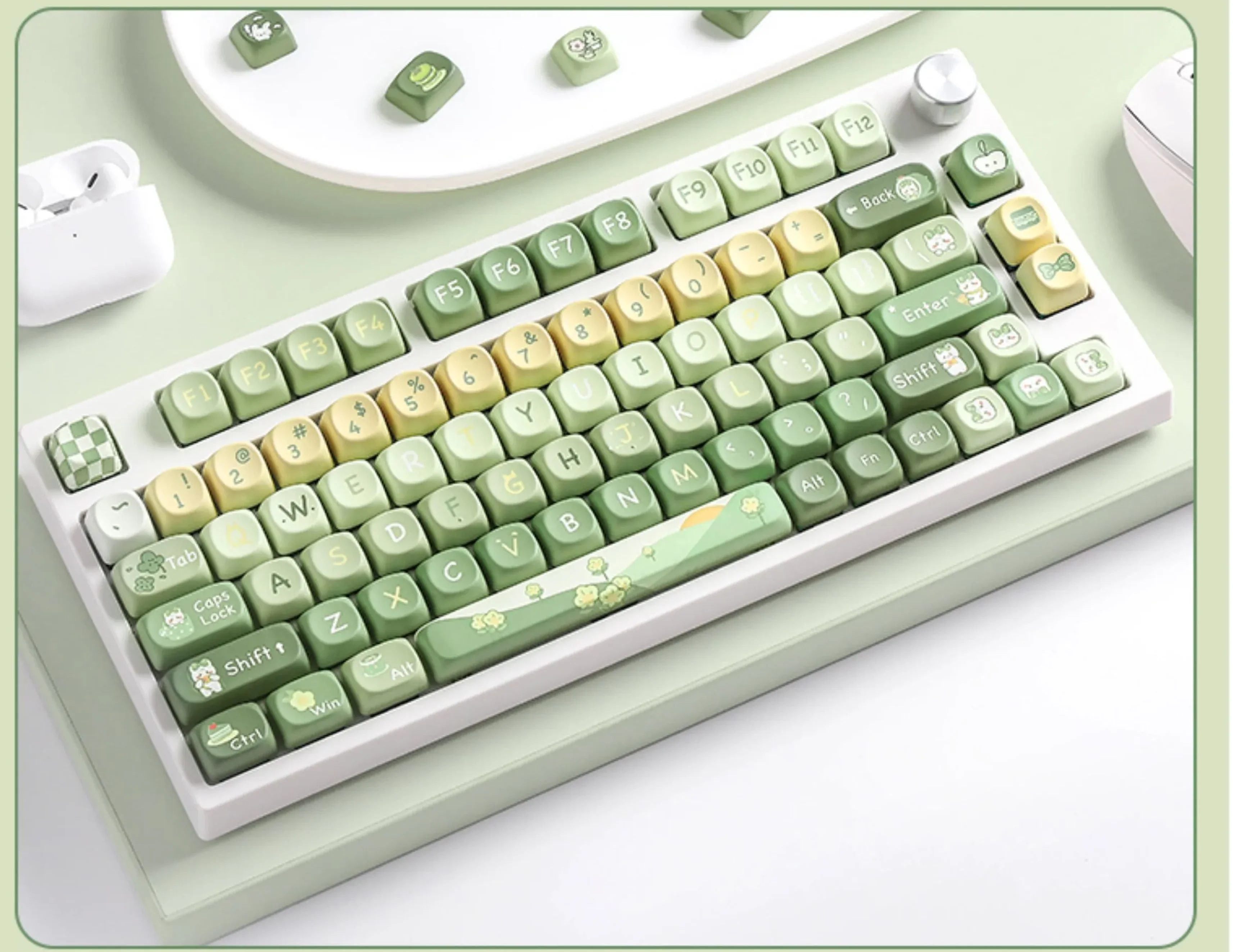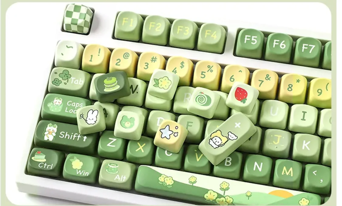 Immerse yourself in a world of whimsical charm with our enchanting Whimsical Matcha Rabbit SOA Keycaps Set. Designed to transform your mechanical keyboard into an adorable matcha wonderland, these premium double-shot PBT keycaps offer both delightful aesthetics and unparalleled typing comfort. Each keycap features meticulously crafted, cute rabbit motifs and soft pastel matcha green hues, evoking a cozy, inviting desk aesthetic perfect for creative personalization. Experience the satisfying feel of the unique SOA Profile, engineered for ergonomic comfort and a distinctive typing experience. Beyond their captivating design, these kawaii keycaps boast exceptional durability thanks to their double-shot PBT construction, ensuring legends remain crisp and colors vibrant for years to come. Elevate your setup with these whimsical Matcha Rabbit Keycap Set, a delightful blend of artistry and functionality that sparks joy with every keystroke. It’s more than just a keycap set; it’s an invitation to a playful, imaginative typing journey.
