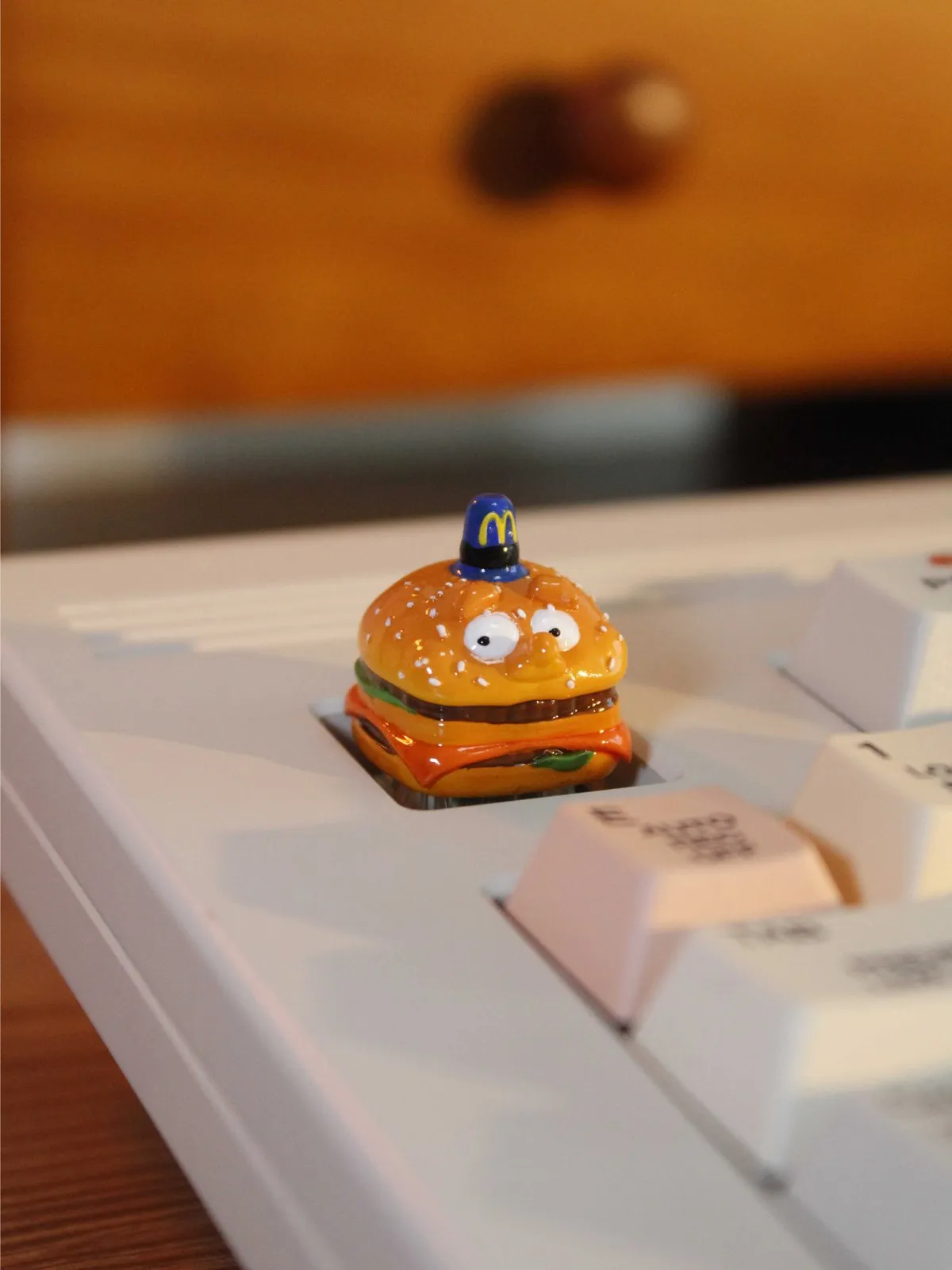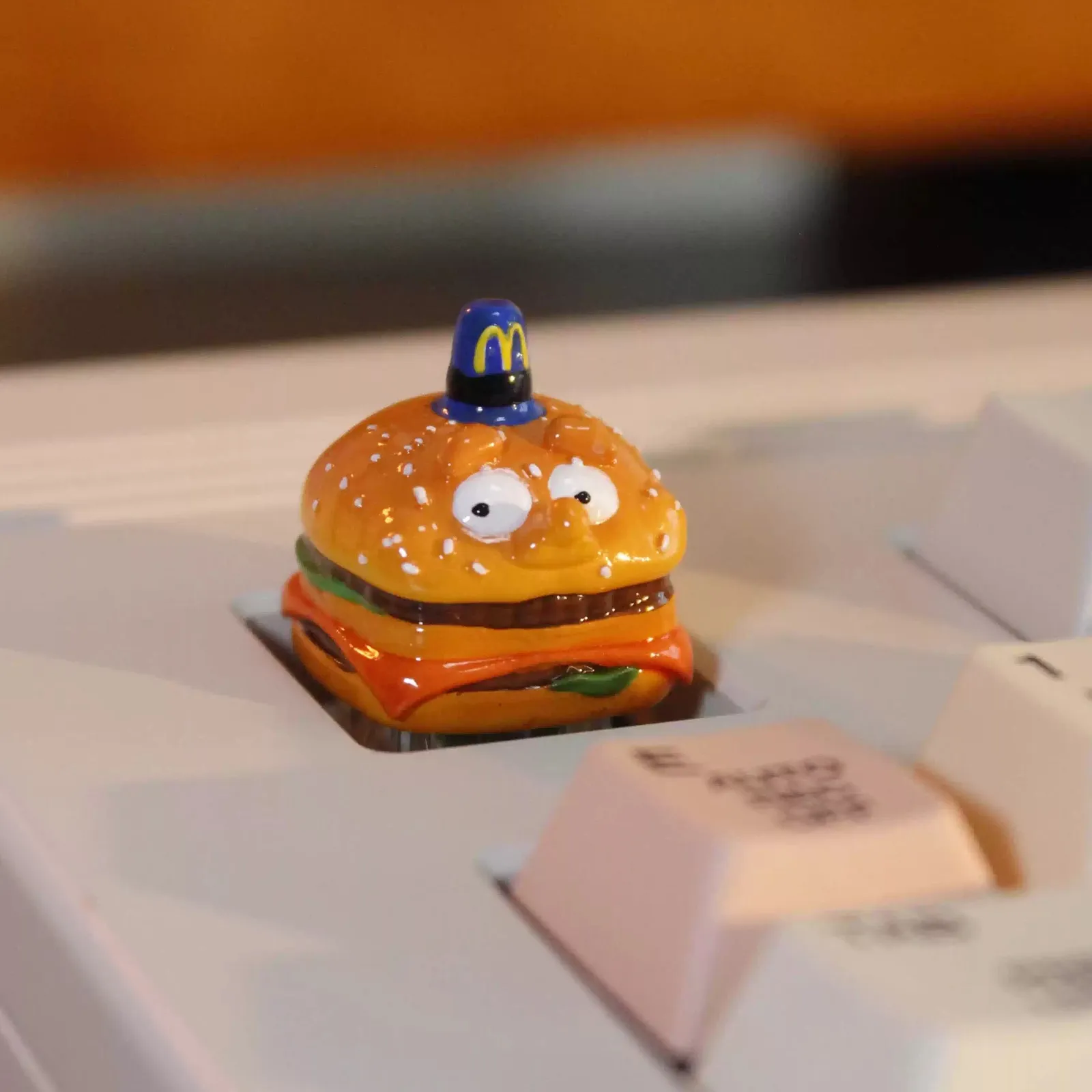 Presenting the entertaining and distinctive McDonald’s Big Mac Sheriff Keycap! Which can be used on any keyboard. This amusing keycap has a cute burger design with animated eyes that make it come to life. A beautiful blue cap with the famous McDonald’s “M” logo displayed prominently. That is to adds a nostalgic touch to the top. This 3D keycap which features a fun sheriff theme and is made from premium resin. Perfectly captures the essence of the iconic Big Mac. It is more than just a keycap that it is an artistic way to show off your passion for fun design and fast food. Upgrade your keyboarding experience with this striking add-on that is sure to turn heads!