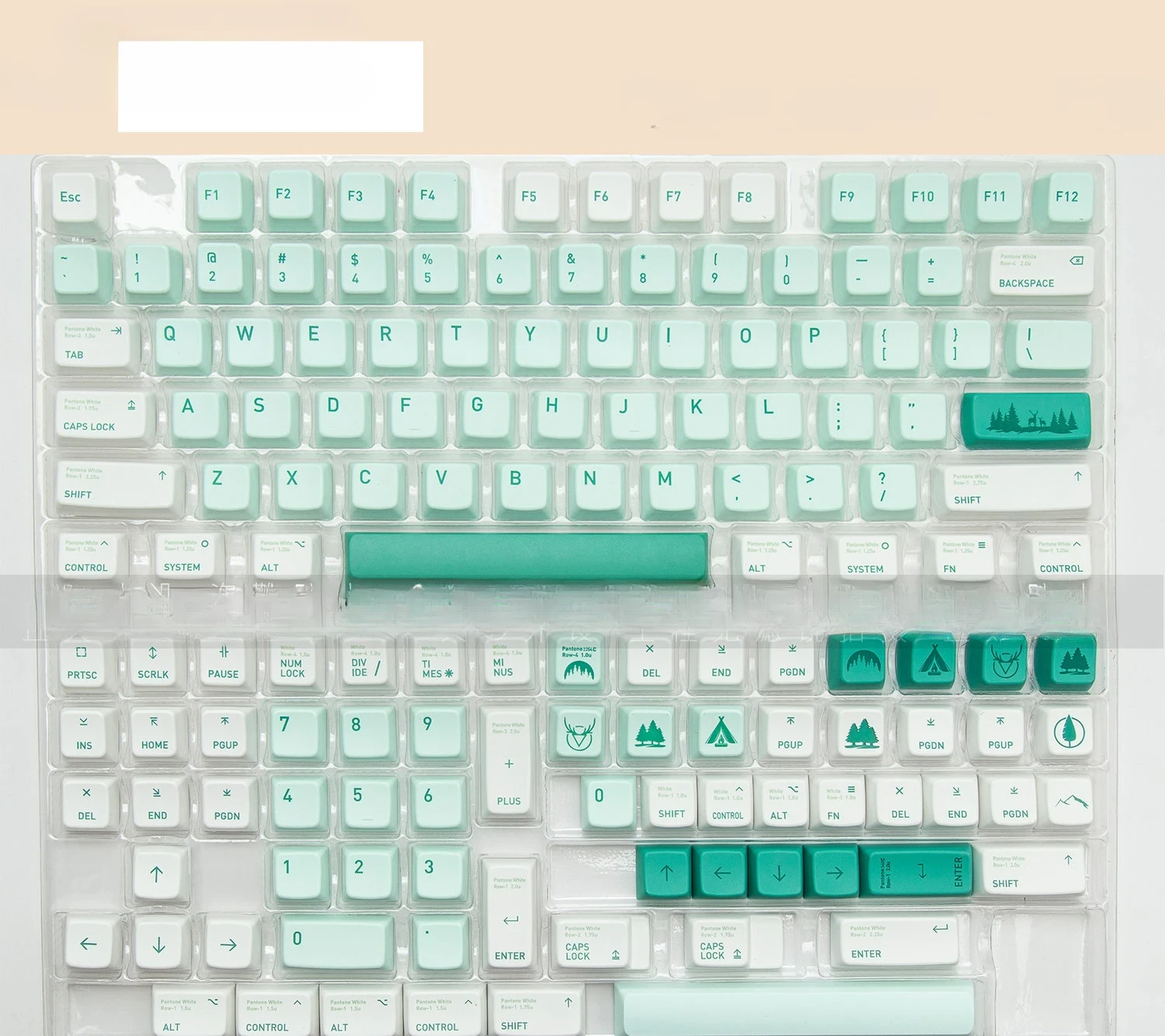 Enter the forest with the enchanting Misty Forest MDA Keycap Set! This set’s serene mint green base is exquisitely paired with green and white keycaps that reflect the spirit of the outdoors. Some keycaps, such the “Pg Dn,” have a distinctive woodland design that adds to the aesthetic, while the “ESC” key features a cute deer emblem that adds a humorous touch. This MDA set is made from excellent PBT material, which guarantees longevity and a luxurious feel beneath your fingers. The Misty Forest Keycap Set is a charming addition to any keyboard layout and is ideal for anyone who enjoys the beauty of the outdoors.