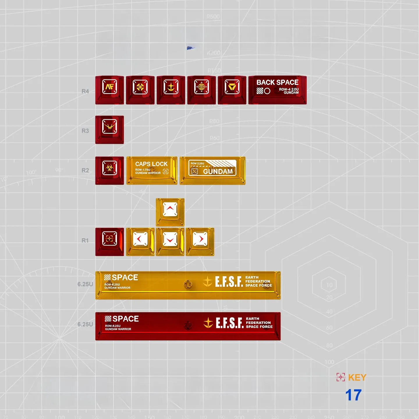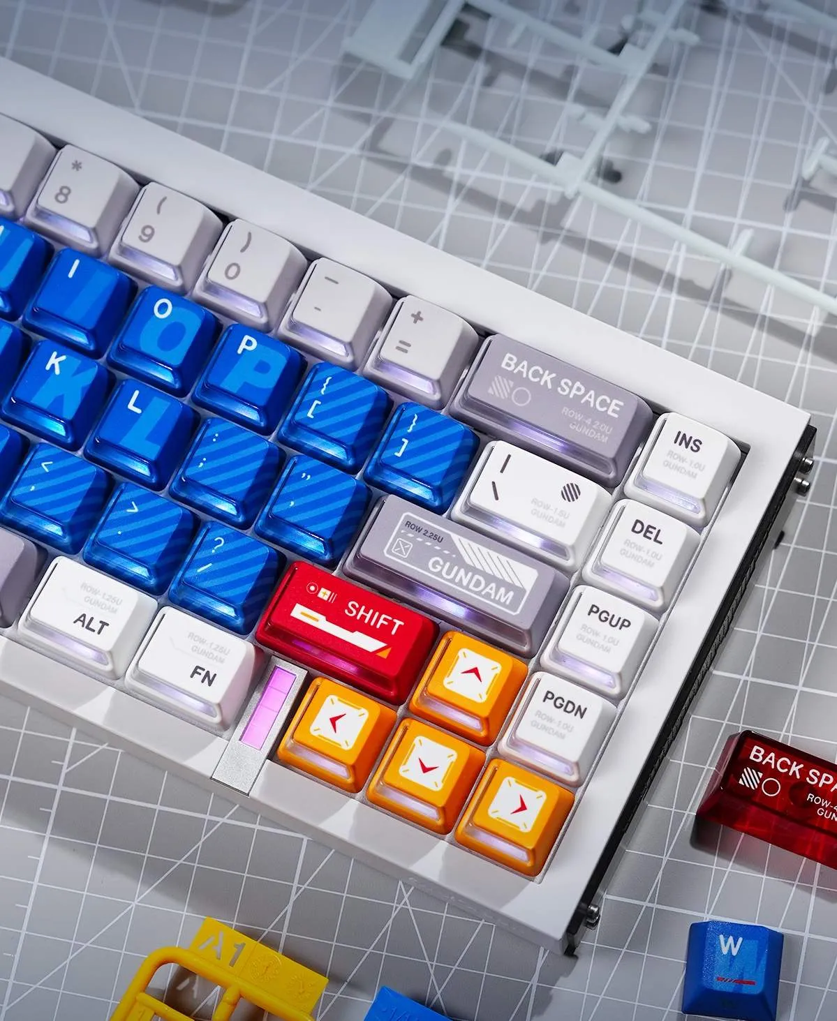Elevate your keyboard with the Mobile Suit Gundam: Victory 2 Gundam Keycap Set! Cherry Keycap Set, SA Keycap Set, PC Supplement Keycap Set or With PC Supplement Keycap Set are the five alternatives available. Grey, white, red and orange keycaps with a bright blue base give them a colorful appearance. Clear white lettering makes each keycap simple to read. With pride the Enter key displays the word “GUNDAM.” While the Space key displays the initials “E.F.S.F.” This set which is made of sturdy PBT and PC materials. That is available in Cherry or SA profiles which guarantees a comfortable typing experience. Show off your passion for Gundam by updating your setup right now!