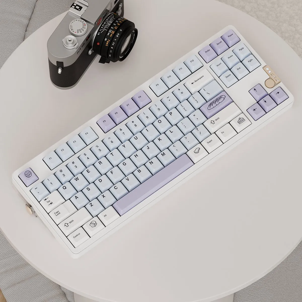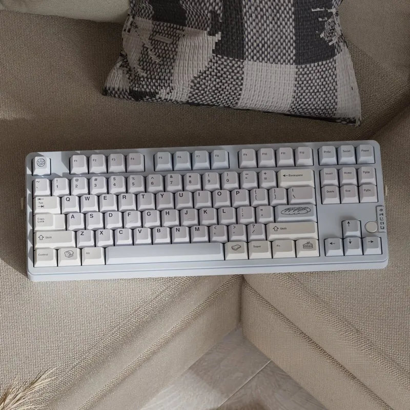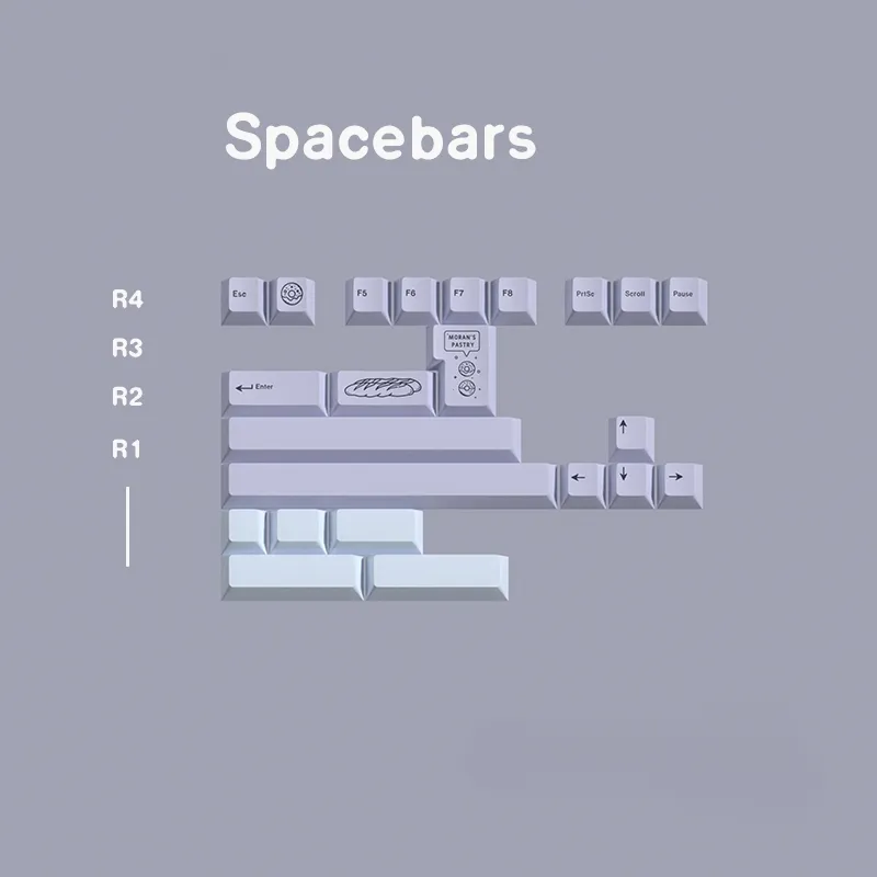 Treat yourself to a beautiful Moran’s Pastry Cherry Keycap Set while typing! Moran’s Pastry With Supplement Keycap Set and the Spacebars Supplement Keycap Set are the two options available in this collection. This combination which has a pretty light purple base. That looks great with bright blue and white keycaps that have fun black text on them. Each keycap adds a playful touch to your keyboard by showcasing adorable pastry images. Such as sweet pictures of bread, ice cream and more. This keycap set which is made of sturdy PBT in a traditional Cherry profile. That is ideal for both keyboard fans and pastry lovers. It will add sweetness to your everyday typing experiences!