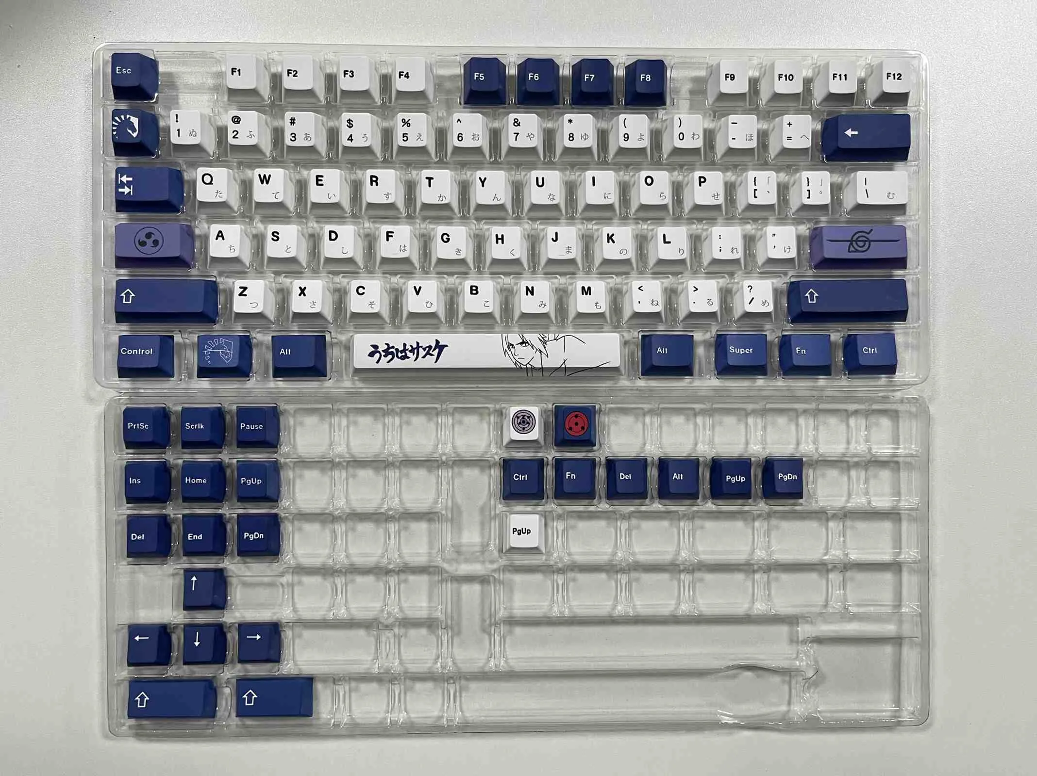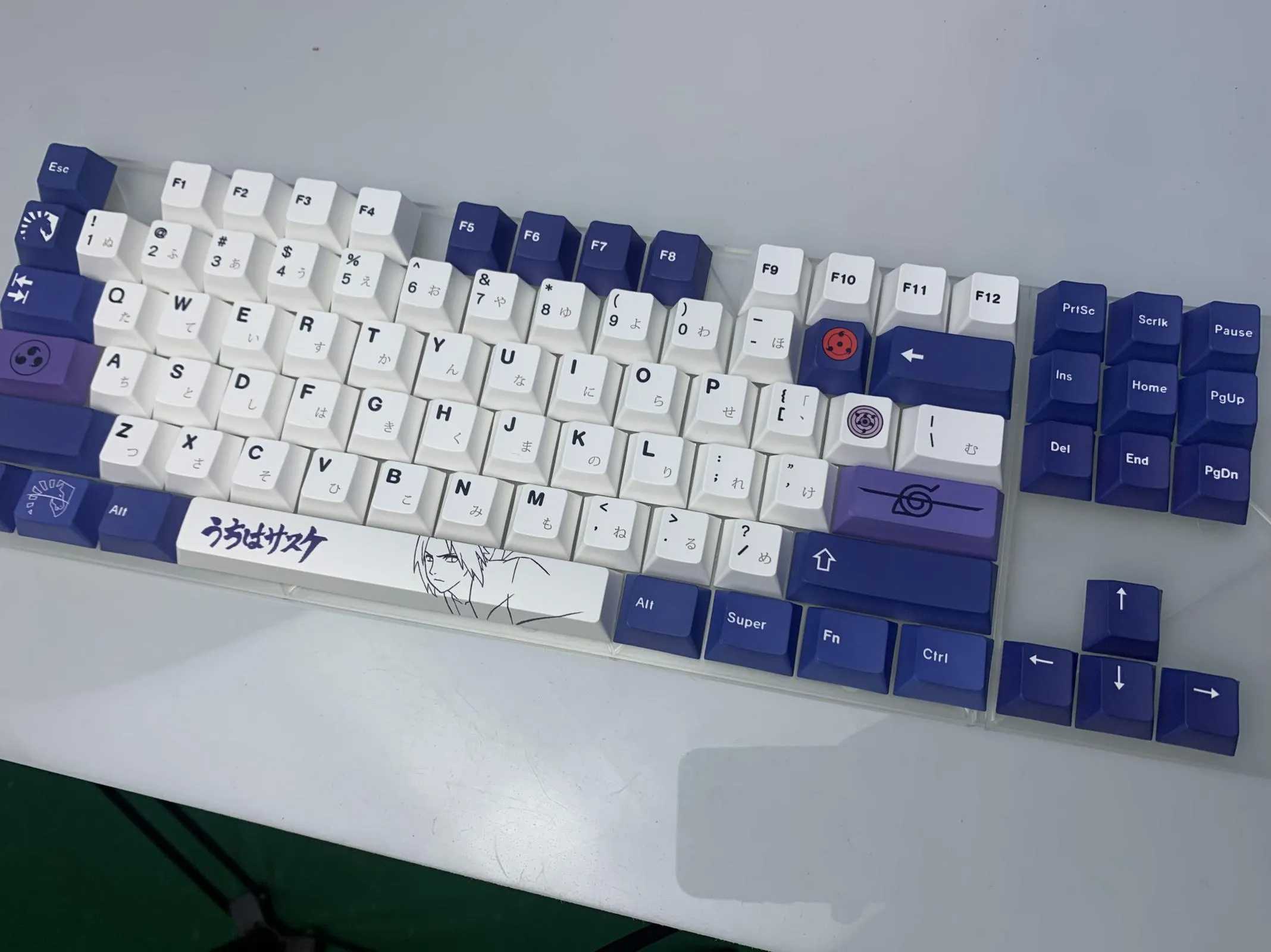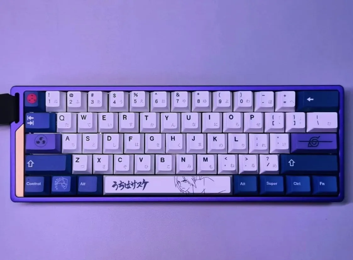 Utilize the Naruto: Sasuke Uchiha Cherry Keycap Set to enhance your typing experience! The striking blue and purple keycaps on a sleek white base. That provide an eye-catching appearance for this intriguing set. With each keyboard which the black and white writing guarantees flair and clarity. As you type, Sasuke comes to life thanks to the eye-catching character symbol displayed by the Space Key. Furthermore, the Enter key has the recognizable headband symbol. Which gives your keyboard a distinctive look. This keycap set promises long-lasting quality and comfort. Because it is made of sturdy PBT material. Its Cherry profile improves both appearance and usefulness. Making it an essential item for any fan of Naruto!