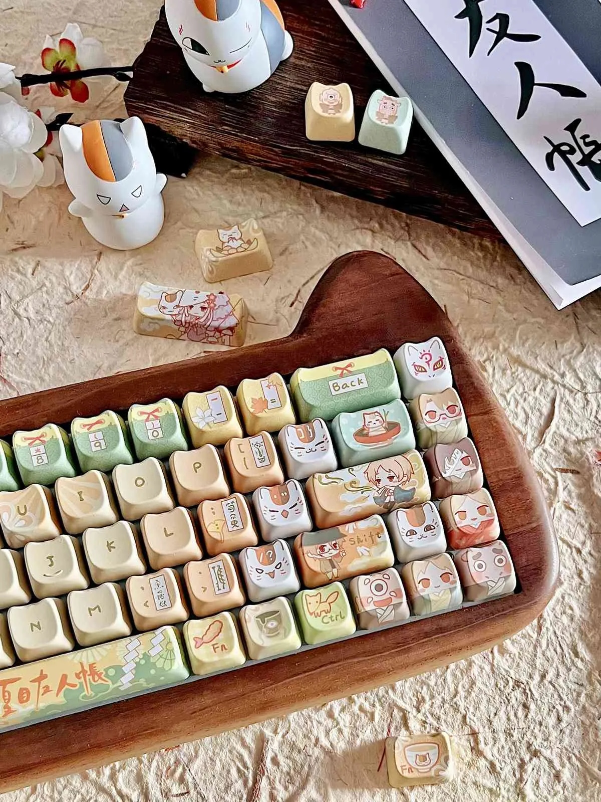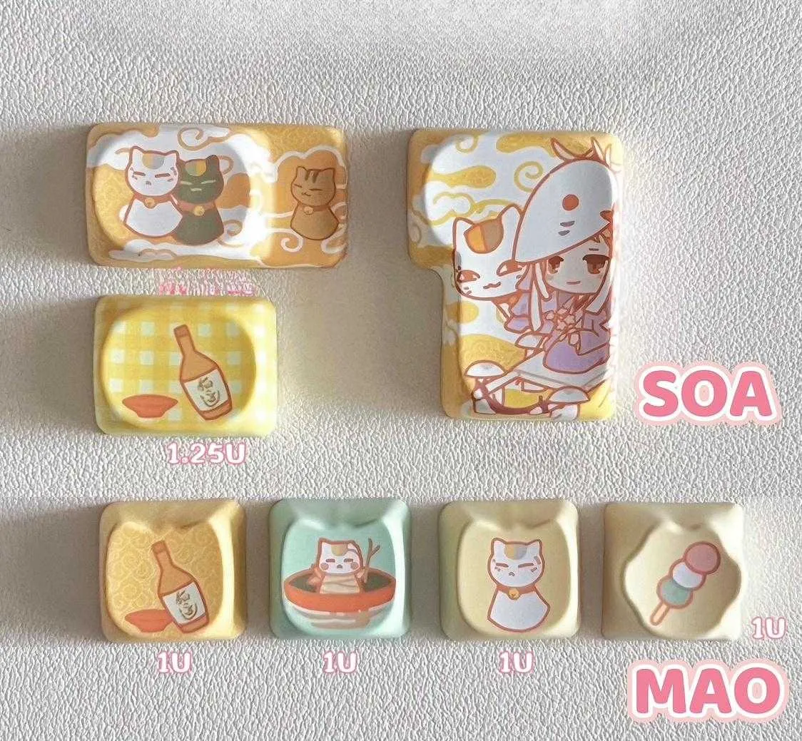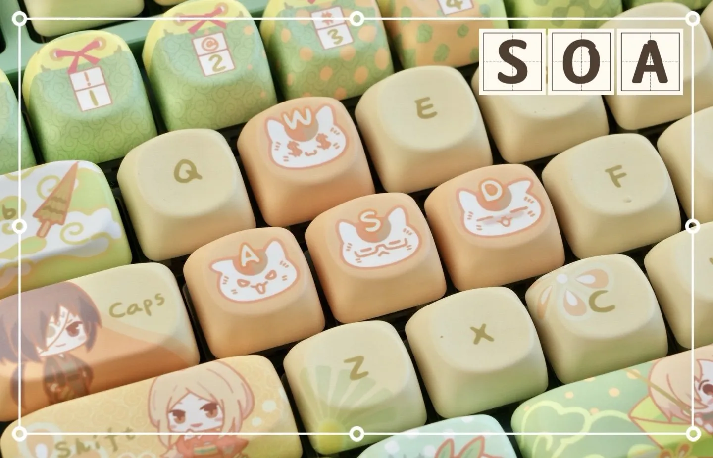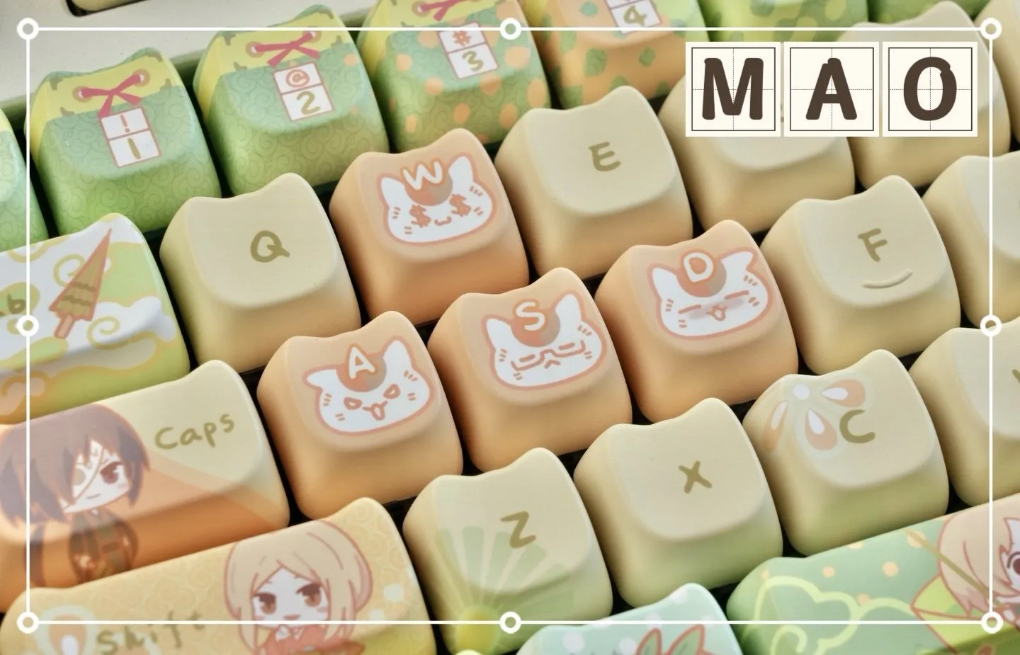 Celebrate your love for “Natsume’s Book of Friends” with the enchanting Character Series Keycap Set! The MAO Keycap Set and the SOA Keycap Set are two excellent possibilities. Bright orange and green keycaps adorn each set’s cheery yellow base. That giving it a vivid appearance. While other keycaps feature character icon designs such as the Shift Key and Caps Key. Which the distinctive brown lettering provides a delightful touch. These keycaps are made of sturdy PBT and are guaranteed to last and feel good. Fans wishing to add a whimsical touch to their keyboard will love this series. Which comes in MAO or SOA profiles!