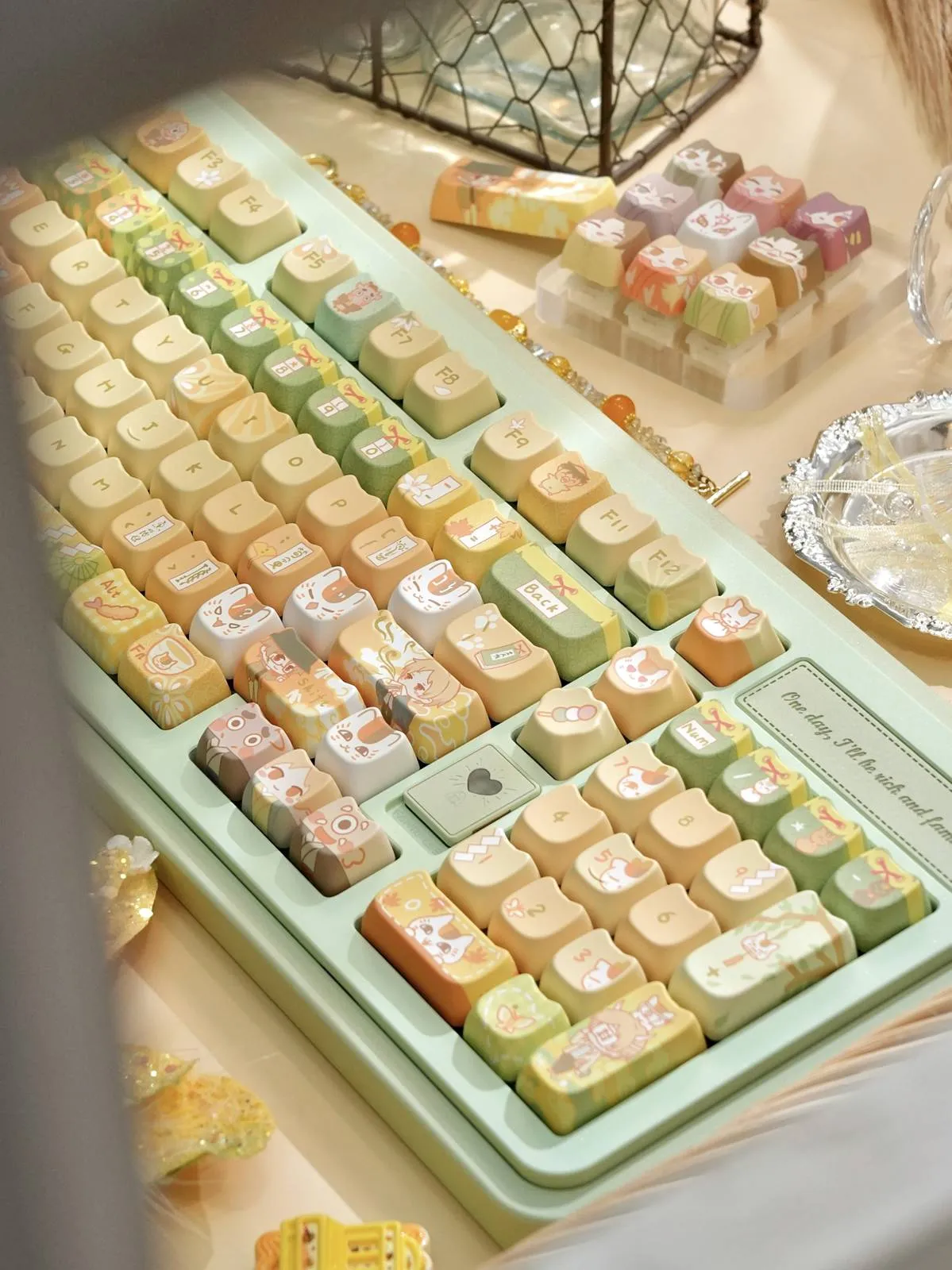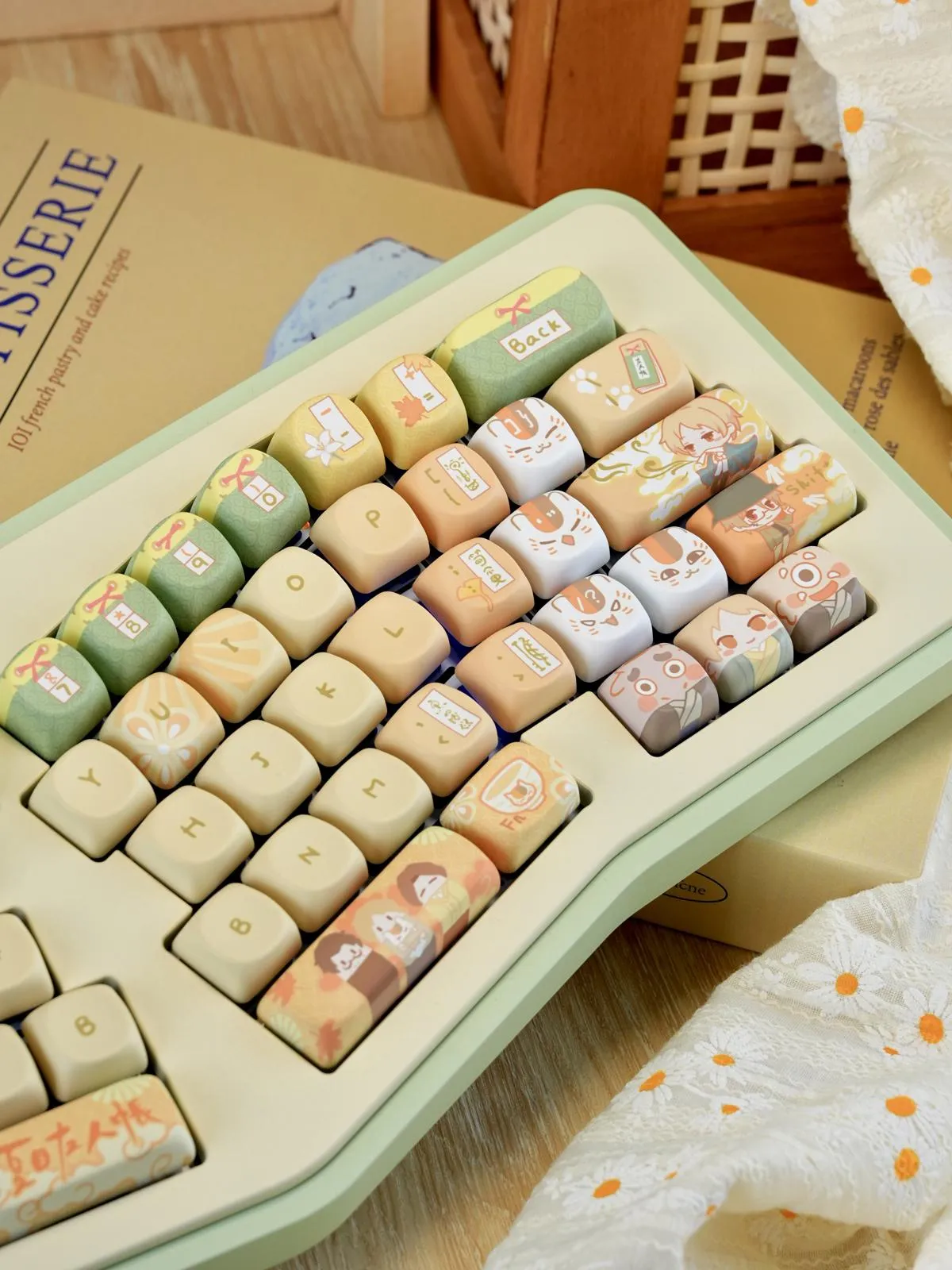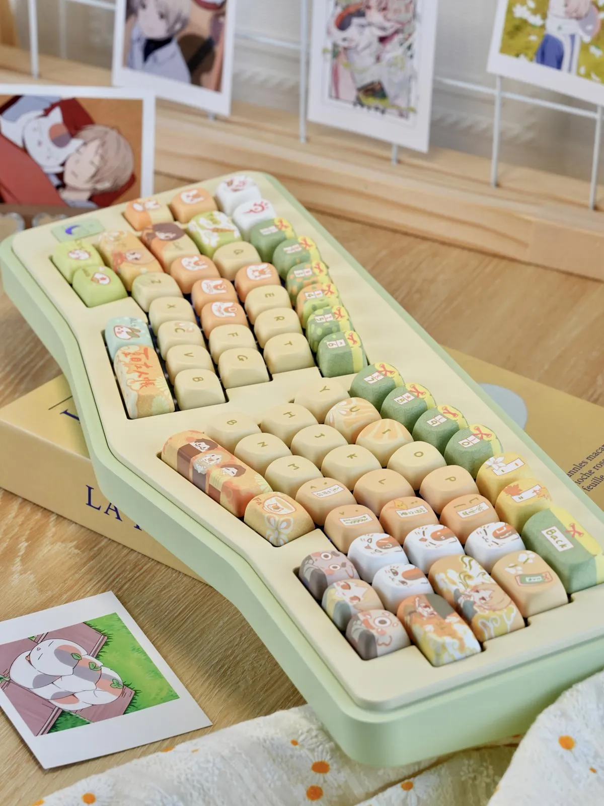 Celebrate your love for “Natsume’s Book of Friends” with the enchanting Character Series Keycap Set! The MAO Keycap Set and the SOA Keycap Set are two excellent possibilities. Bright orange and green keycaps adorn each set’s cheery yellow base. That giving it a vivid appearance. While other keycaps feature character icon designs such as the Shift Key and Caps Key. Which the distinctive brown lettering provides a delightful touch. These keycaps are made of sturdy PBT and are guaranteed to last and feel good. Fans wishing to add a whimsical touch to their keyboard will love this series. Which comes in MAO or SOA profiles!