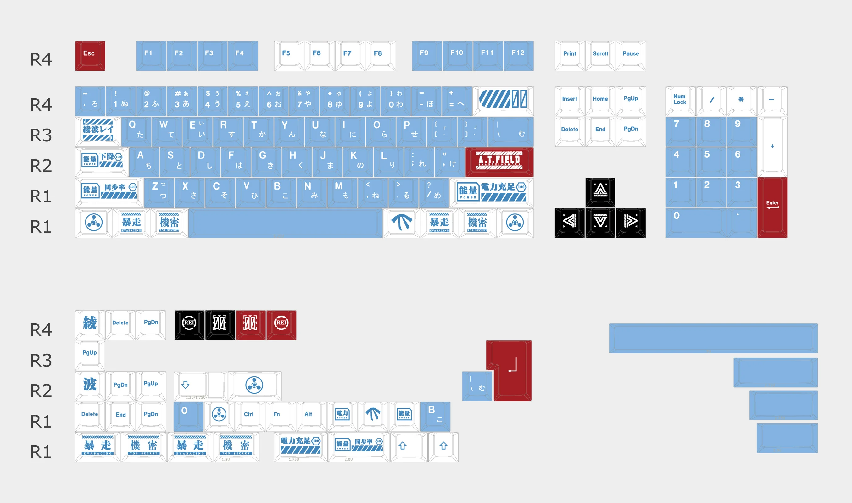 Fans of the renowned series will want to transform their keyboard with the Neon Genesis Evangelion: Lilith Blue Keycap Set. White and eye-catching red keycaps contrast with a light blue foundation in this set, giving it a visually dynamic appearance. There is something for everyone with the three options: a complete full keycap set, a bundle (2-in-1) with a full keycap set and supplement keycaps, or just the supplement keycaps. Interestingly, the “ENTER” key highlights the words “A.T. Field,” giving your arrangement a distinctive touch. These keycaps honor your passion for Neon Genesis Evangelion while ensuring long-lasting quality thanks to their sturdy PBT construction.