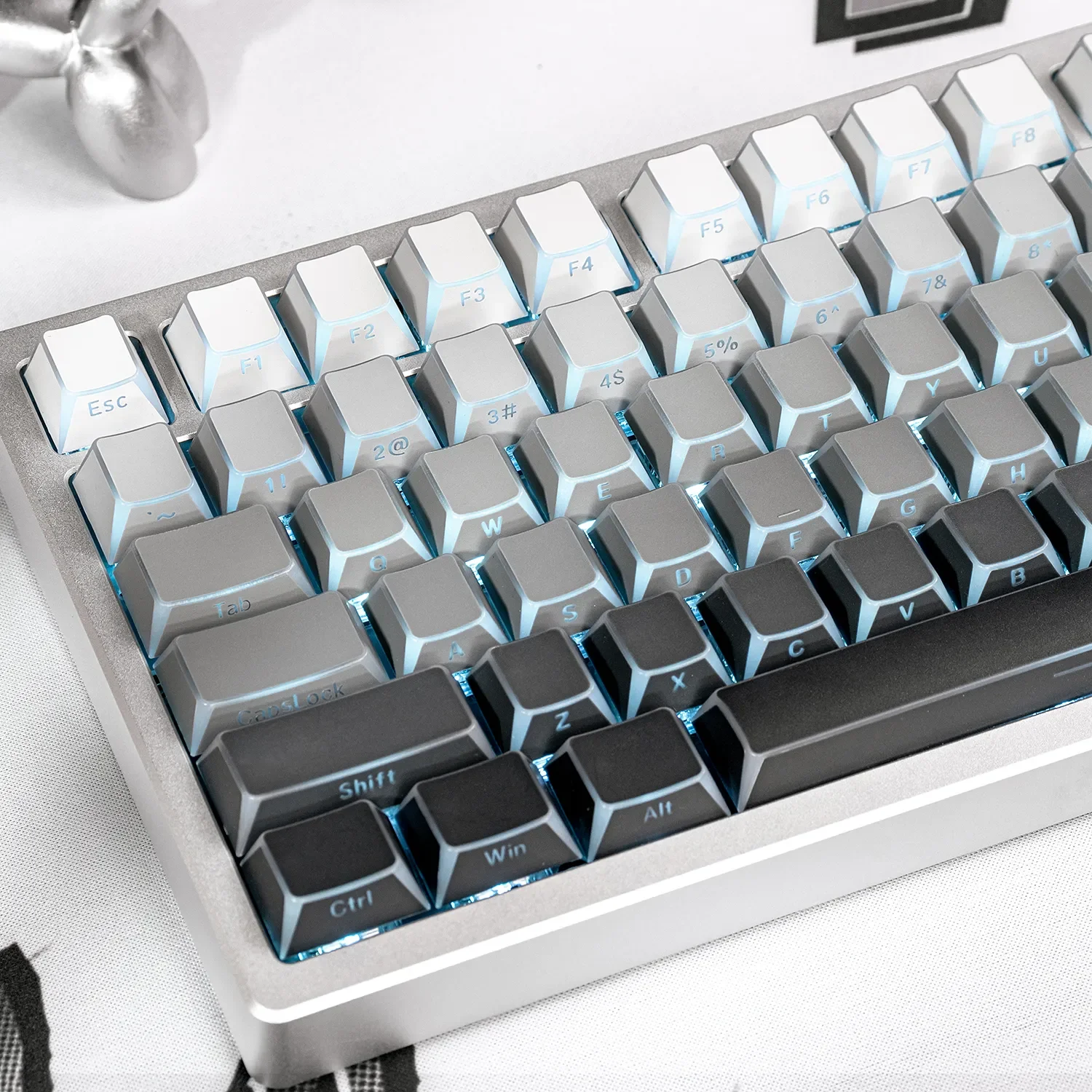Unleash the stark beauty of the polar light with the Polar Day Shadow Cherry Keycap Set. Each keycap is a masterpiece of angular geometry, capturing the dramatic interplay of light and shadow through its uniquely translucent design. Crafted from durable PBT material using a double-shot injection process, these custom mechanical keycaps promise exceptional longevity and a premium tactile feel. The innovative side-engraved legends remain crisp and clear, providing a clean, minimalist aesthetic on top while revealing their glow from the side, a perfect blend of form and function. Experience an elevated level of elegance and performance, transforming your keyboard into a centerpiece of creative expression. Designed in a comfortable Cherry profile PBT, this set ensures a superior typing experience, making every keystroke a statement. These translucent keycaps redefine custom keyboards, offering a distinctive visual and tactile journey.