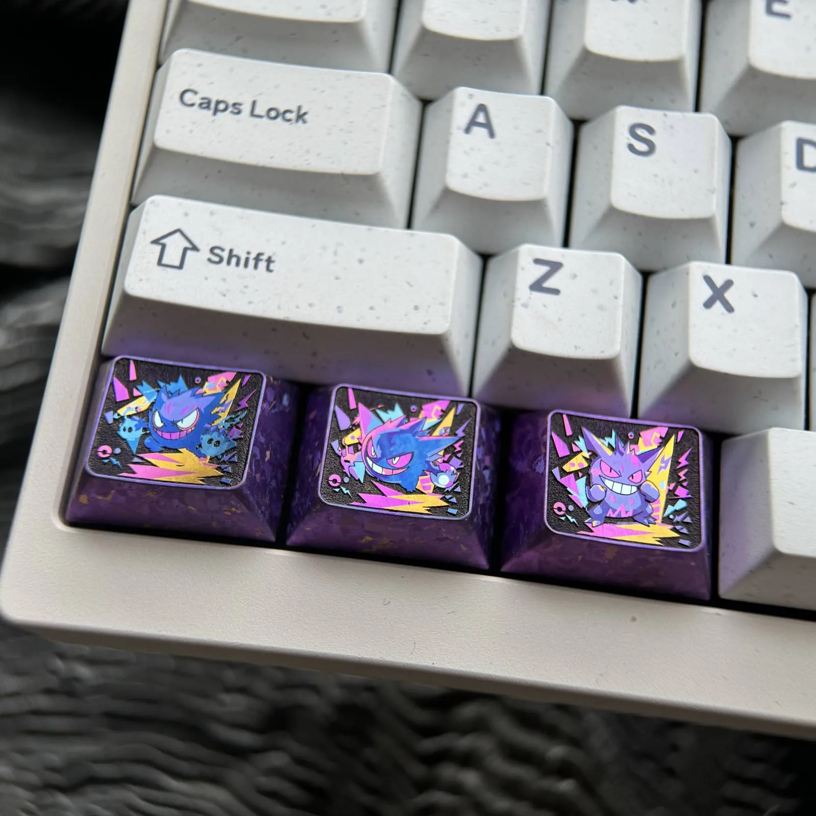 Unleash your inner trainer with the Pokemon: Gengar Series Keycaps! Each keycap which comes in three fascinating themes. That has colorful character icon designs set against a sleek black backdrop. Every keystroke is made more pleasurable by the distinctive texture on the keycap base. Which provides depth and a tactile feel. These keycaps which are made of sturdy titanium alloy. That are guaranteed to be of outstanding quality and longevity, withstanding regular use. Gengar and companions come to life thanks to the 3D designs. Which turn your keyboard into a genuine collectible. These keycaps which are ideal for both gamers and Pokemon lovers. Which will turn your setup into a chic homage to your favorite characters. Improve your typing skills right now!