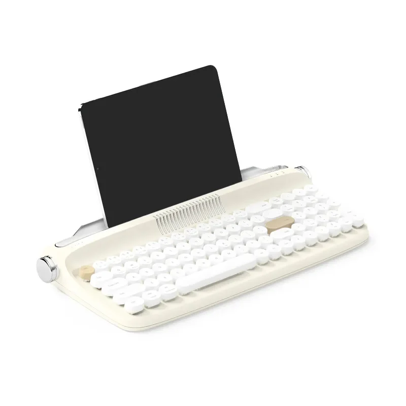 Artistic actto B307 Retro Typewriter Keyboard. Warm sandy beige vintage design with round keycaps and multi-device Bluetooth wireless for creative design. B309 Cream White Keyboard