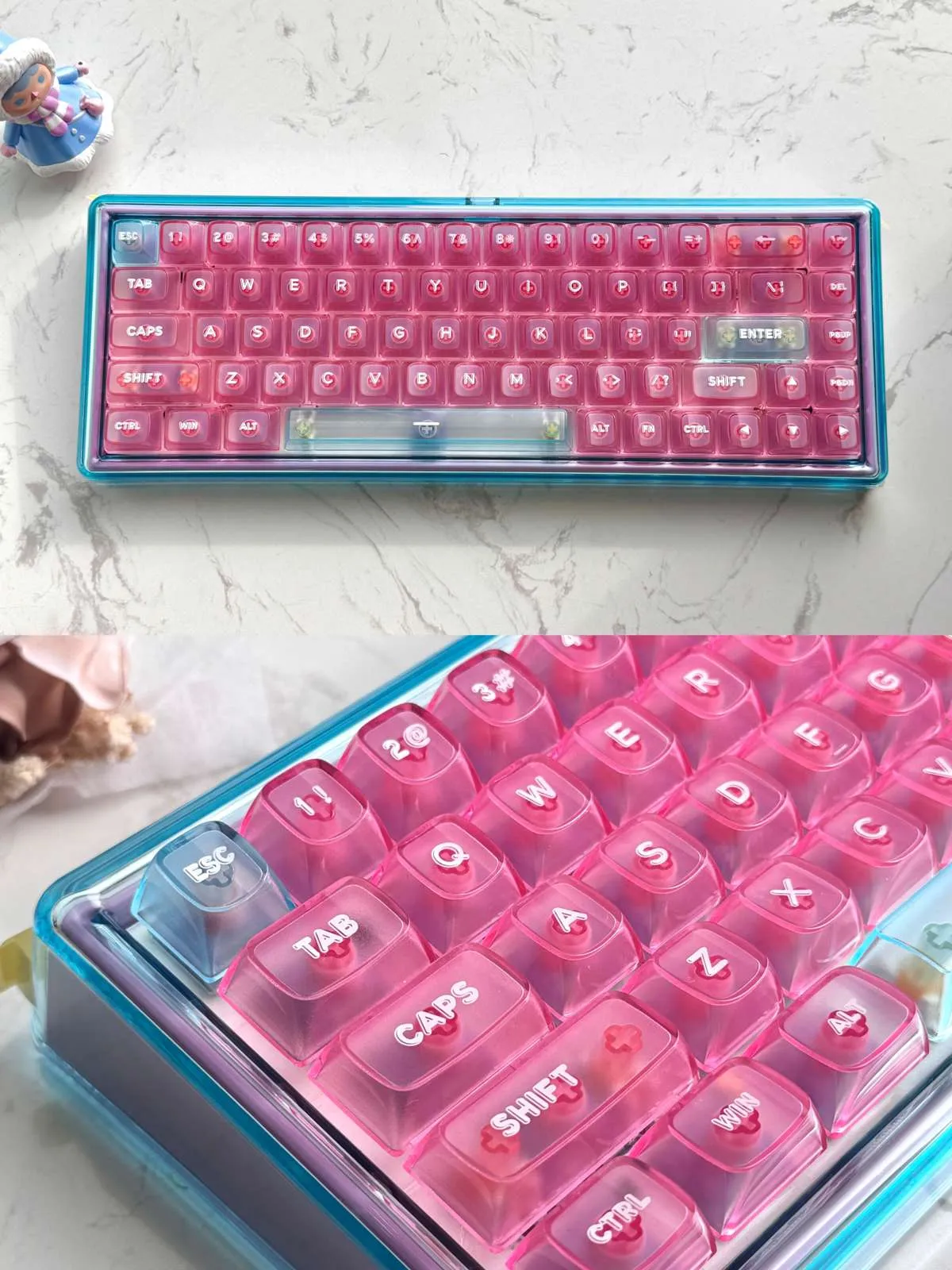 Dive into the enchanting world of the Sea Mist Base68 Tri-Mode Mechanical Keyboard! Where style meets performance setup. Each of the four switch categories—Belle, Stellar, Thunderbolt or Ocean Heart. That offers two eye-catching choices Pink or Blue Keyboard. The pink version has some blue keycaps for a pleasant contrast with a gorgeous pink background. The Blue variant, on the other hand that has a bright blue base with plenty of pink keycaps. Which giving it a distinctive look. Every keycap has white text in a unique font style that improves both reading and aesthetic appeal. This keyboard is made of sturdy PC material. That will improve your workstation while withstanding regular use!
