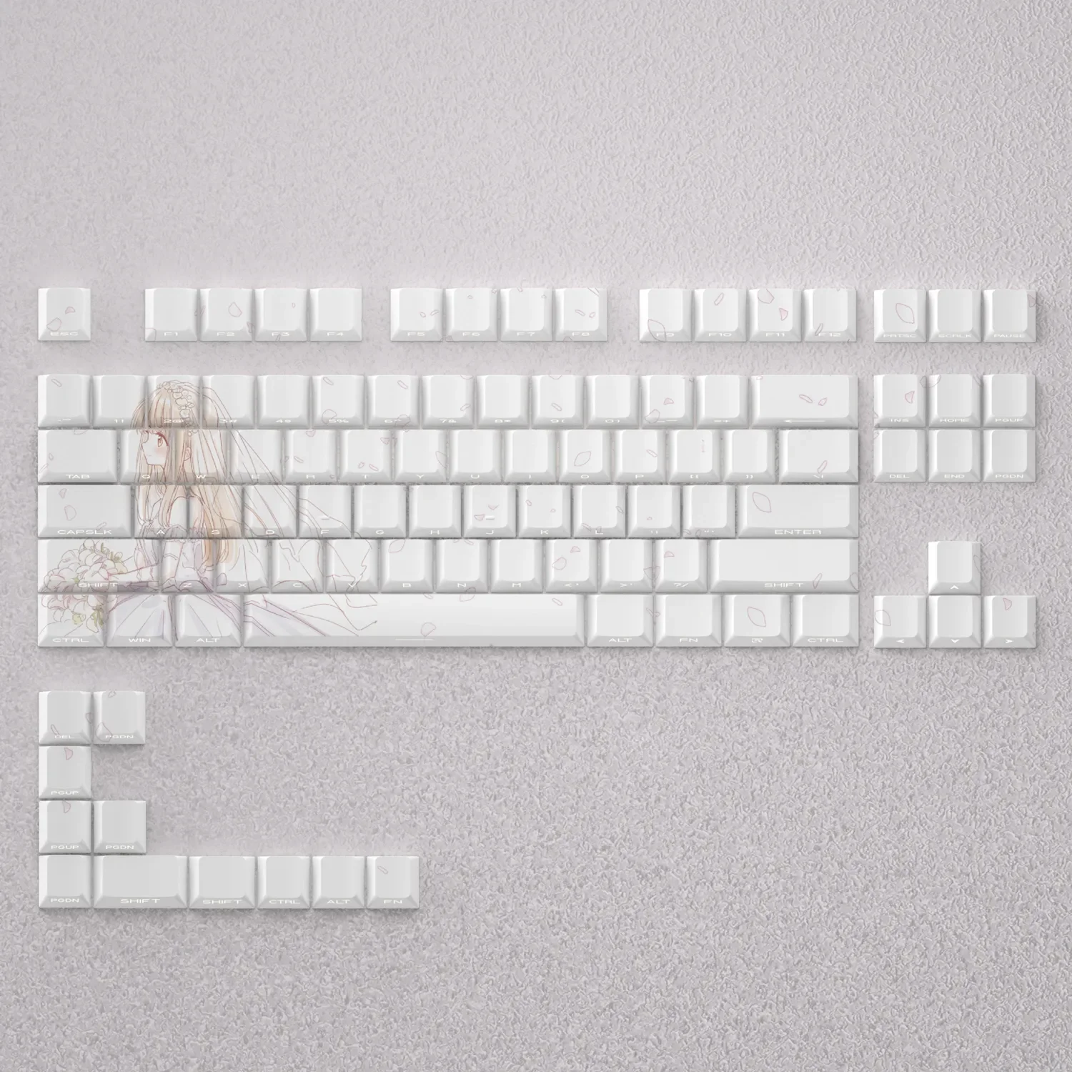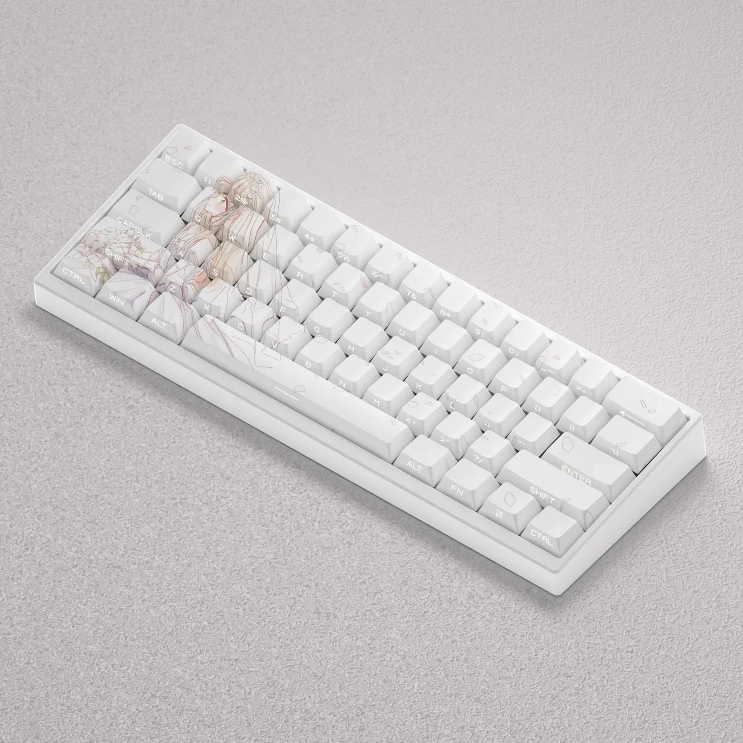 Immerse yourself in the enchanting world of The Angel Next Door Spoils Me Rotten with these exclusive Shiina Mahiru Cherry Keycap Set. Crafted to transform your keyboard into a serene, personalized anime haven, this exquisite set captures Mahirus gentle elegance. Each of these high-quality Anime PBT keycaps features a side-printed translucent design, allowing your keyboards backlight to beautifully illuminate the legends for a truly mesmerizing effect. Designed in the comfortable Cherry profile keycap set, these keycaps provide a premium typing experience perfect for extended use. Ideal for enthusiasts seeking custom mechanical keycaps or a unique keycaps set, this collection brings personalized delight to your desktop setup. Elevate your aesthetic with this unique blend of artistic flair and functional design, compatible with a wide range of keyboard layouts.