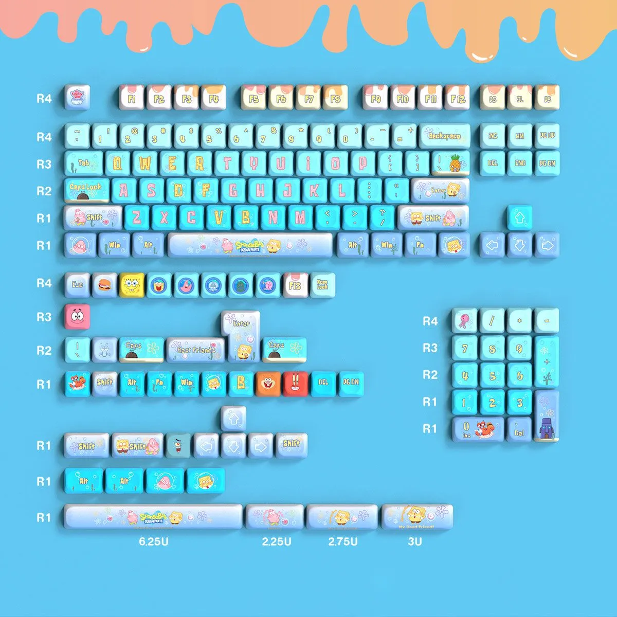 Grab the SpongeBob SquarePants: Characters 2.0 MOA Keycap Set to upgrade your keyboard! This gorgeous collection blends ocean blue, Tiffany blue and other tones in a gorgeous blue series gradient design. To ensure visibility and flair that the pink and yellow text is displayed in a distinctive font style that is larger than typical. Your favorite characters come to life with the famous character graphics that decorate each keycap. Notably, the keycap set adds a whimsical touch with its adorable symbols of SpongeBob and Patrick’s homes. These keycaps are long lasting and offer a comfortable typing experience because they crafted by sturdy PBT material. Show off your passion for character by changing up your setup!